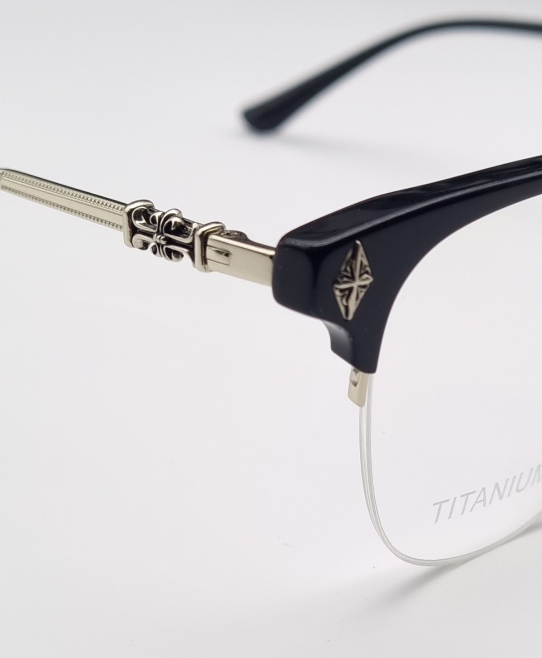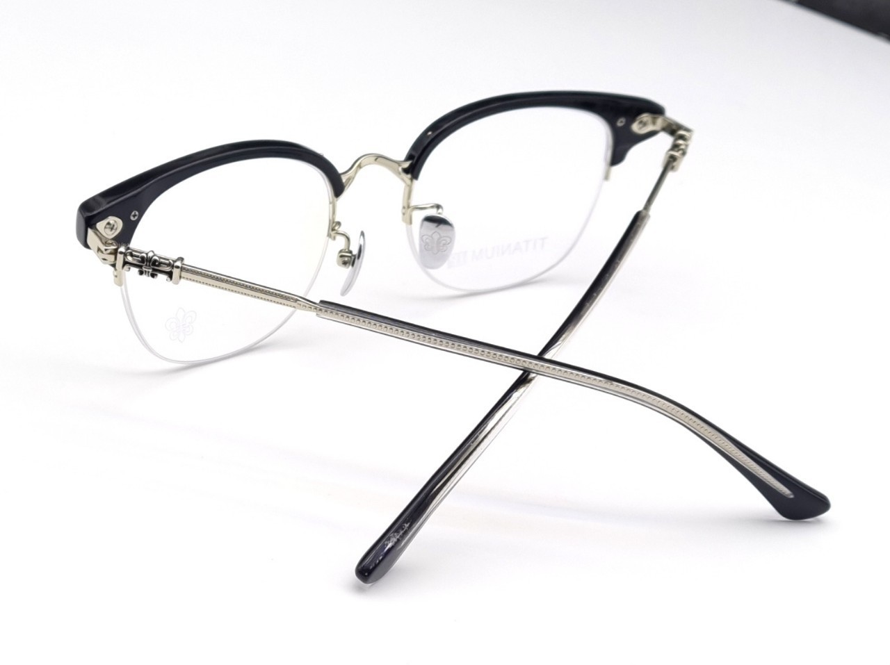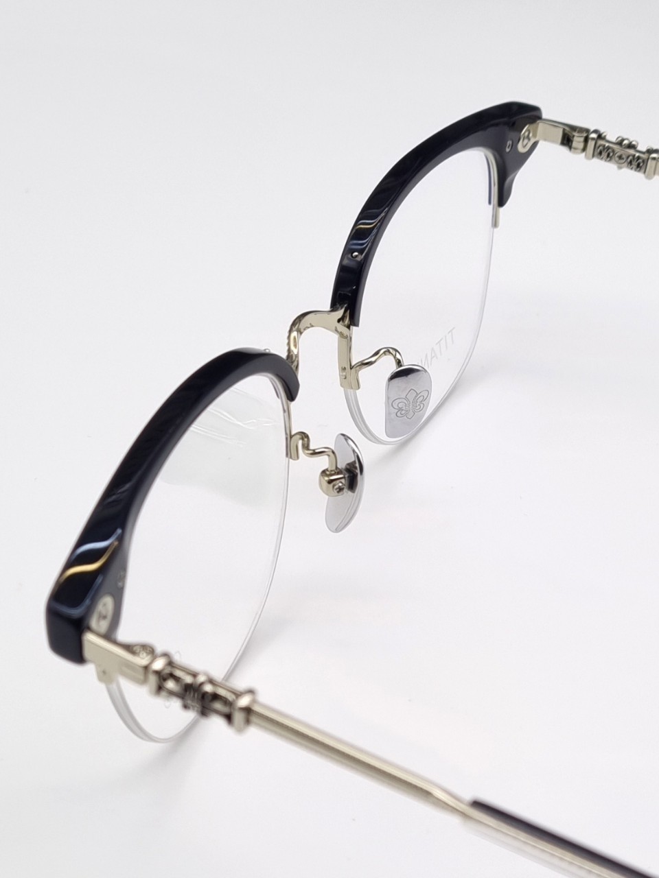 4포인트 브릿지가 돋보이는 상부 아세테이트의 뿔테 느낌과 렌즈하단부분 반무테로 제작되서 시원한느낌과
