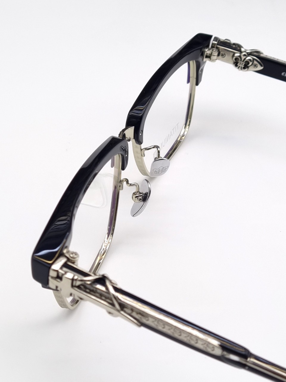 상단 아세테이트 블랙과 타타늄메탈이 결합된 콤비네이션의 최고급 제품
