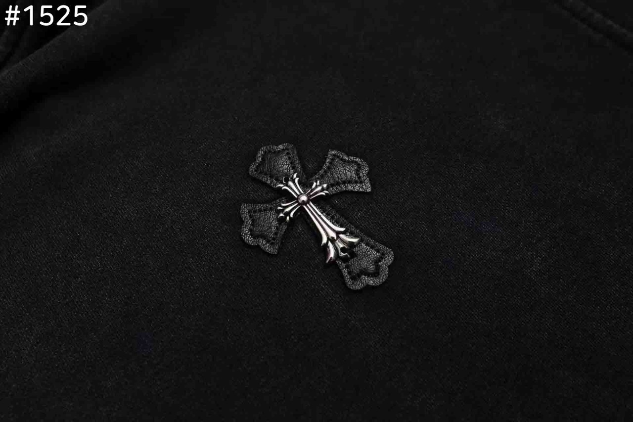 크롬하츠 비즈 포인트 레더 크로스 후드티셔츠