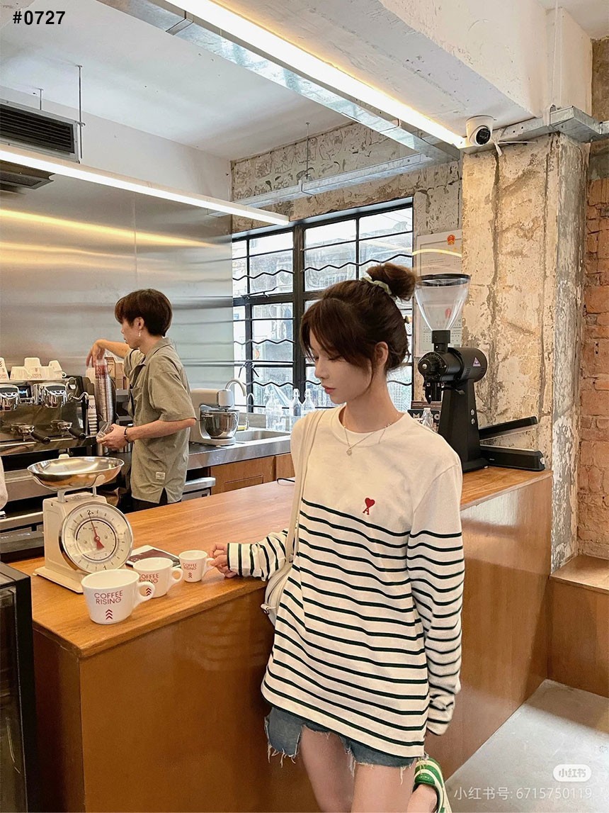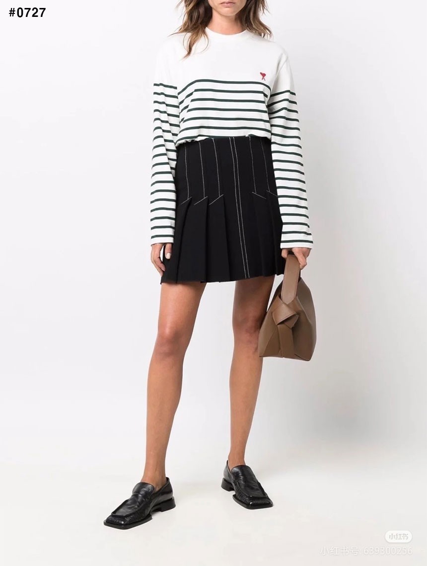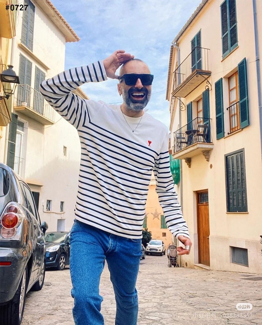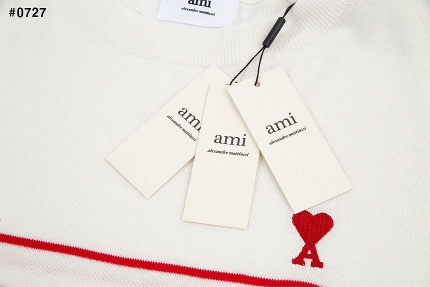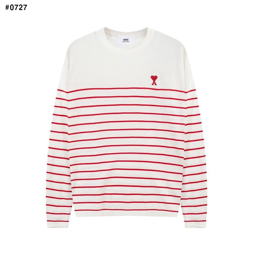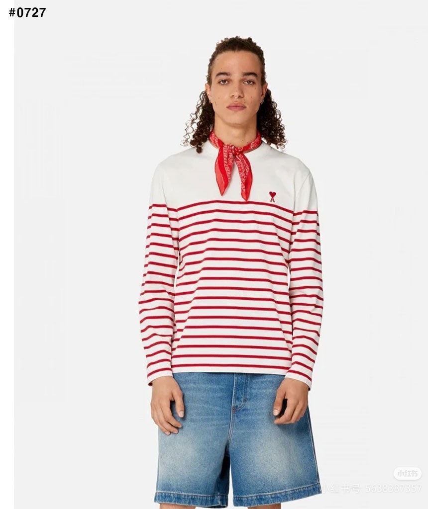 아미 스몰 로고 스트라이프 니트 긴팔티 (레드, 화이트)