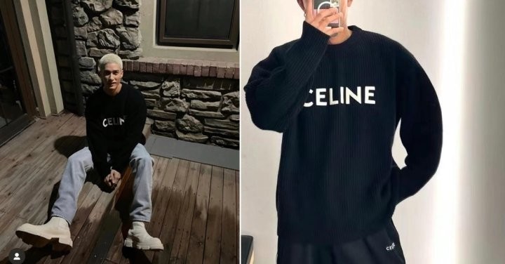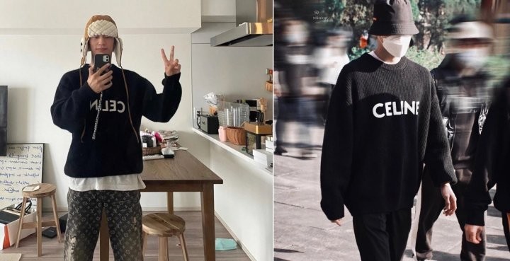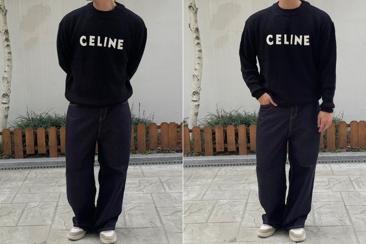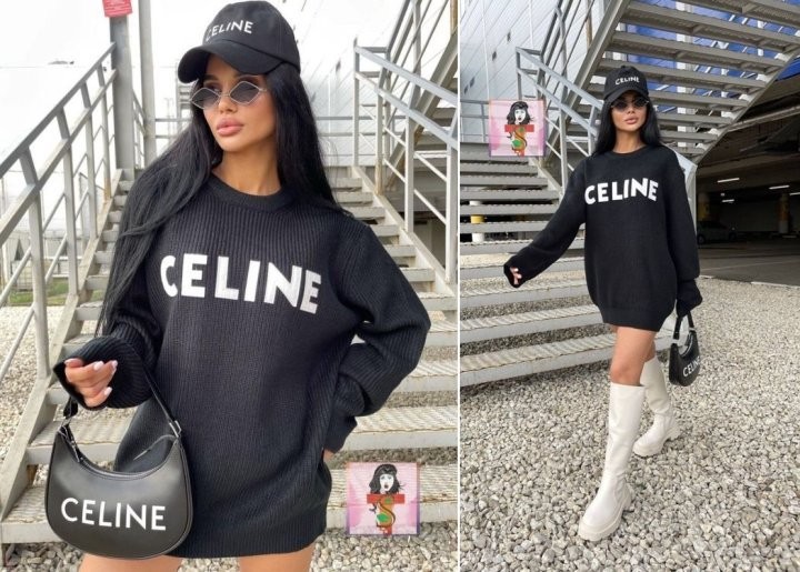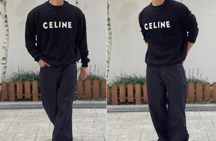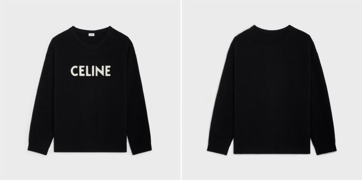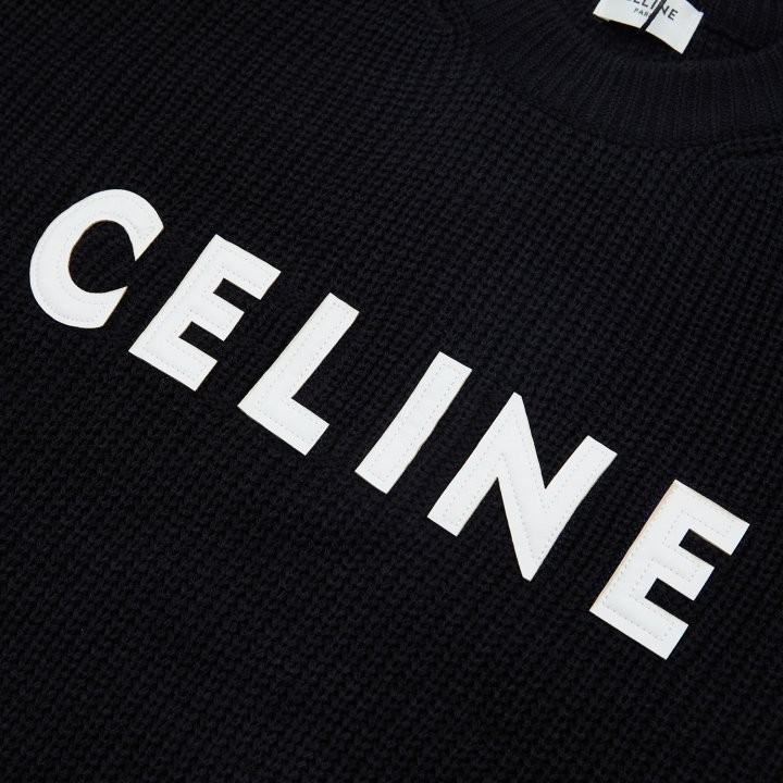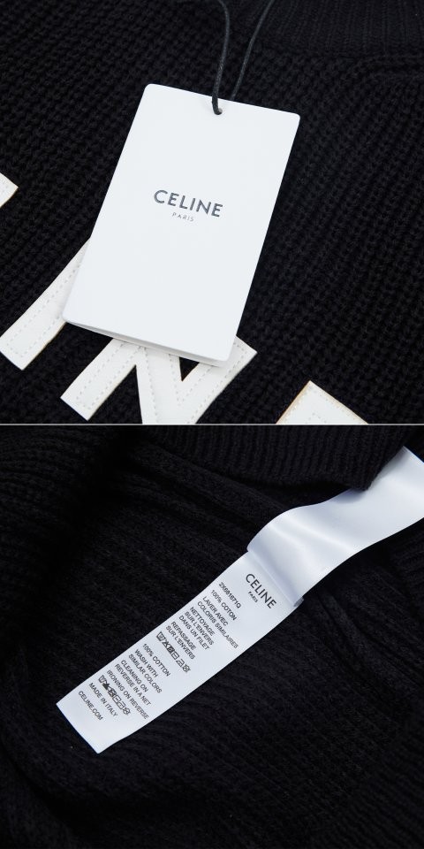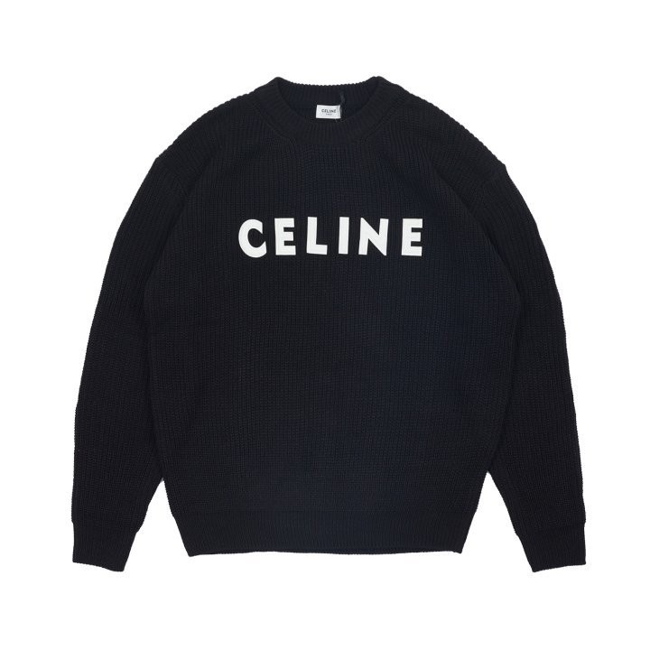 블랙바탕에 흰자수 셀린느 로고포인트가 있는 니트입니다!