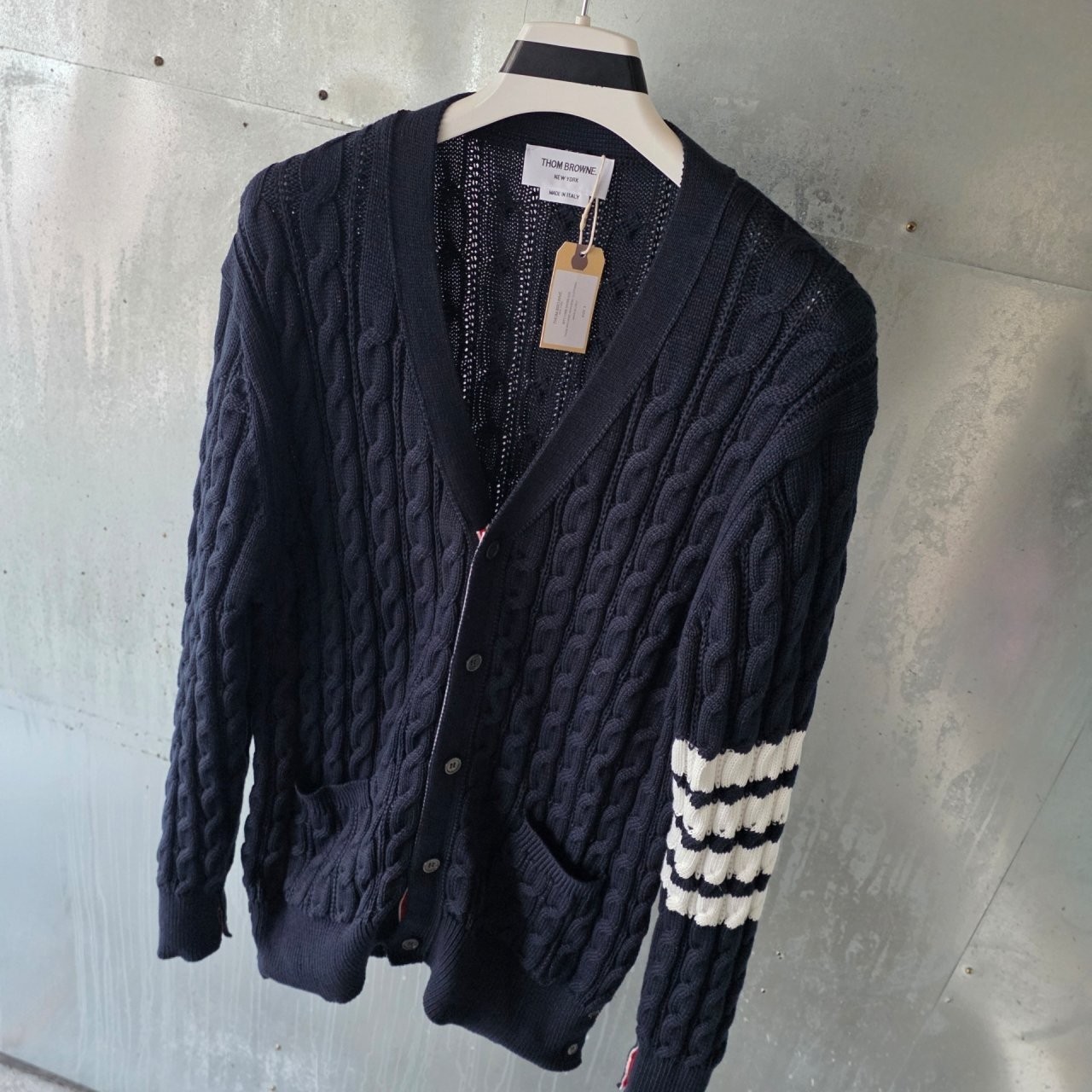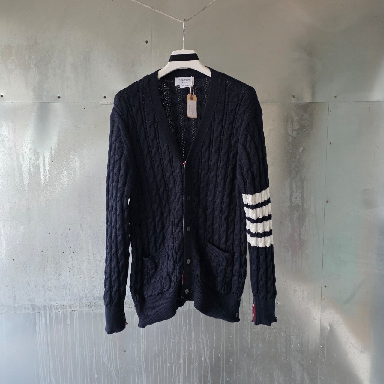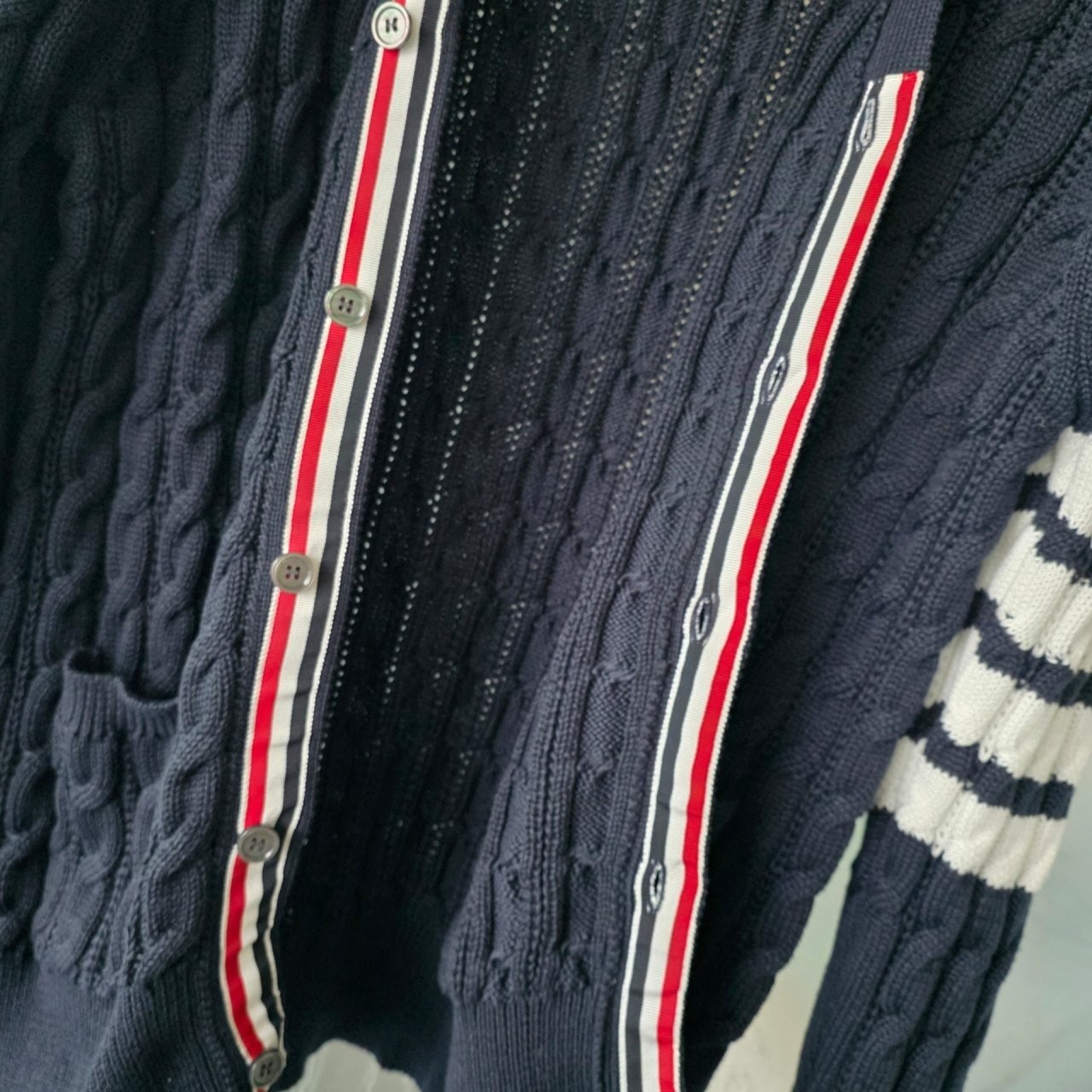 본 제품은 톰브라운 사선완장 아란케이블 가디건 으로써 정품 동일원단을 사용해 톰브라운전문제작 공장에 오더를넣어 제작한 완벽한 상품입니다. 고급스러운 무드와 핏으로 편안하게 입으실 수 있으며 국내에서 흉내조차 내기 힘든 디테일이며 퀄리티 자부합니다.