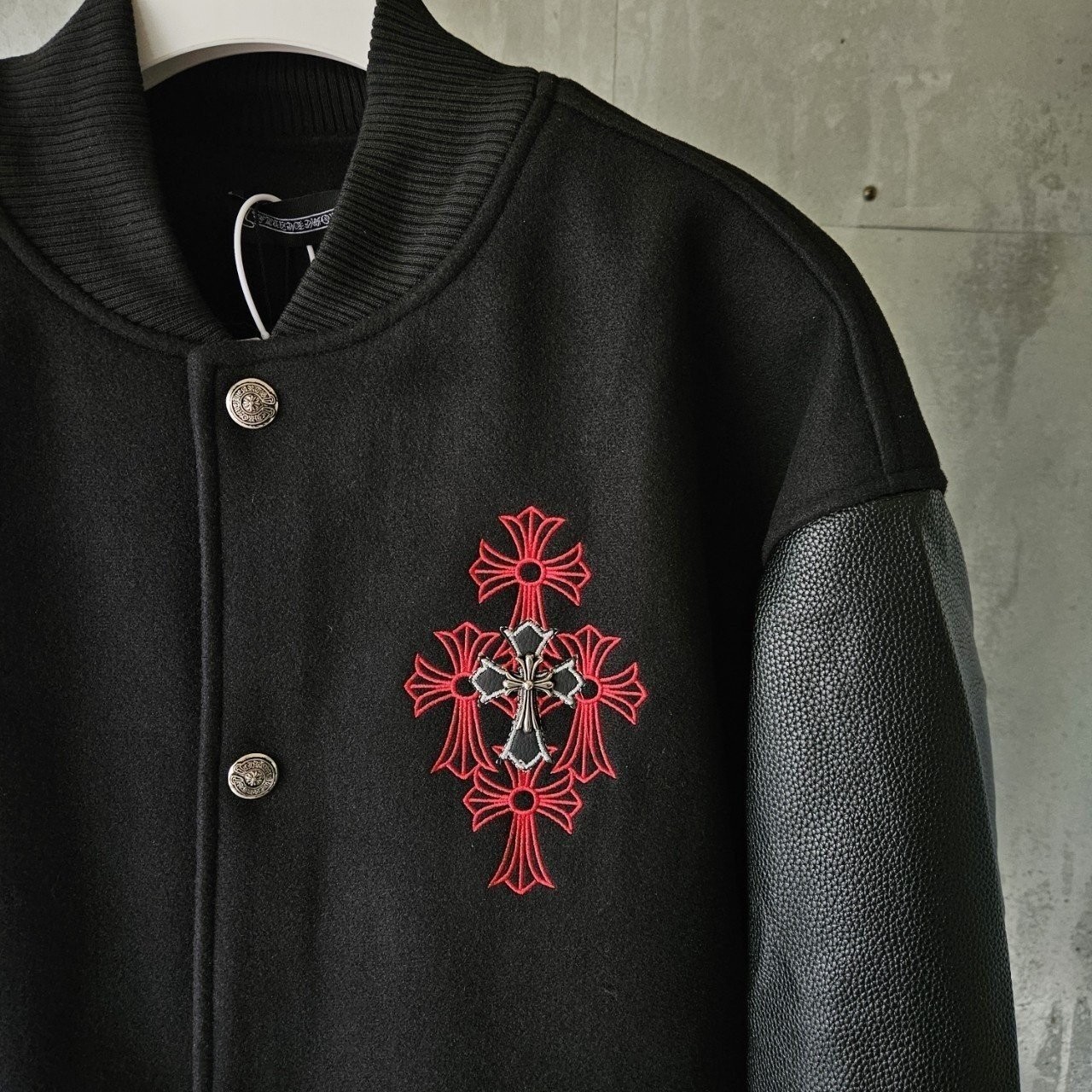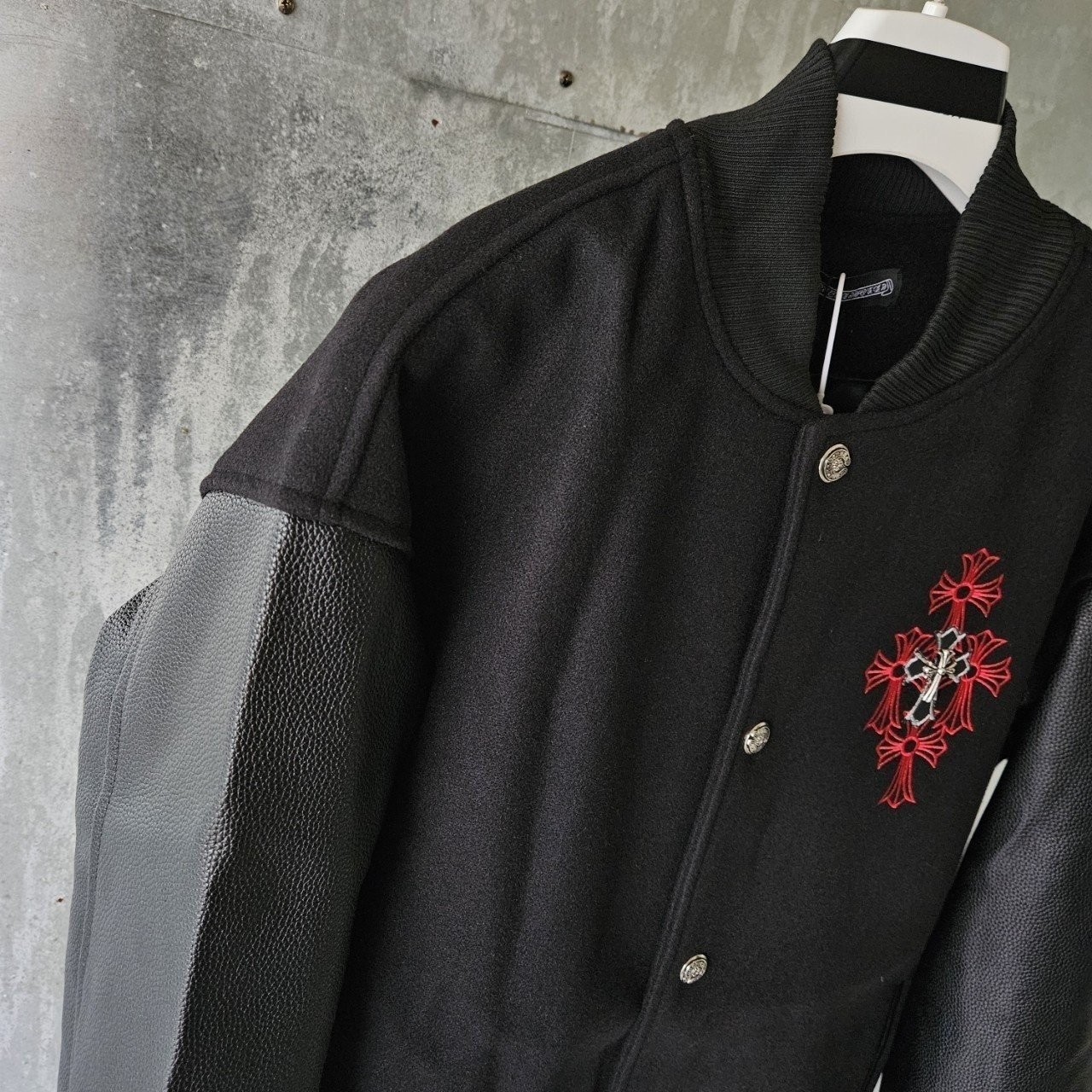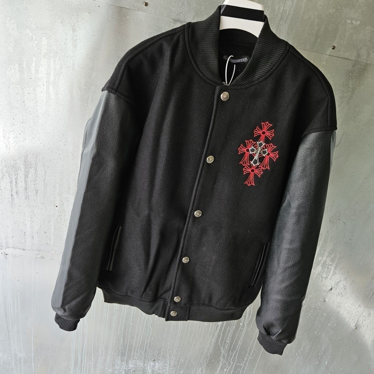 본 제품은 크롬하츠 레더 바시티 자켓 으로써 정품 동일원단을 사용해 크롬전문제작 공장에 오더를넣어 제작한 완벽한 상품입니다. 고급스러운 무드와 핏으로 편안하게 입으실 수 있으며 국내에서 흉내조차 내기 힘든 디테일이며 퀄리티 자부합니다.