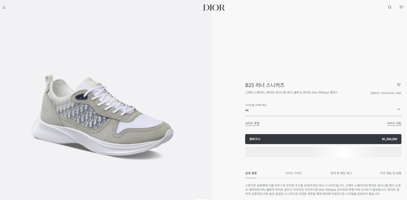 컬러 : 그레이사이즈- 남성40 (250 ~ 255 mm)41 (260 ~ 265 mm)42 (265 ~ 270 mm)43 (270 ~ 275 mm)44 (275 ~ 280 mm)구성 : 본품, 브랜*드 박스
