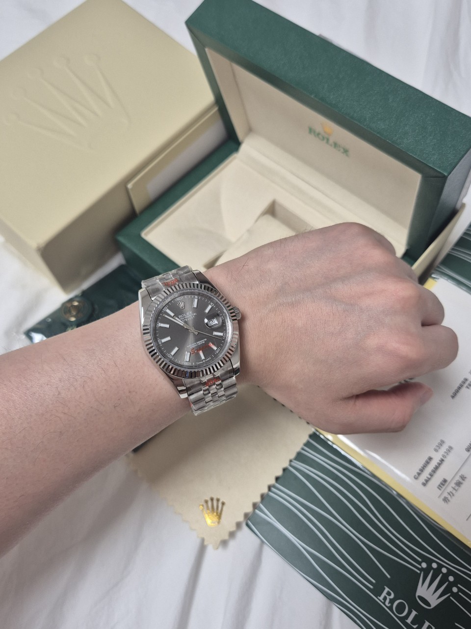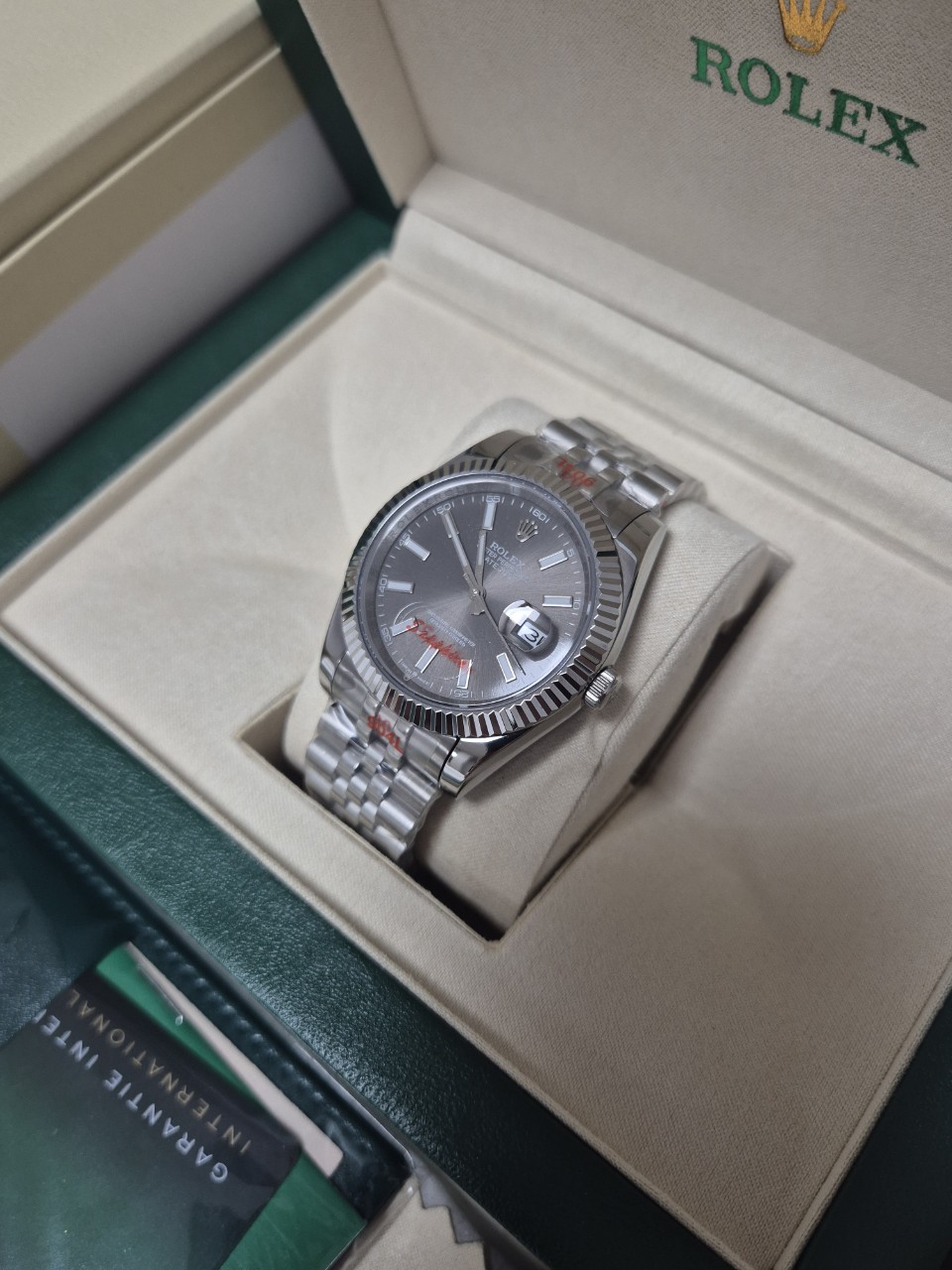 다이얼 초침 까지 완벽하게 구현된 상품입니다국내 유통 상품중 최고급 확실합니다저급과는 무게감부터 달라요^^구성품까지 완벽해 선물용으로도 강추드립니다만족도 보장100% 보정없는실사국내 유통되는 저급상품과 비교불가◇ 구 성 : 풀박스◇ 컬 러 : 그레이◇ 소 재 : 고강도스틸◇ 사이즈 : 41mm◇ 사 양 : 오토메틱