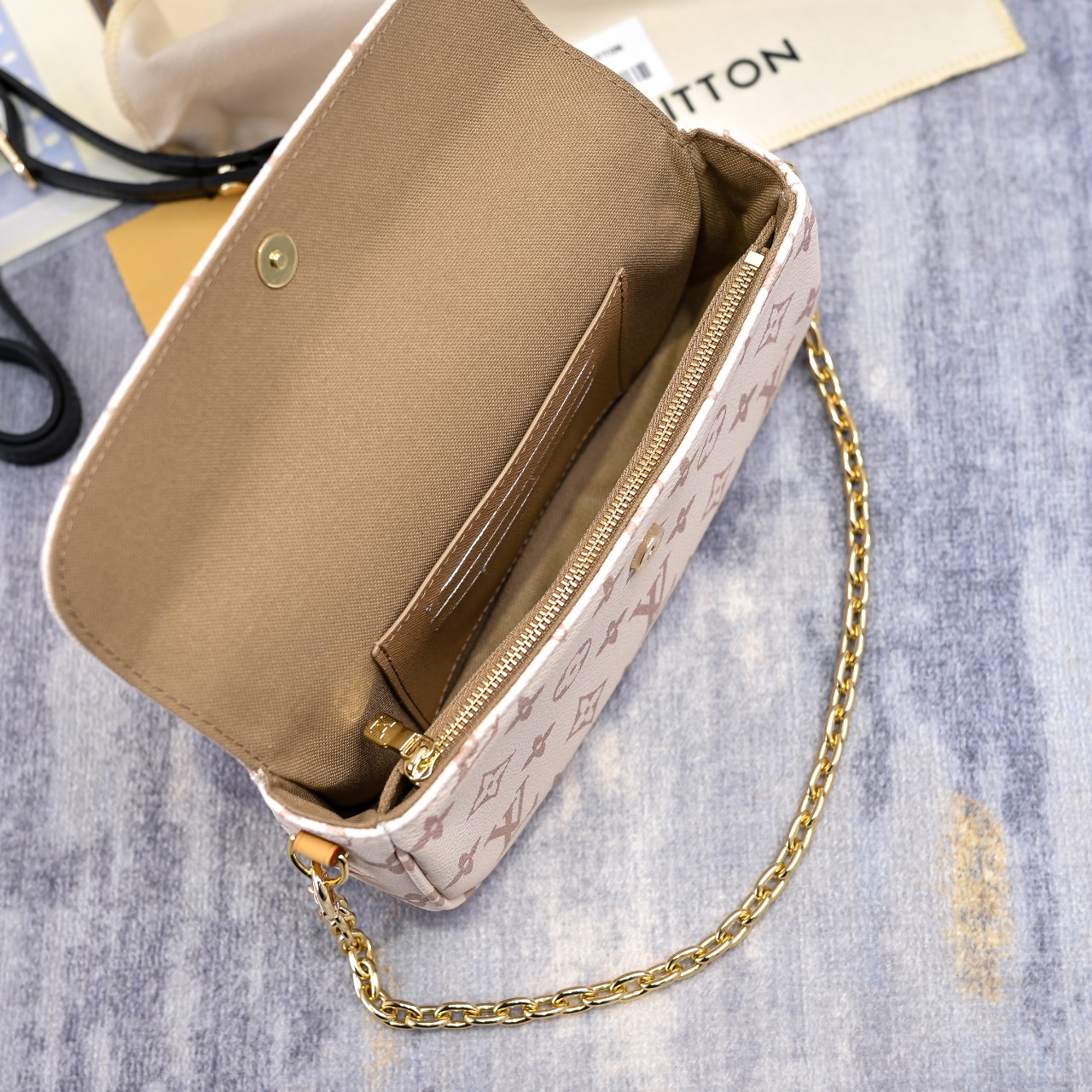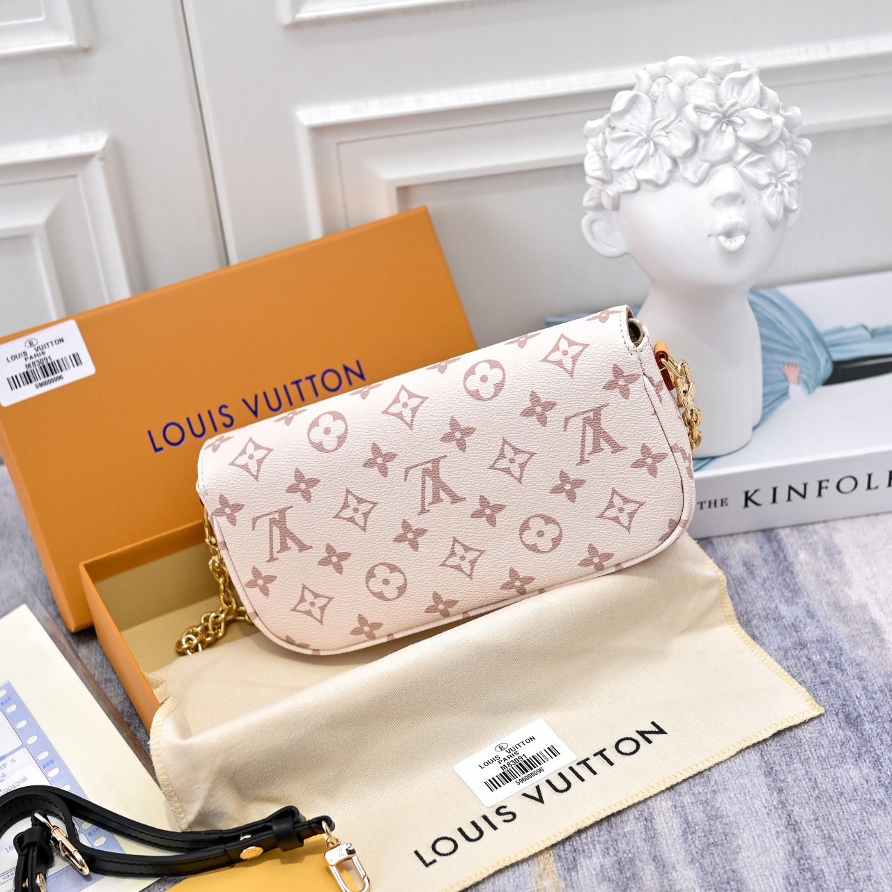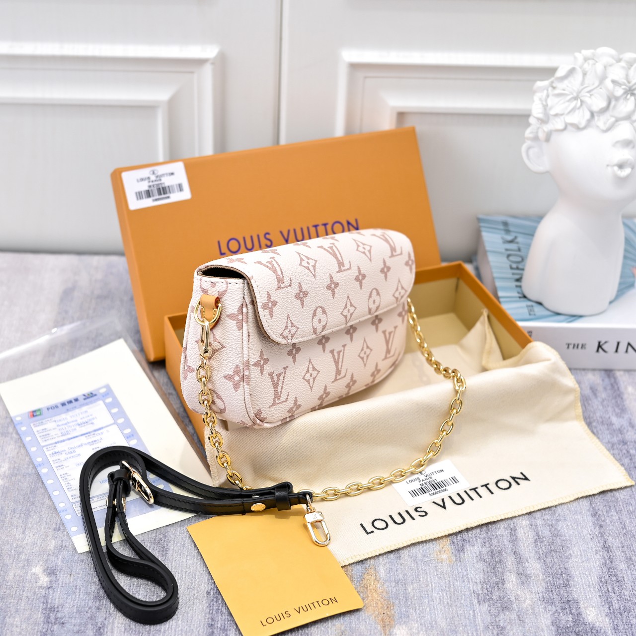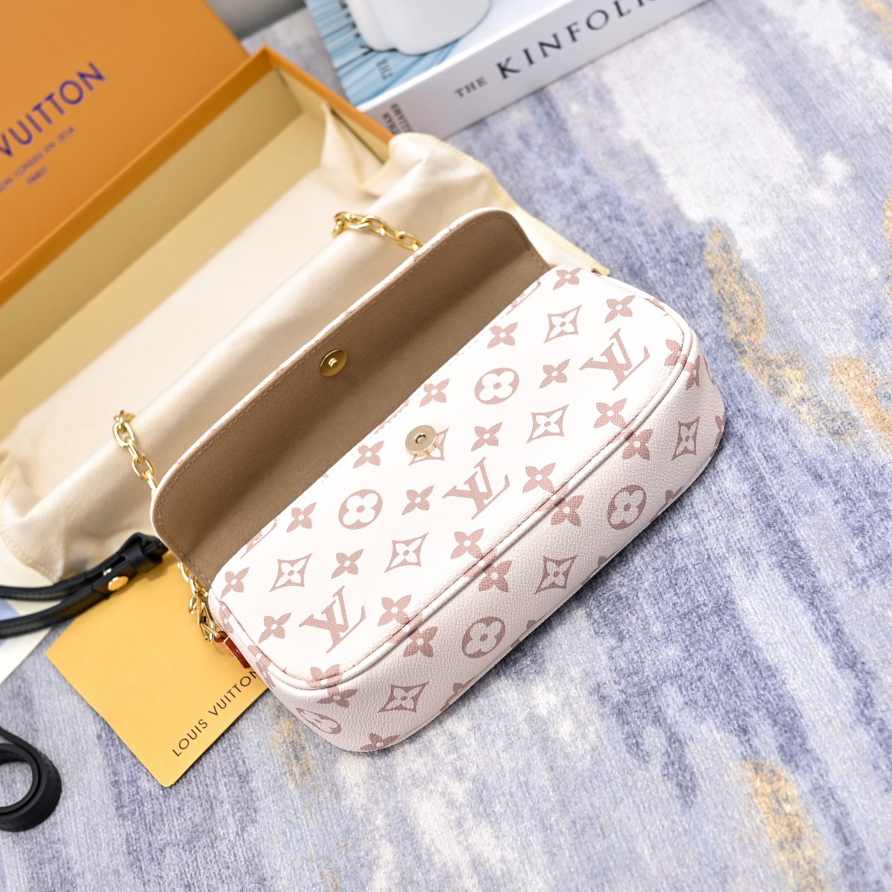 루이비통의 2024 크루즈 컬렉션에서 선보인 모노그램 듄(Monogram Dune) 캔버스 소재의 아이비 월릿 온 체인. 자석형 잠금장치가 달린 플랩을 열면 일상 필수품을 위한 메인 수납공간이 나타나는 트렌디한 미니 백. 탈착형 체인과 조절 및 탈착 가능한 가죽 스트랩을 활용해 다양하게 연출 가능한 아이템.