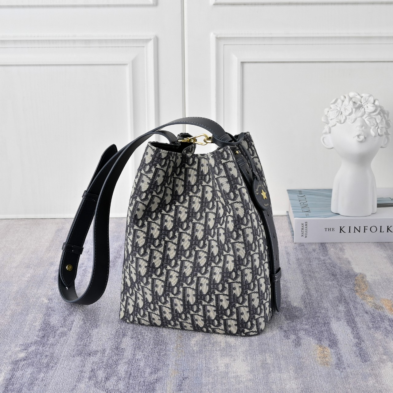 2026 크루즈 시즌에 컨버터블 스타일의 컴팩트하고 실용적인 디자인으로 새롭게 선보이는 Diorstar 스몰 버킷백입니다. 블루 Dior Oblique 자카드 소재와 톤온톤 스무스 송아지 가죽 디테일로 제작되었으며, 더블 클로저로 유연한 구조의 실루엣을 조절할 수 있습니다. 넉넉한 수납공간에 모든 데일리 소지품을 손쉽게 보관할 수 있으며, Christian Dior Paris 시그니처와 디올 하우스의 행운의 별로 장식한 가죽 라벨이 돋보입니다. 조절 가능한 가죽 스트랩이 있어 핸드백, 숄더백, 크로스백으로 편안하게 활용하기 좋습니다.