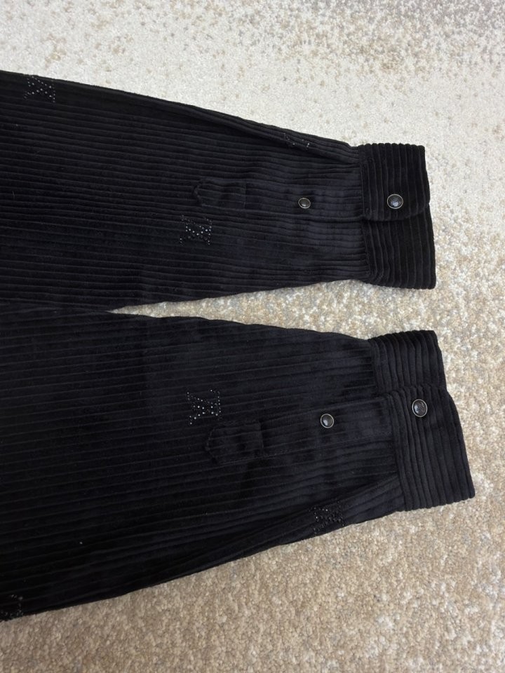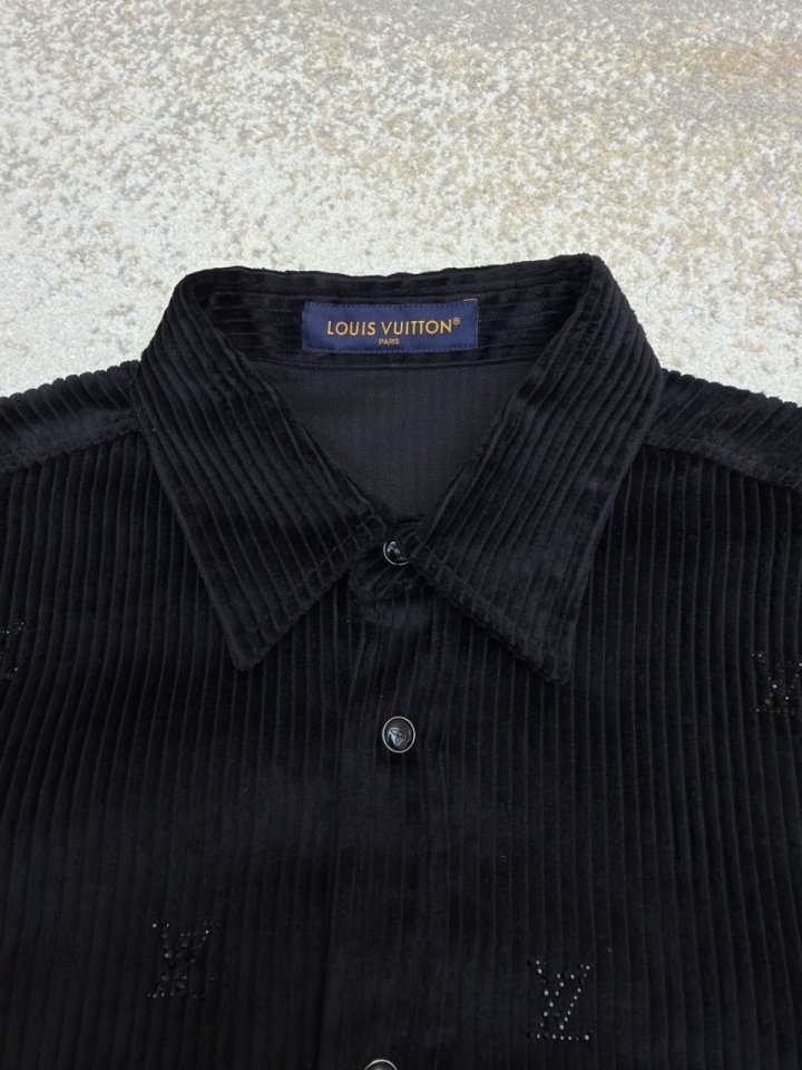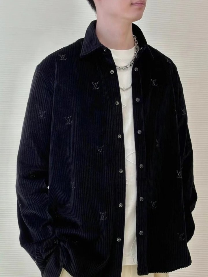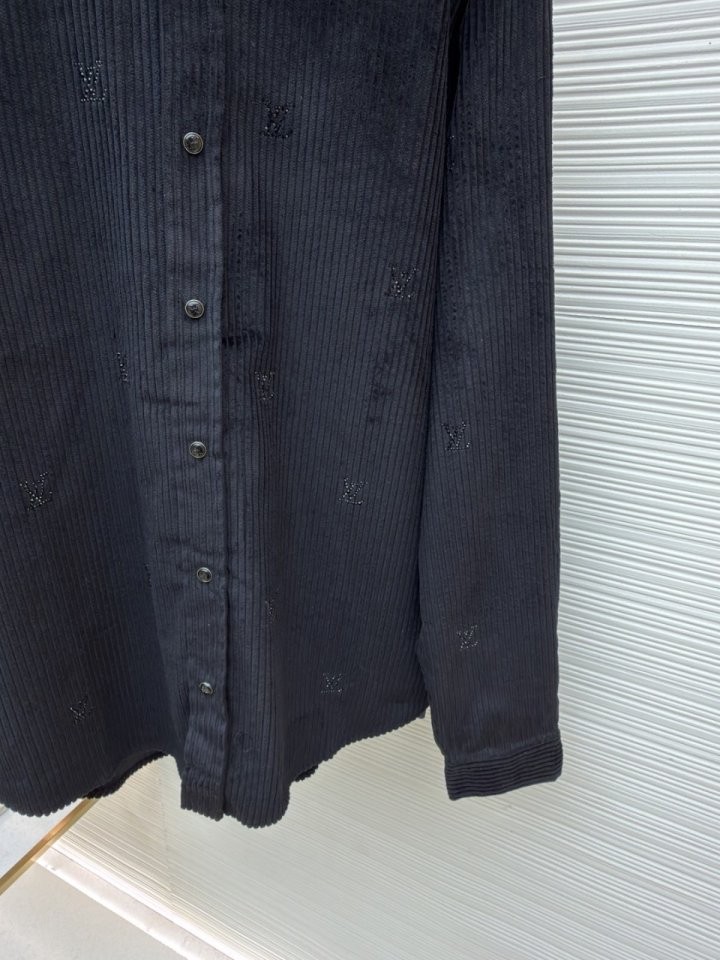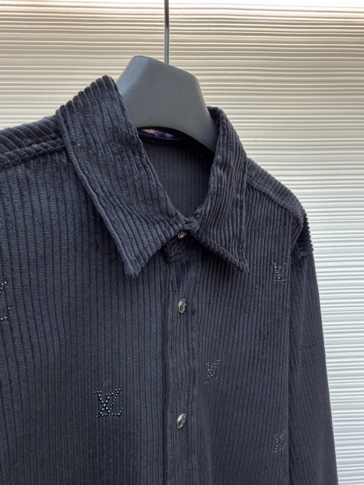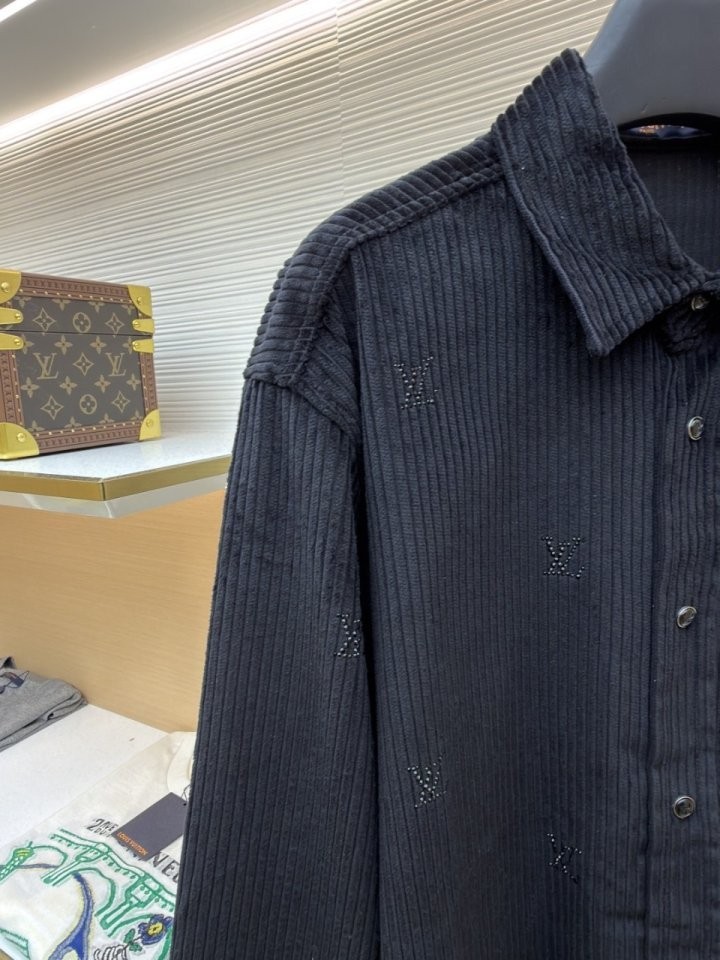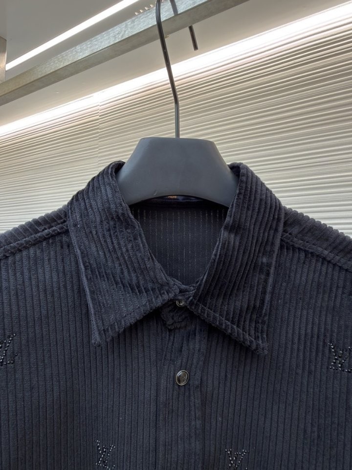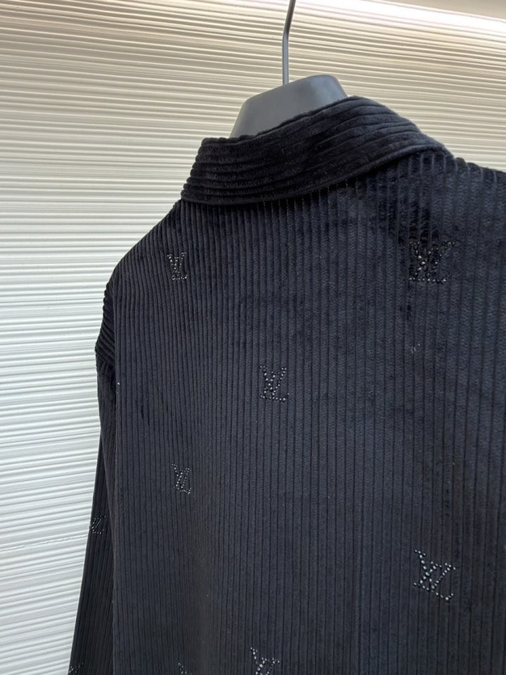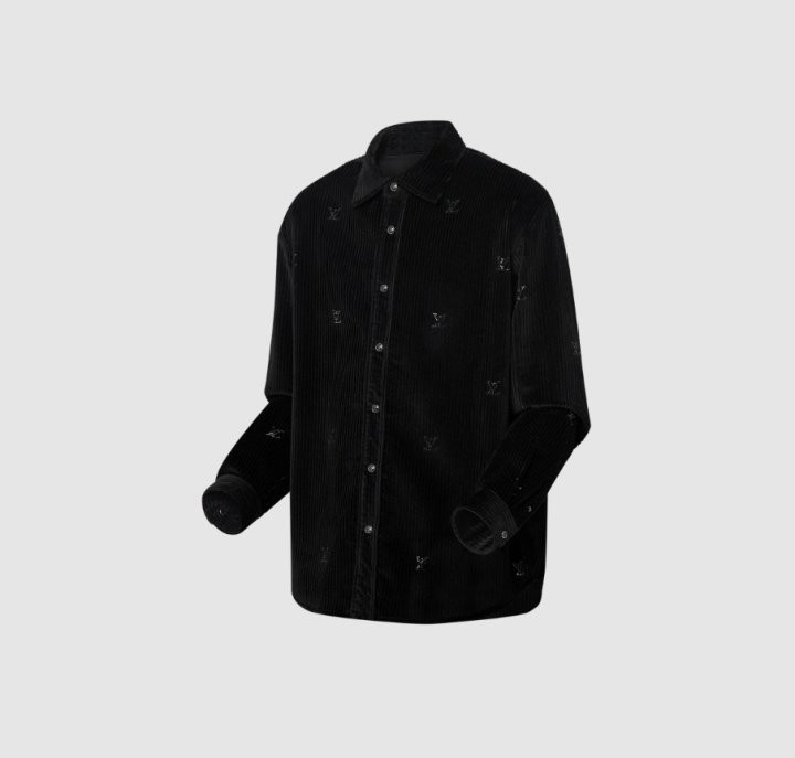 블랙 색상의 디아만테 크리스탈로 전체적인 LV 모티프를 구현한 반짝이는 디자인의 셔츠. 블랙 색상의 코듀로이 소재. 데일리 룩부터 이브닝 룩까지 다양하게 연출할 수 있는 아이템으로써 모노그램 플라워를 새긴 세련된 스냅 버튼과 셔츠 또는 아우터로 활용할 수 있는 캐주얼하면서도 감각적인 스타일 입니다~사이즈 : S(100~105)색상 - 블랙