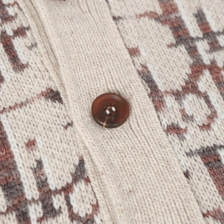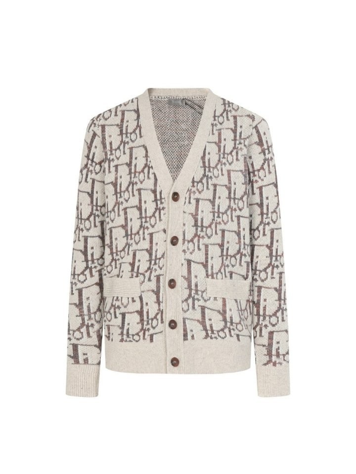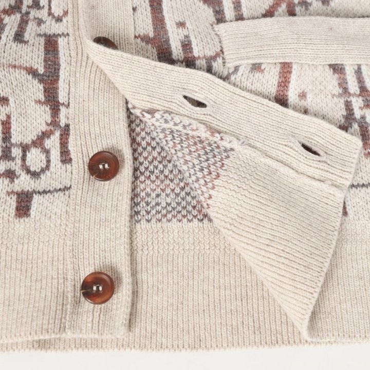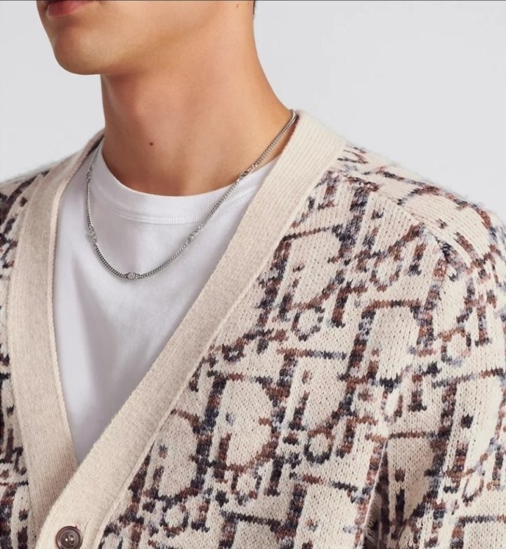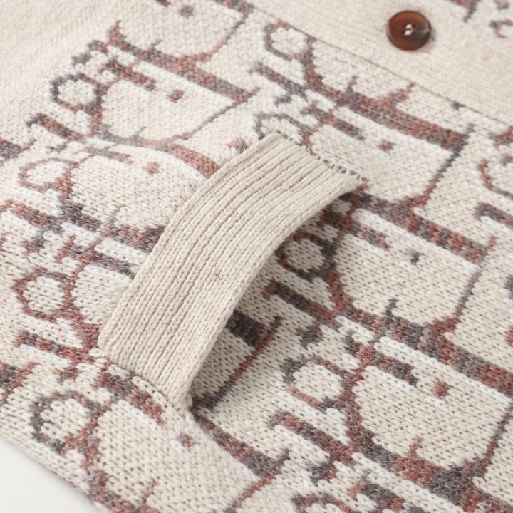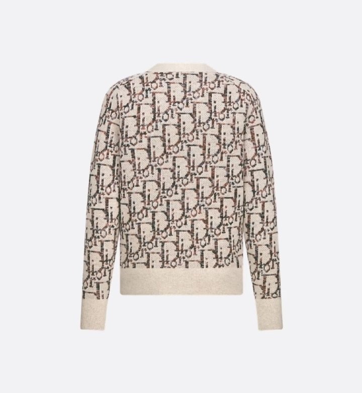 디올 하우스의 홀마크 Dior Oblique 모티브를 새롭게 해석한 니트 가디건입니다. 베이지와 브라운 컬러가 어우러진 버진 울 자카드 소재의 캐주얼한 실루엣으로 버튼 클로저와 리브드 디테일이 디자인을 완성합니다. 다양한 룩에 매치해 그래픽적인 무드를 더할 수 있습니다.