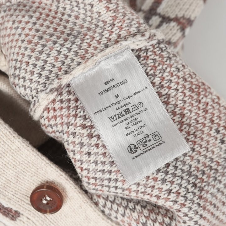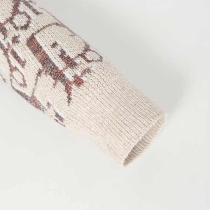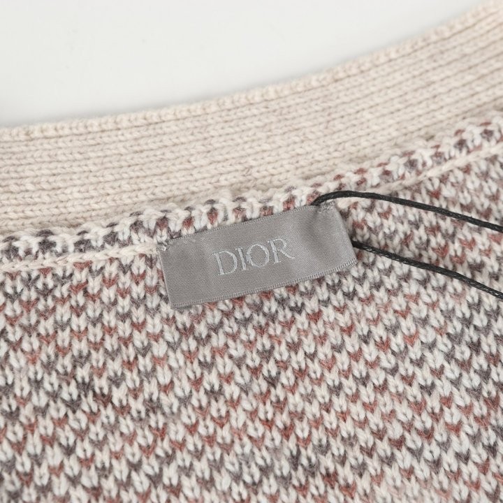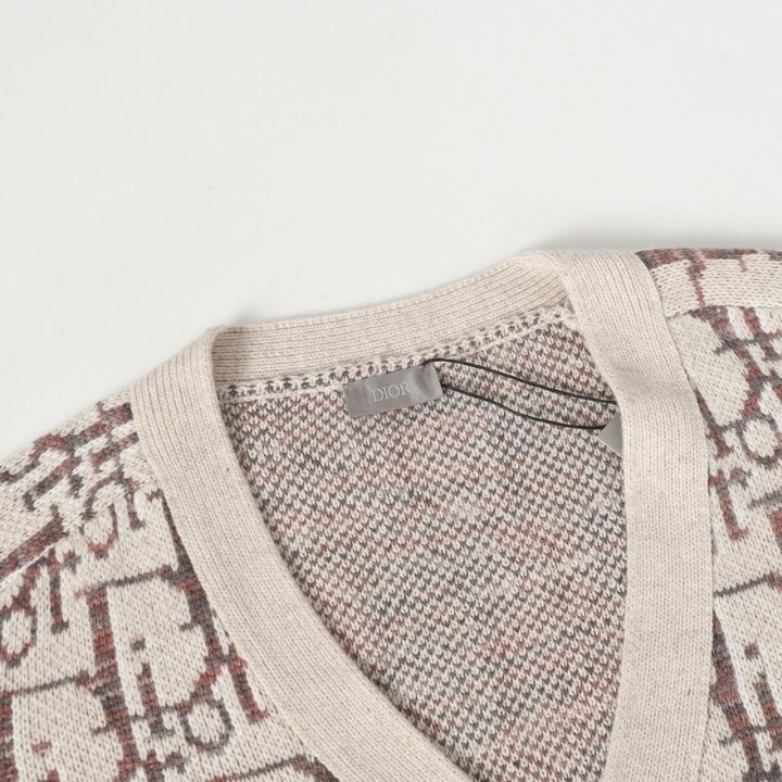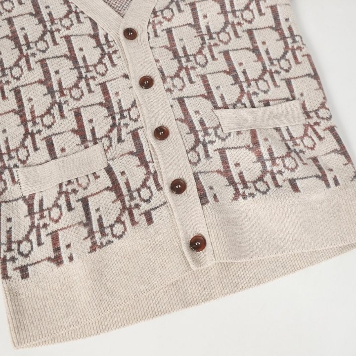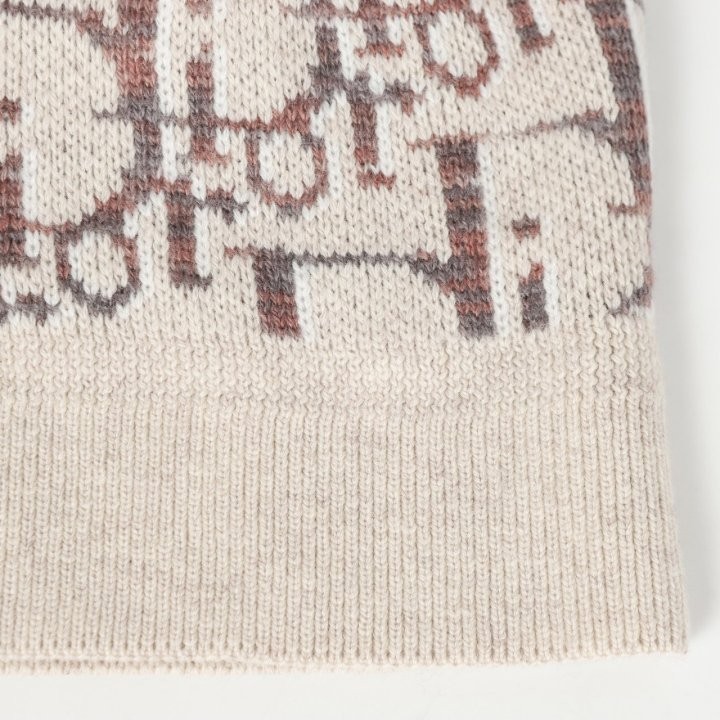 디올 하우스의 홀마크 Dior Oblique 모티브를 새롭게 해석한 니트 가디건입니다. 베이지와 브라운 컬러가 어우러진 버진 울 자카드 소재의 캐주얼한 실루엣으로 버튼 클로저와 리브드 디테일이 디자인을 완성합니다. 다양한 룩에 매치해 그래픽적인 무드를 더할 수 있습니다.