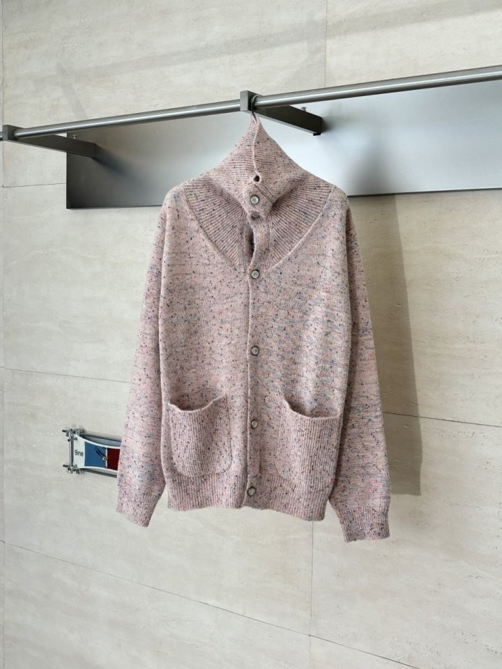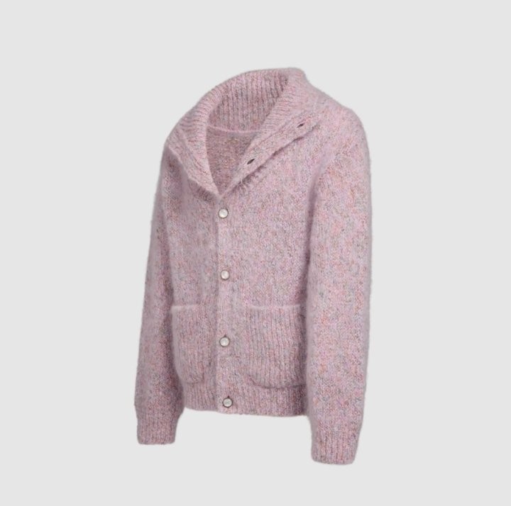 꾸미지 않은 듯 자연스러운 우아함을 자아낸내는 2026 봄-여름 패션쇼의 가디건. 가벼운 모헤어 가디건 소재. 자연스러운 인도 감성에서 영감을 받아 더스티 핑크 색상의 원사로 짠 청키한 니트에 반점 느낌의 트위드 효과를 더한 디자인. 이번 시즌의 은은하고 절제된 색조와 조화를 이루며 티셔츠 위에 걸치거나 블루종 안에 입을 수 있는 활용도 높은 레이어링 아이템 입니다.