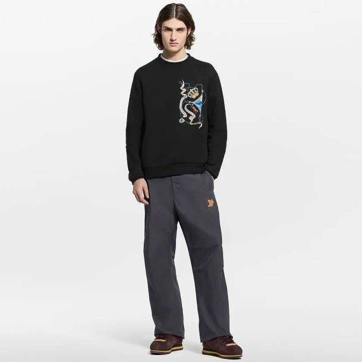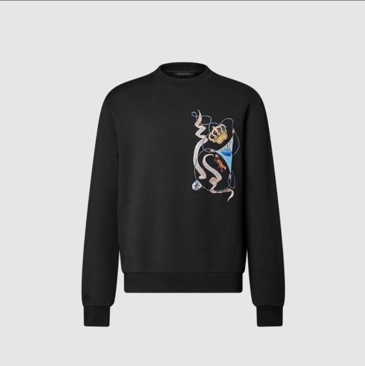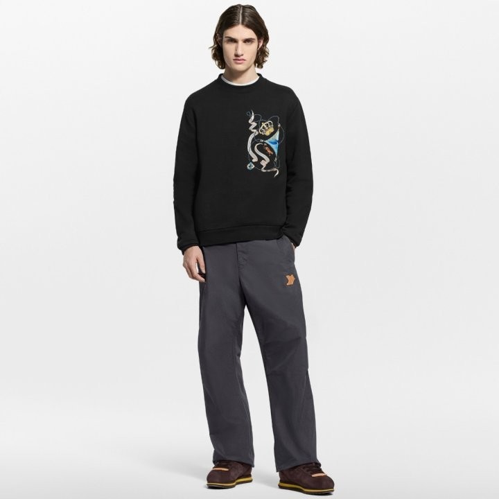 클래식한 블랙 긴팔 스웨트셔츠는 이번 컬렉션의 LV 엠블럼 모티프로 한층 더 고급스러워졌습니다. 하우스의 시그니처가 담긴 생동감 넘치는 색상과 고귀한 상징들이 가슴 부분에 윤기 있는 실로 정교하게 자수되어 있습니다. 클래식한 실루엣에 세련된 감각을 더한 이 스웨트셔츠는 캐주얼한 룩에 축제 분위기와 고급스러움을 선사합니다.