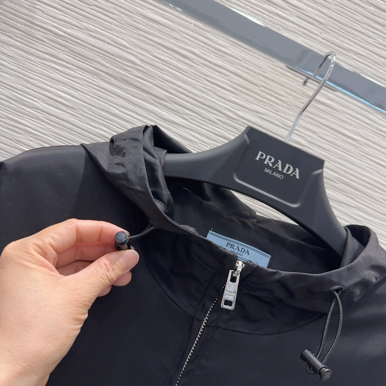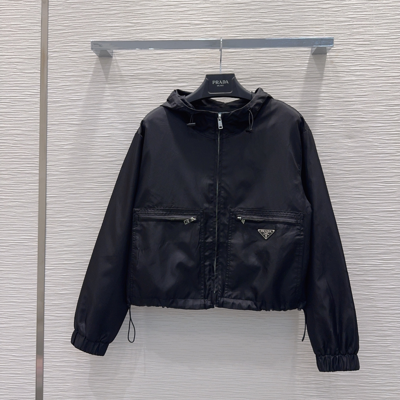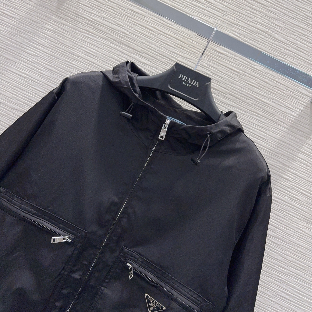 프라다 포켓로고 후드 자켓 바람막이 블랙