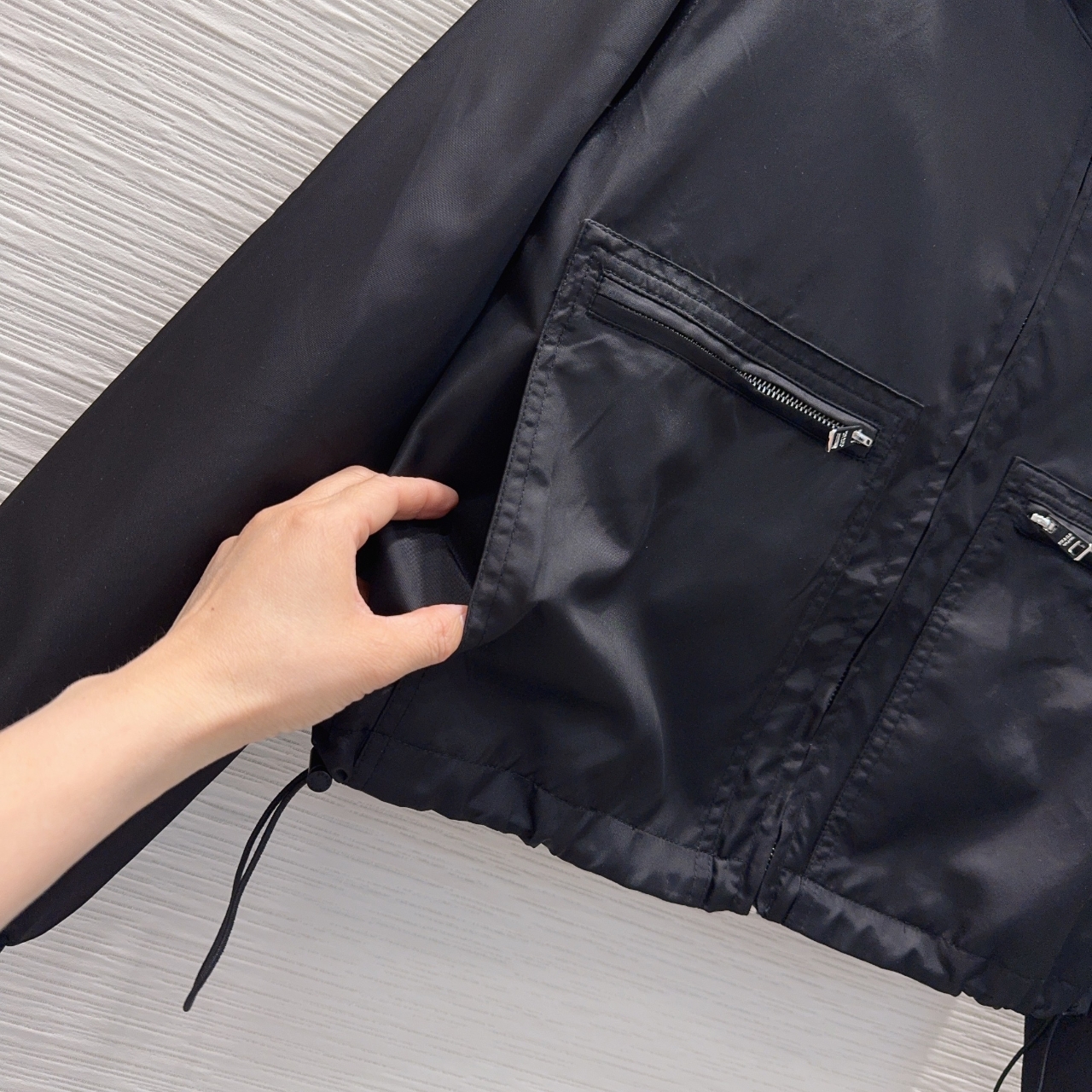 프라다 삼각로고 나일론 바람막이 자켓 블랙