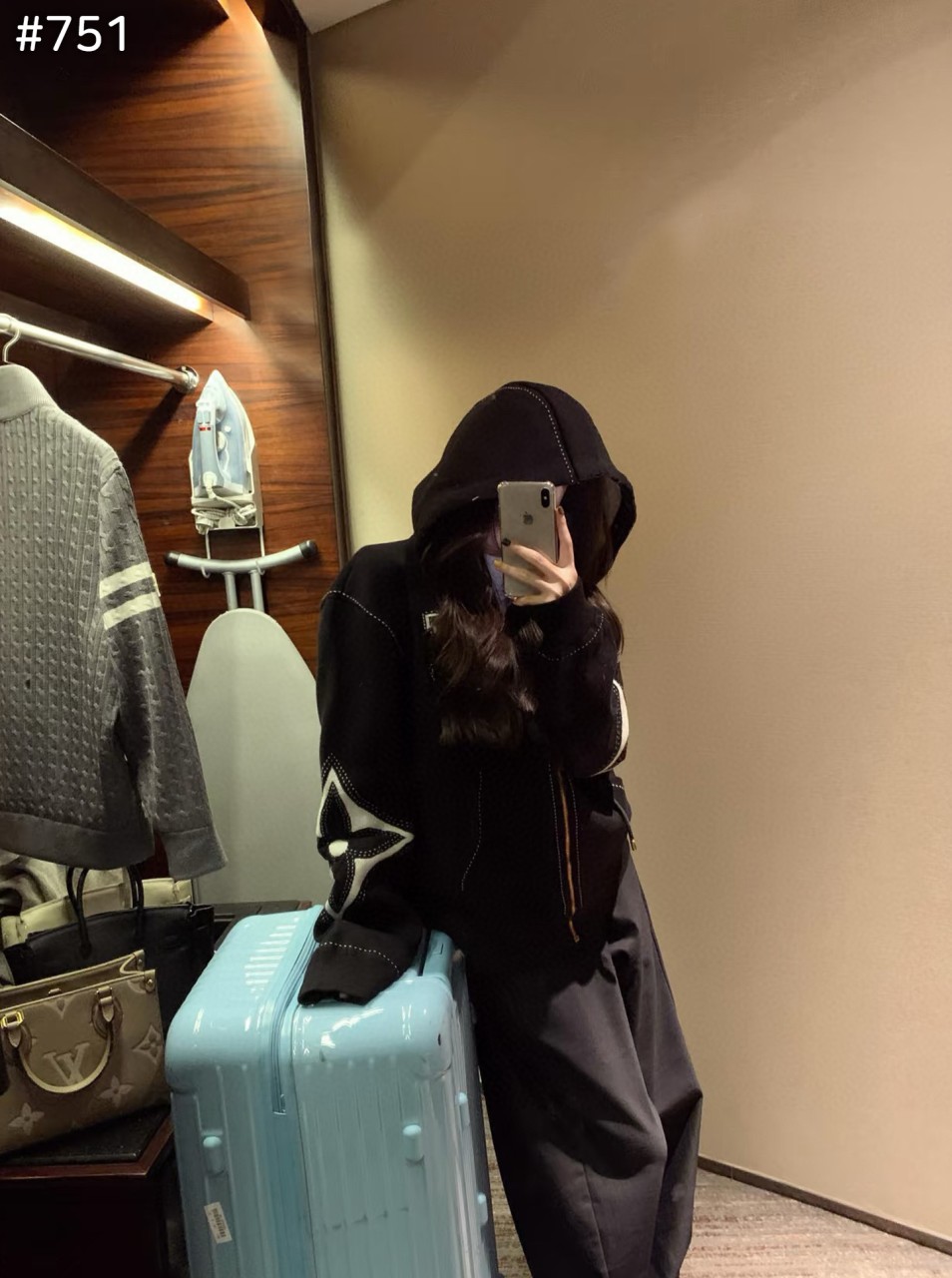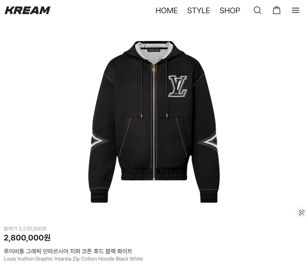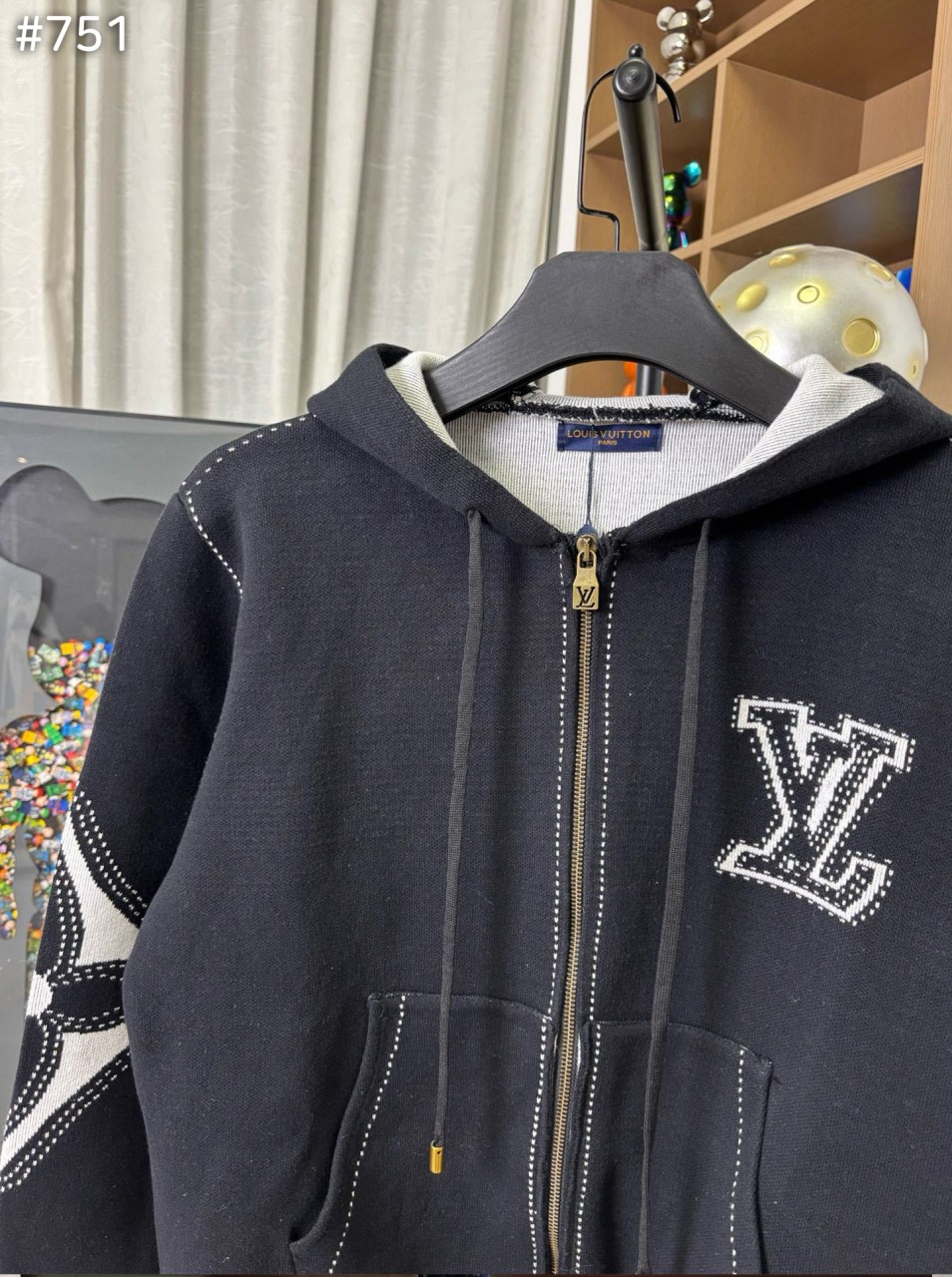 루이비통 그래픽 인타르시아 코튼 후드 집업 블랙