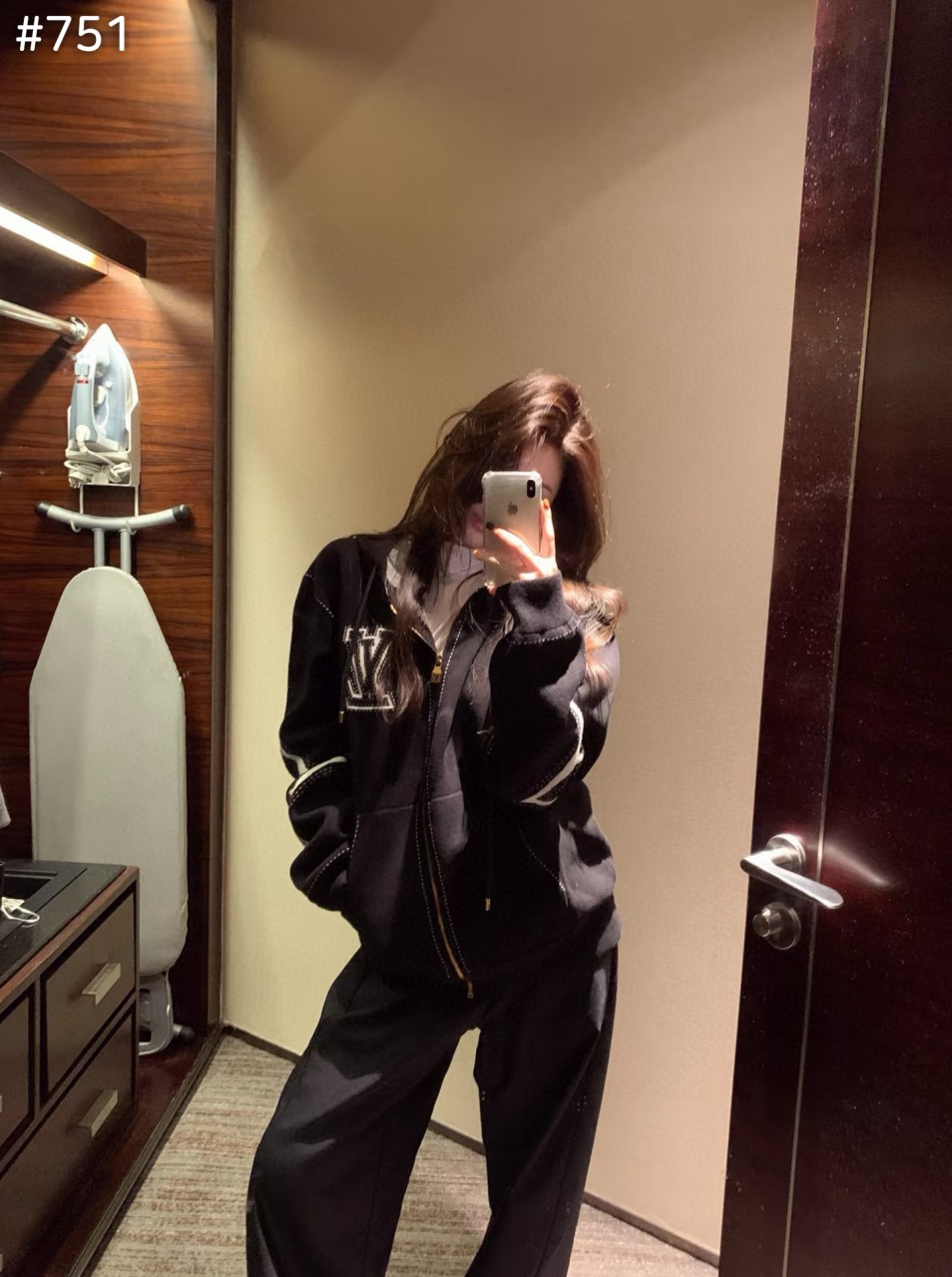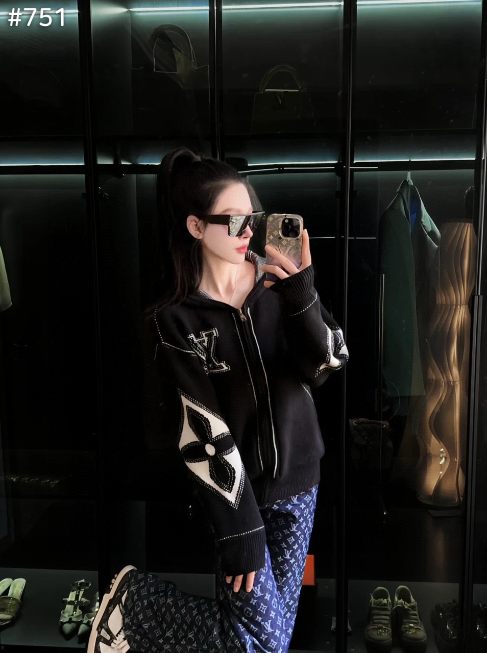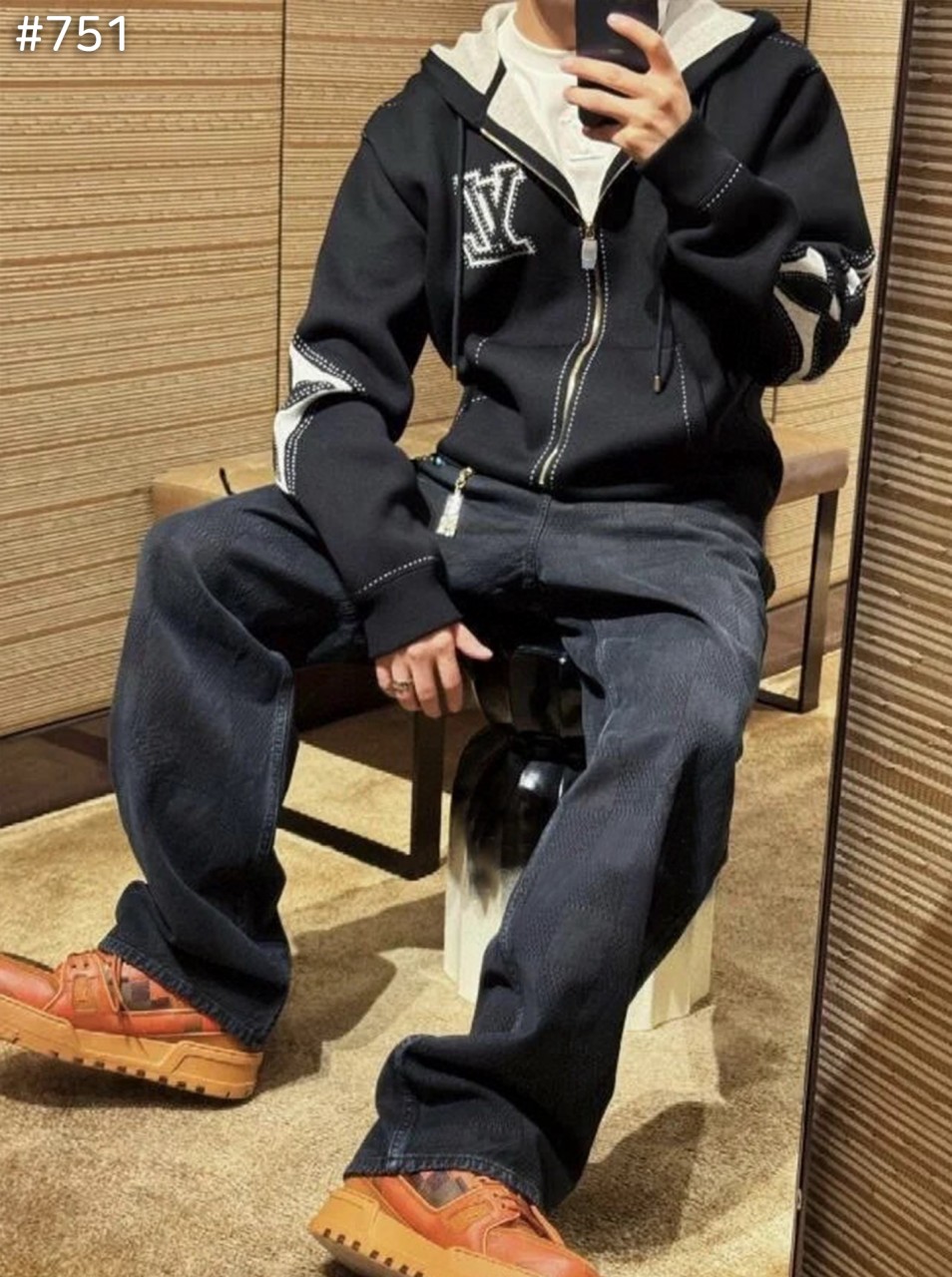 루이비통 그래픽 인타르시아 코튼 후드 집업 블랙