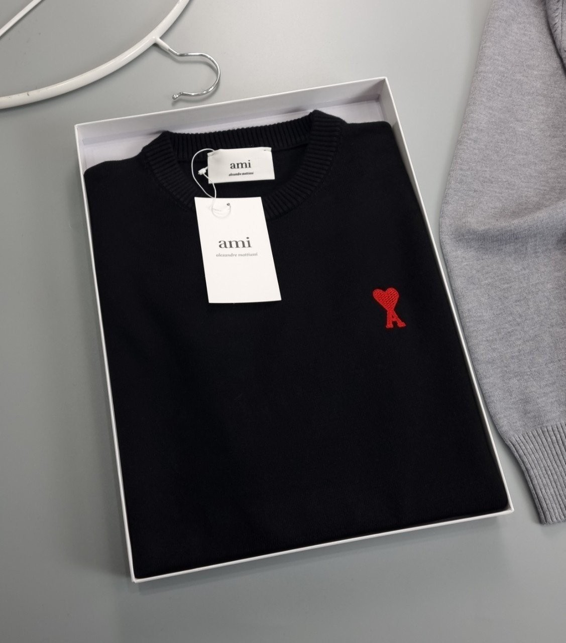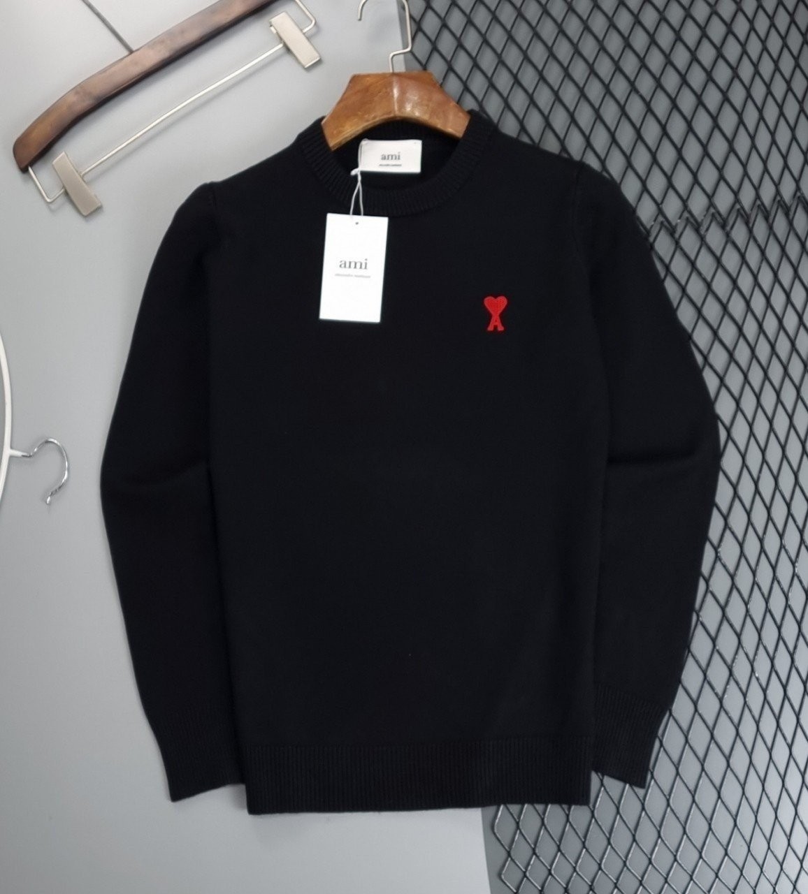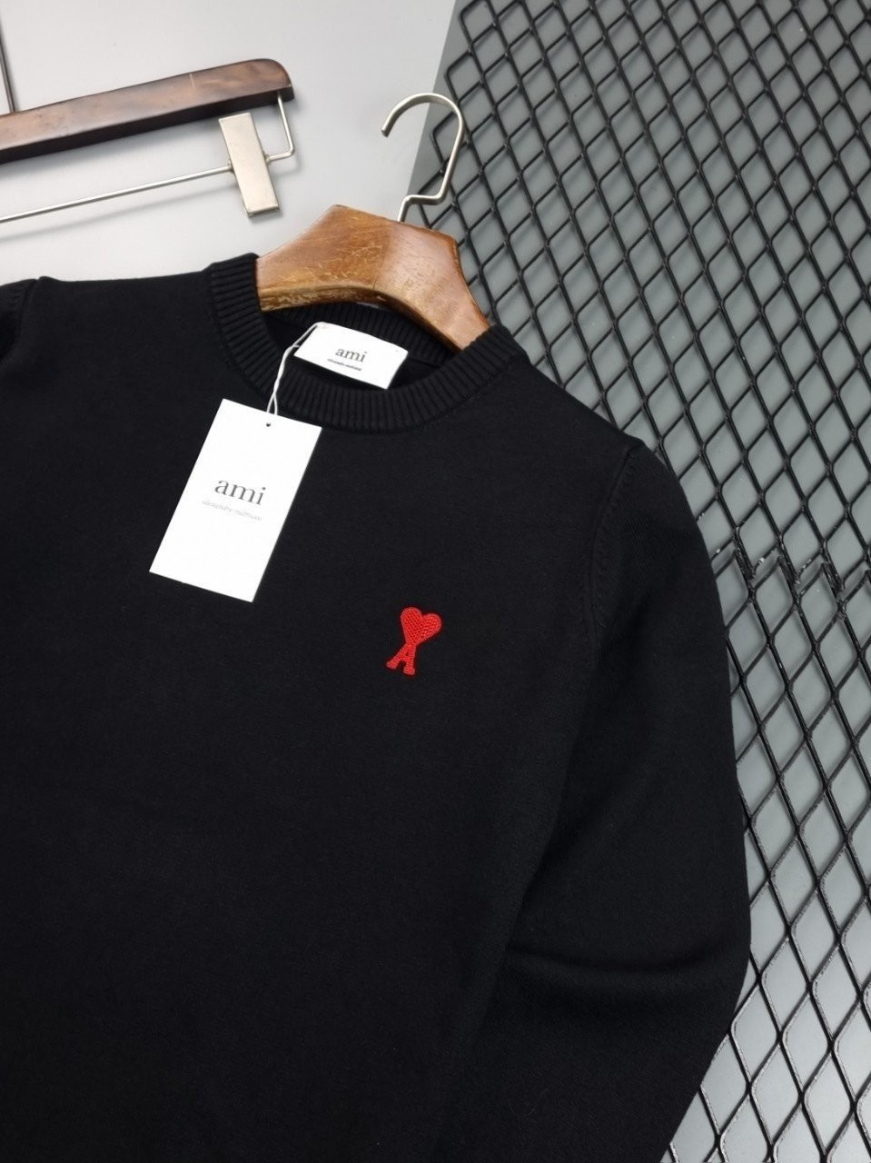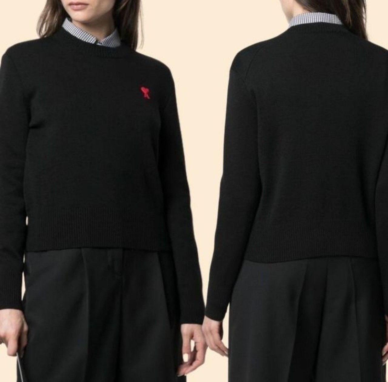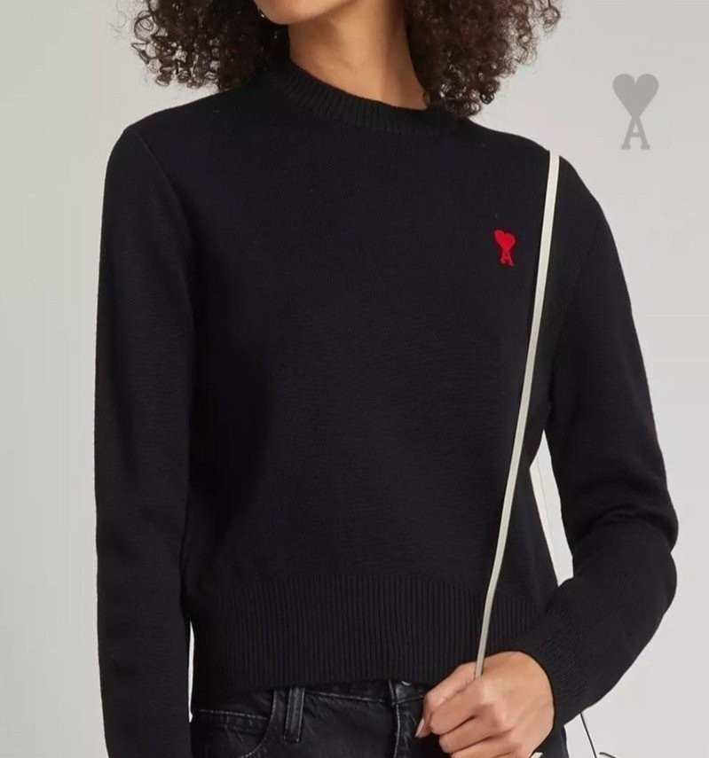 아미 스몰체인 레드하트 울캐시 라운드니트 블랙