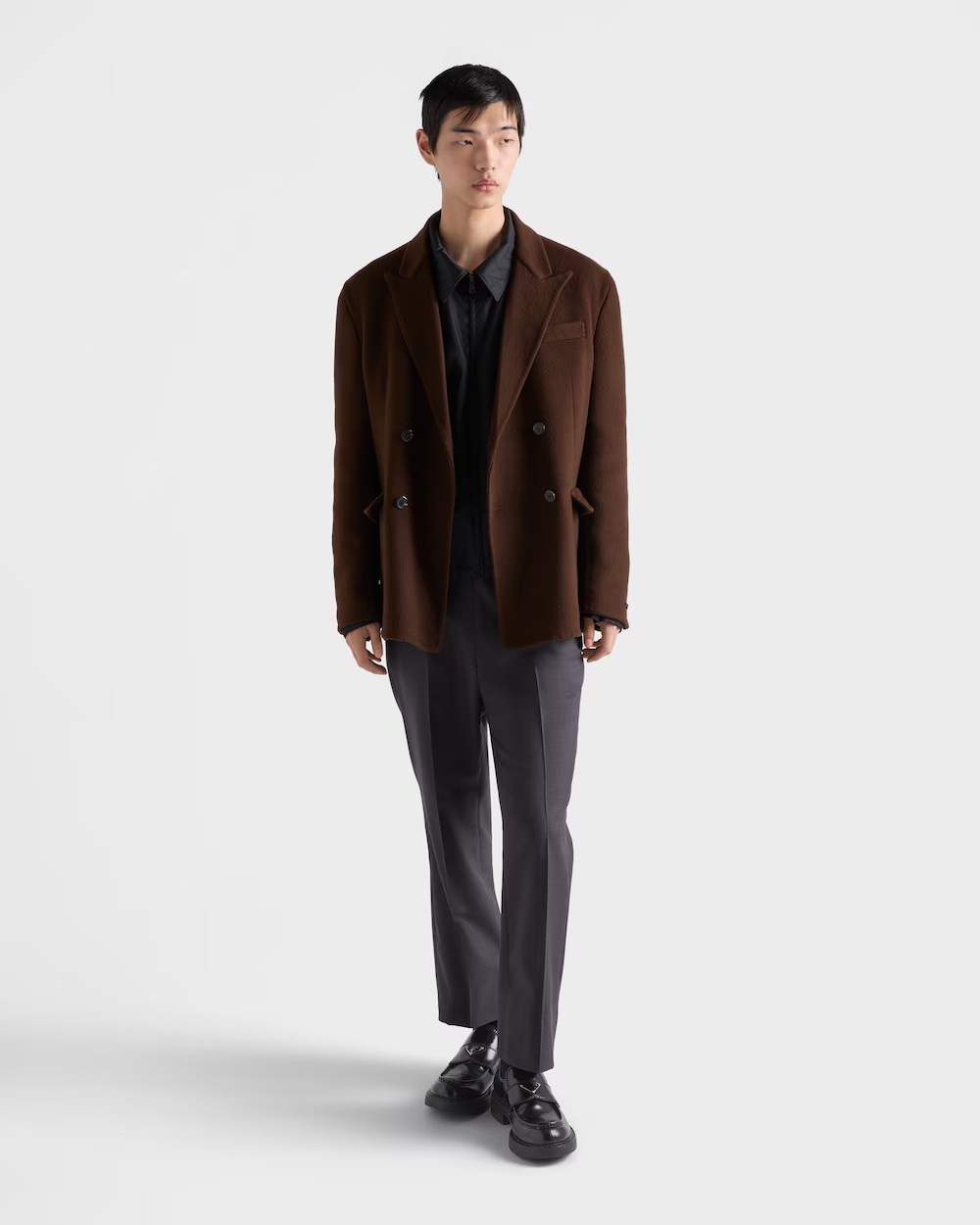 프라다 초콜릿 브러시드 가죽 로퍼 블랙 (풀박스)