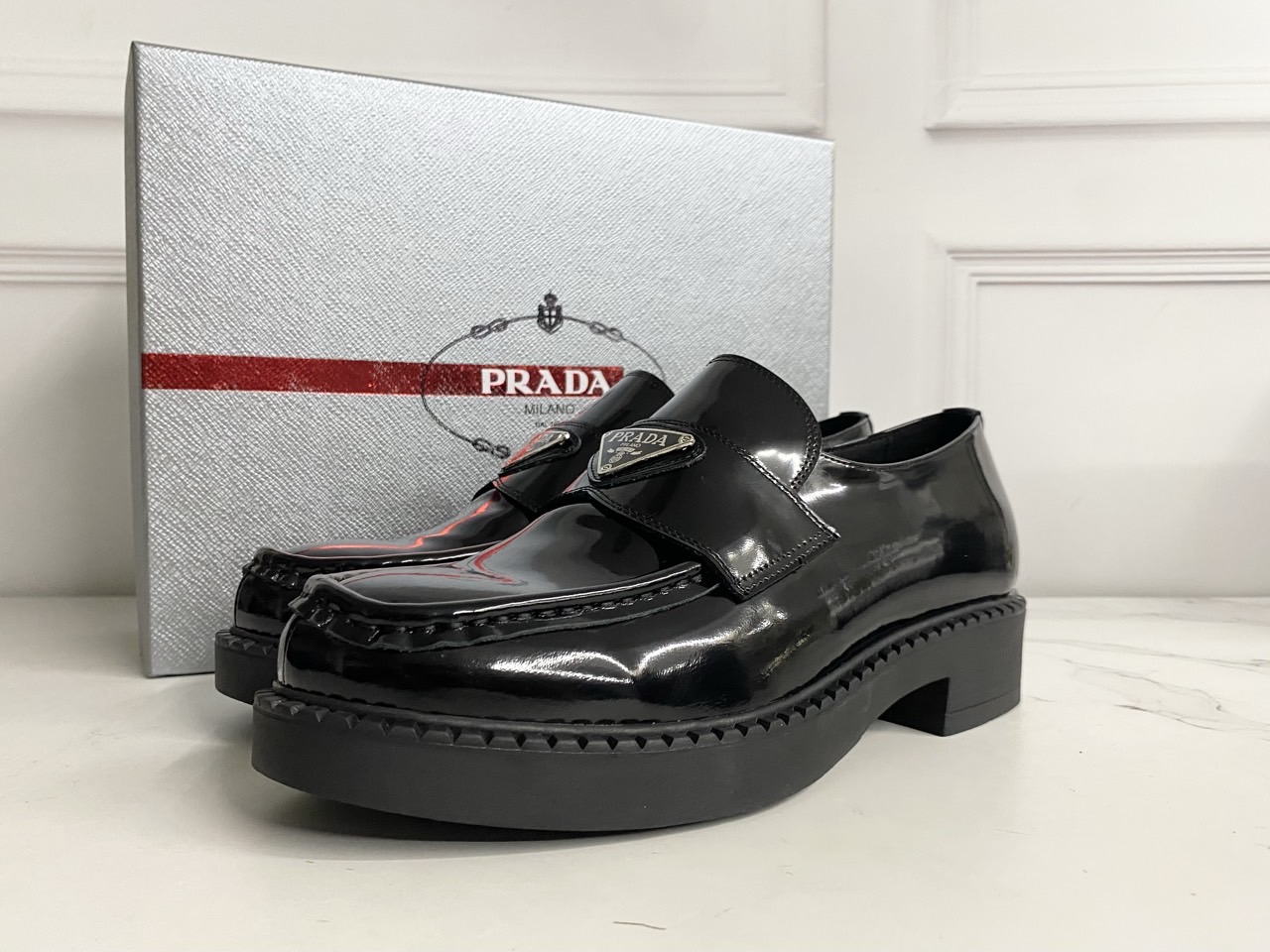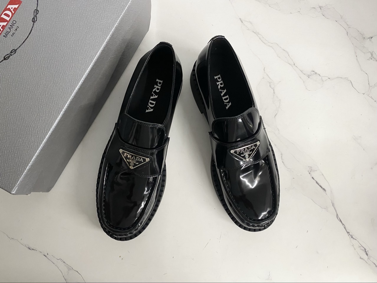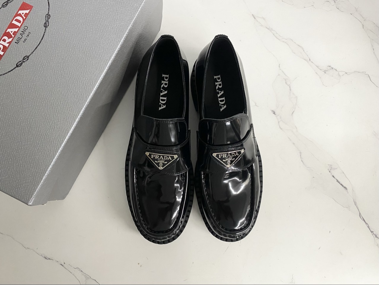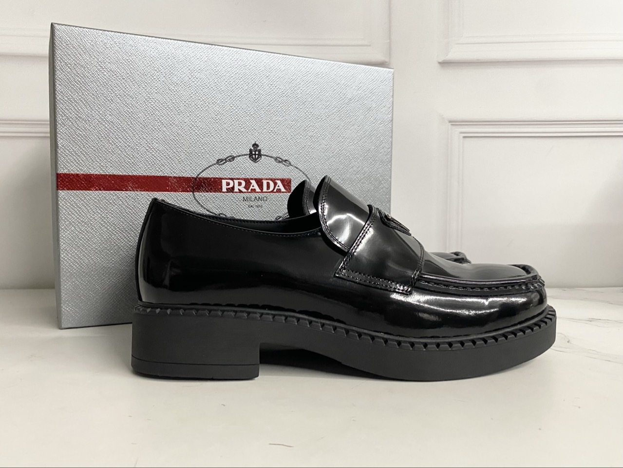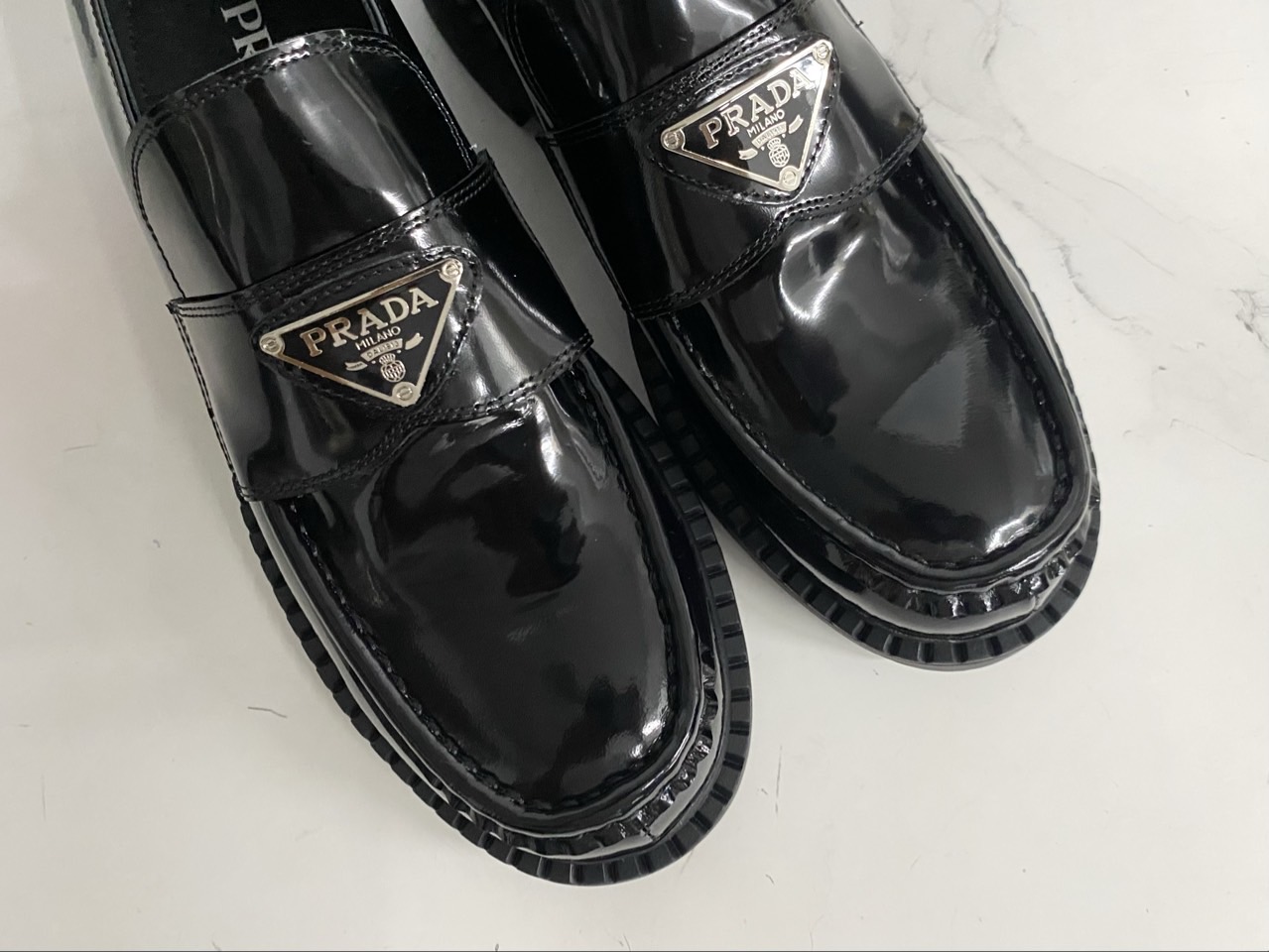 프라다 초콜릿 브러시드 가죽 로퍼 블랙 (풀박스)와 같은 프라다 제품