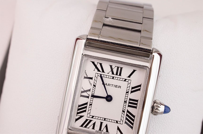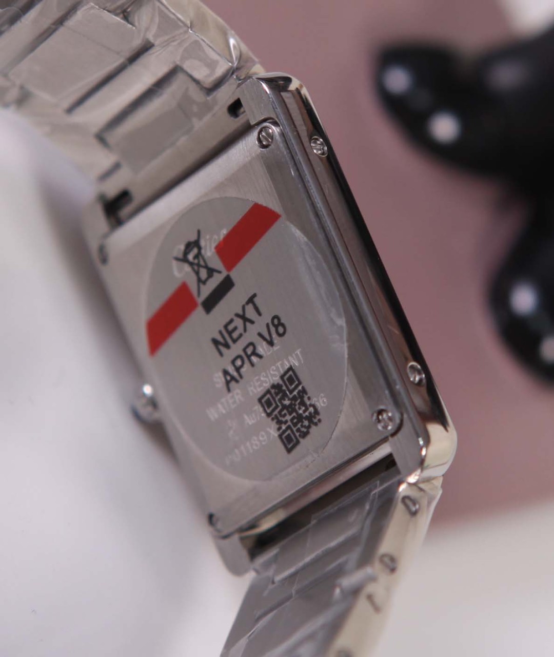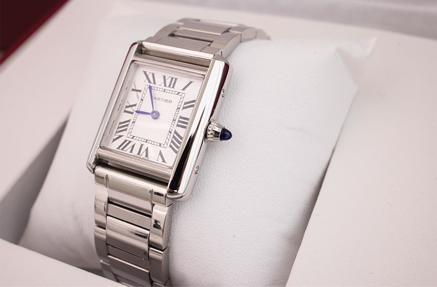 스틸 케이스, 카보숑형 합성 스피넬 1개를 세팅한 비즈 크라운,