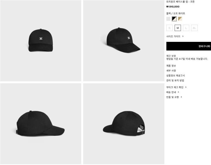 셀린느 시그니처 트리옹프 자수 볼캡입니다.