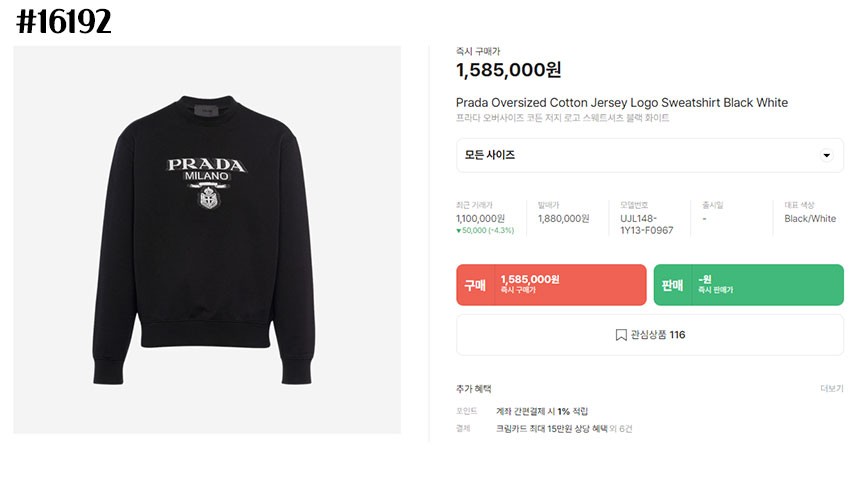 프라다 밀라노 클래식 코튼 저지 맨투맨 티셔츠 블랙과 같은 프라다 제품