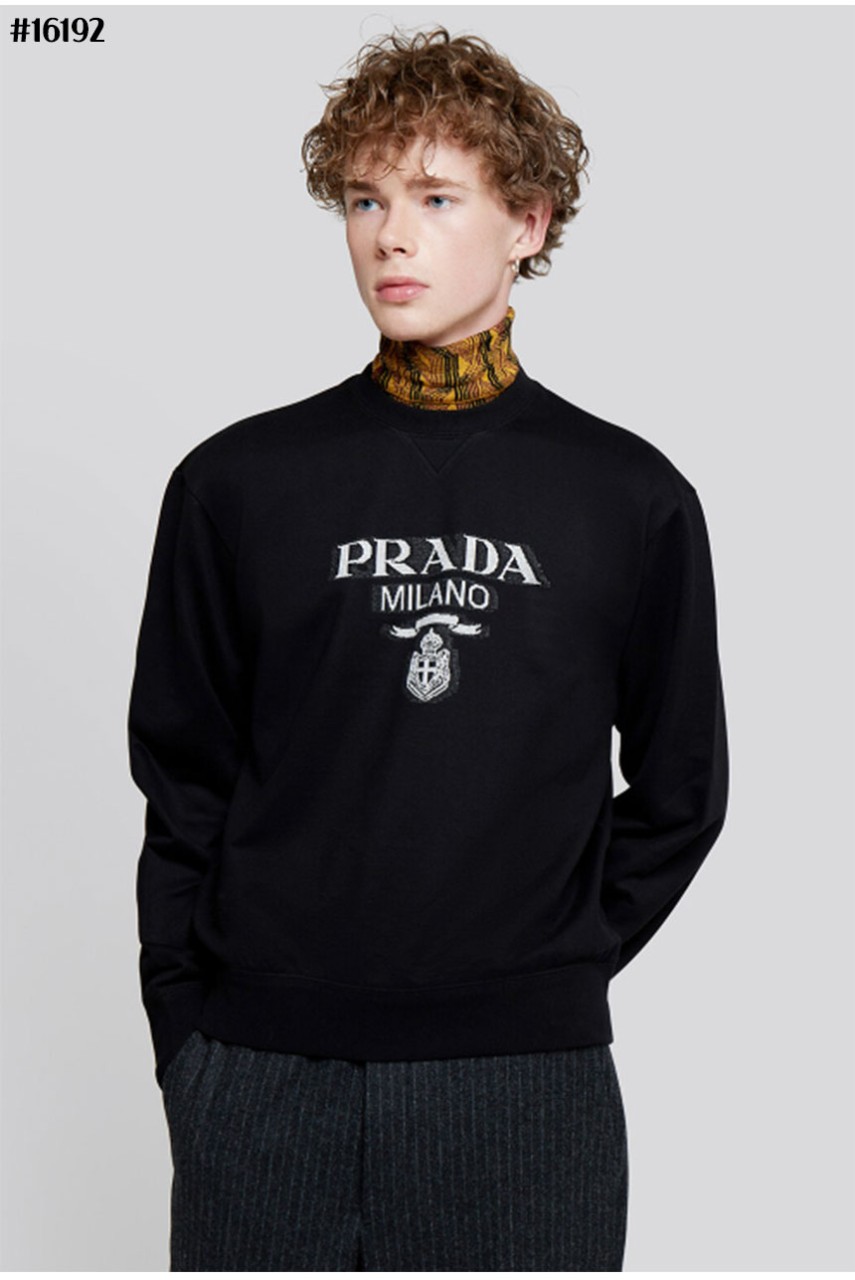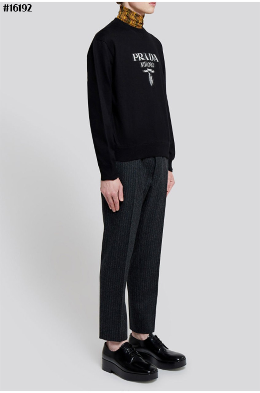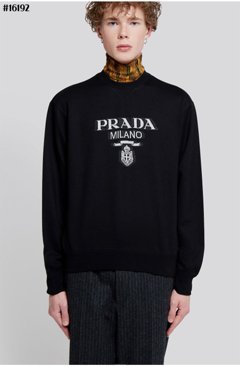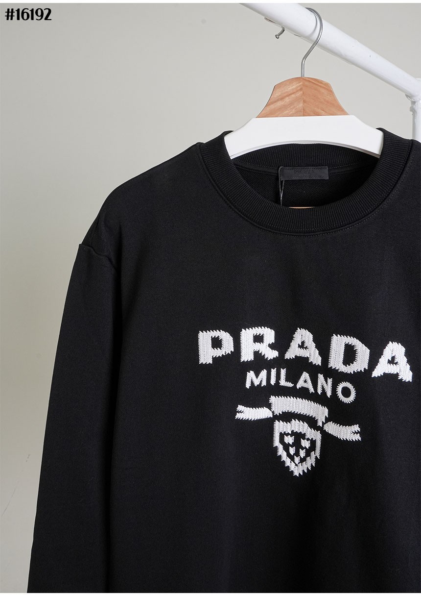 프라다 밀라노 클래식 코튼 저지 맨투맨 티셔츠 블랙