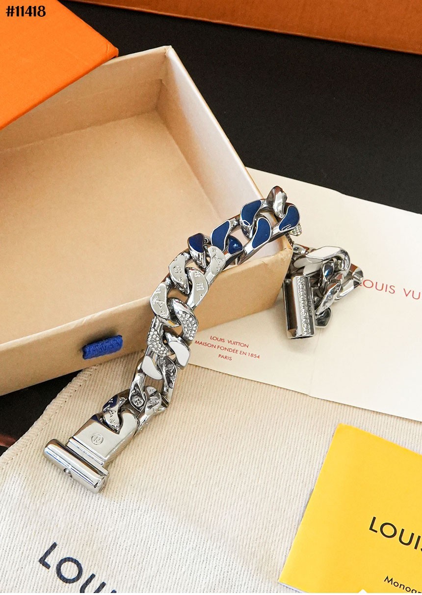 루이비통 X 버질 아블로 콜라보 패치 체인 링크 팔찌 (풀박스)와 같은 루이비통 제품