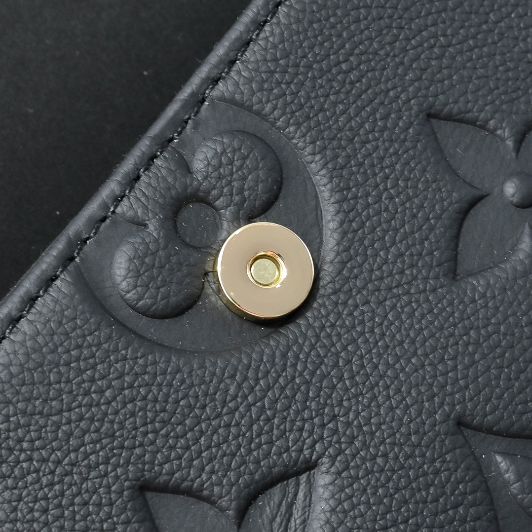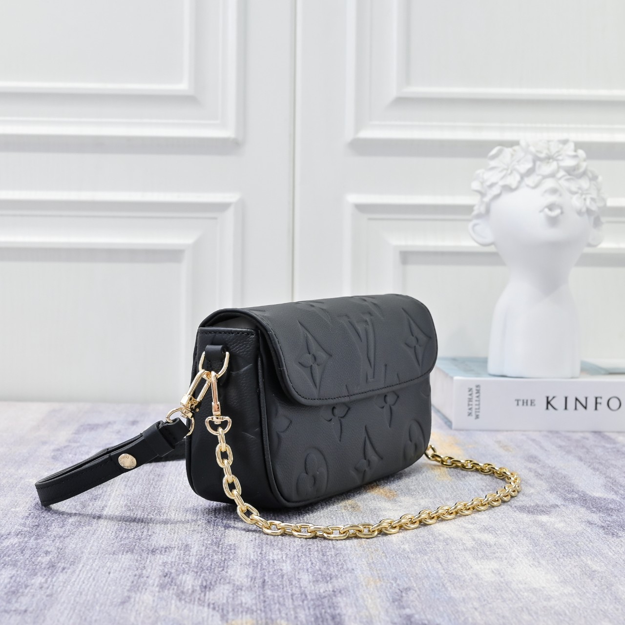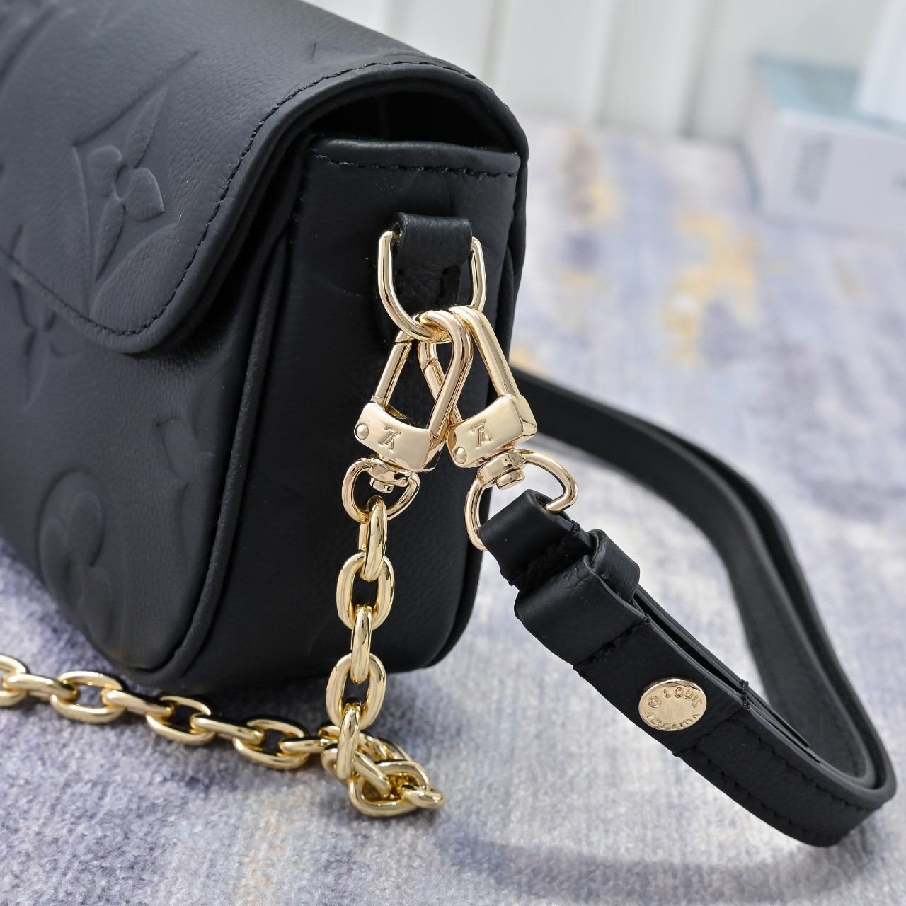 그레인 모노그램 앙프렝뜨 가죽 소재로 선보이는 스타일리시한 월릿 온 체인 아이비. 양각으로 새긴 대형 모노그램 모티프가 특징. 데일리 룩과 이브닝 룩에 모두 완벽하게 어울리는 디자인. 클러치로, 골드 색상의 짧은 체인을 활용해 짧은 숄더 백으로 또는 탈착 및 조절 가능한 가죽 스트랩을 연결해 캐주얼한 크로스 바디 백으로 연출할 수 있는 아이템.