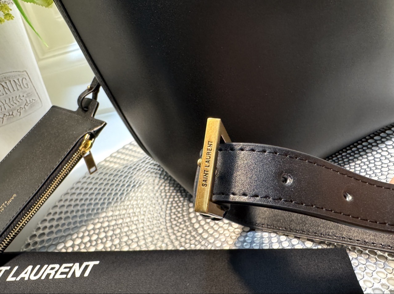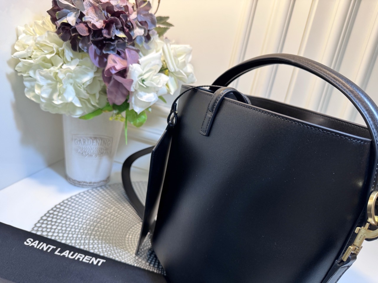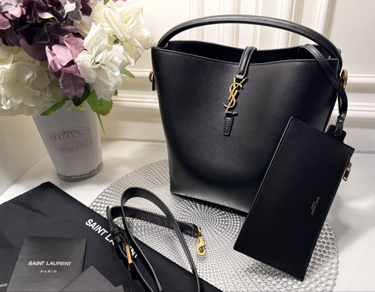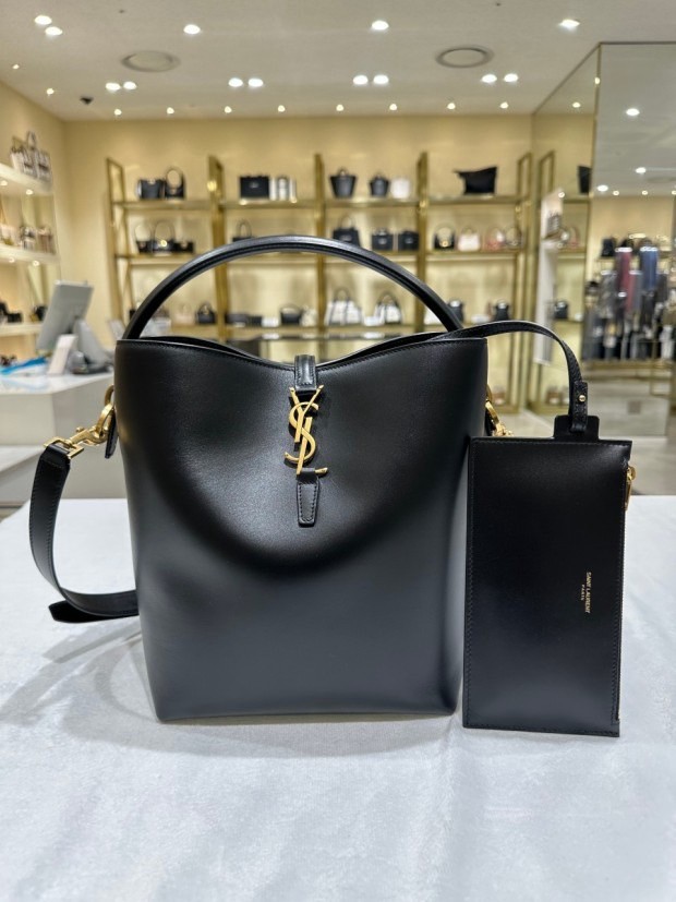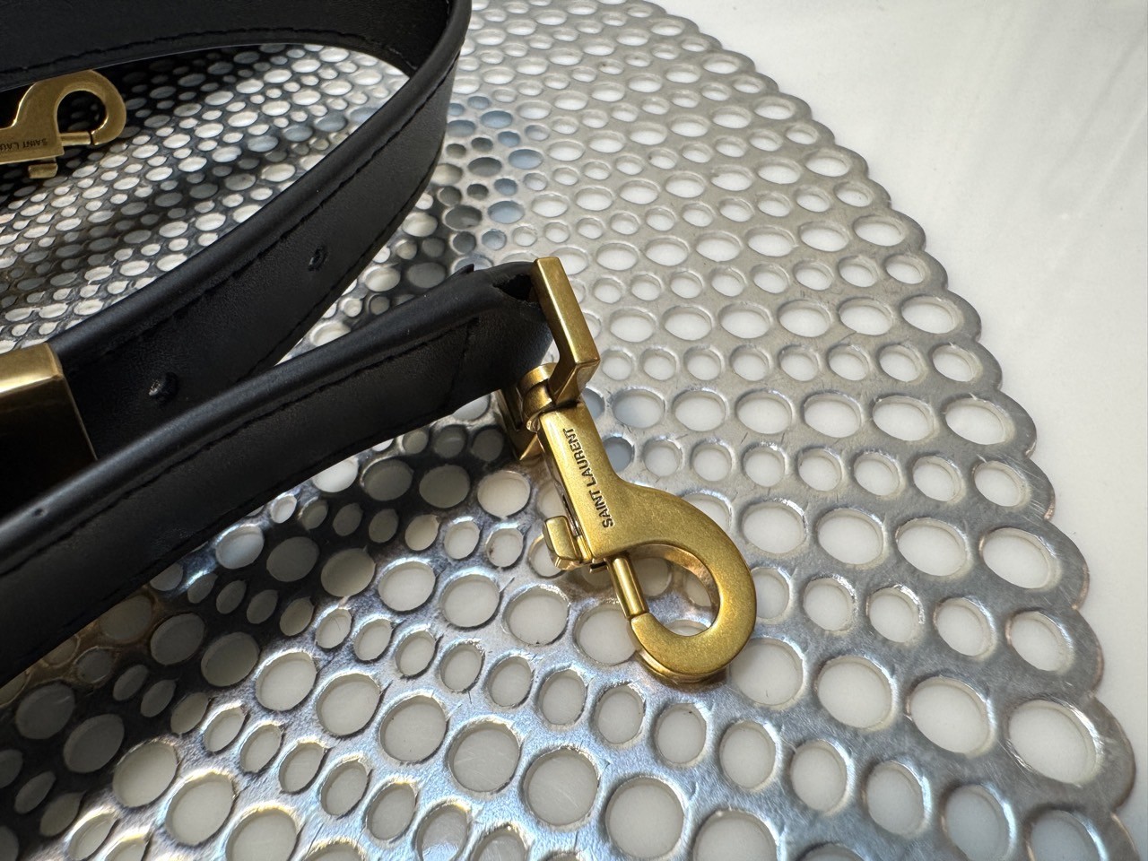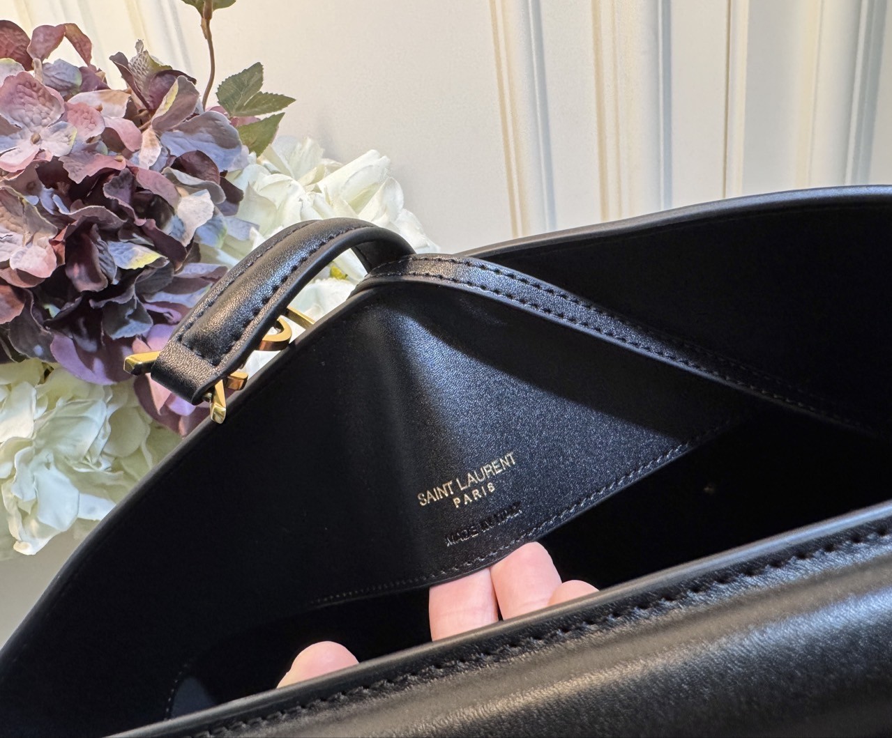 골드 컬러의 입생로랑 로고가 고급스러운 느낌을 주어 데일리 가방으로도 좋고, 격식있는 자리에도 잘 활용할 수 있습니다