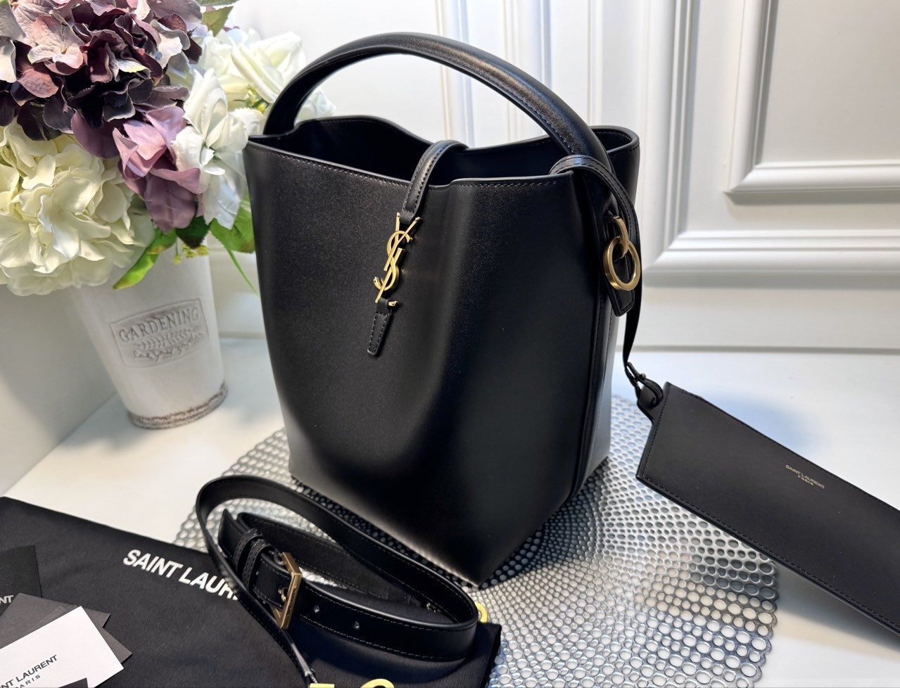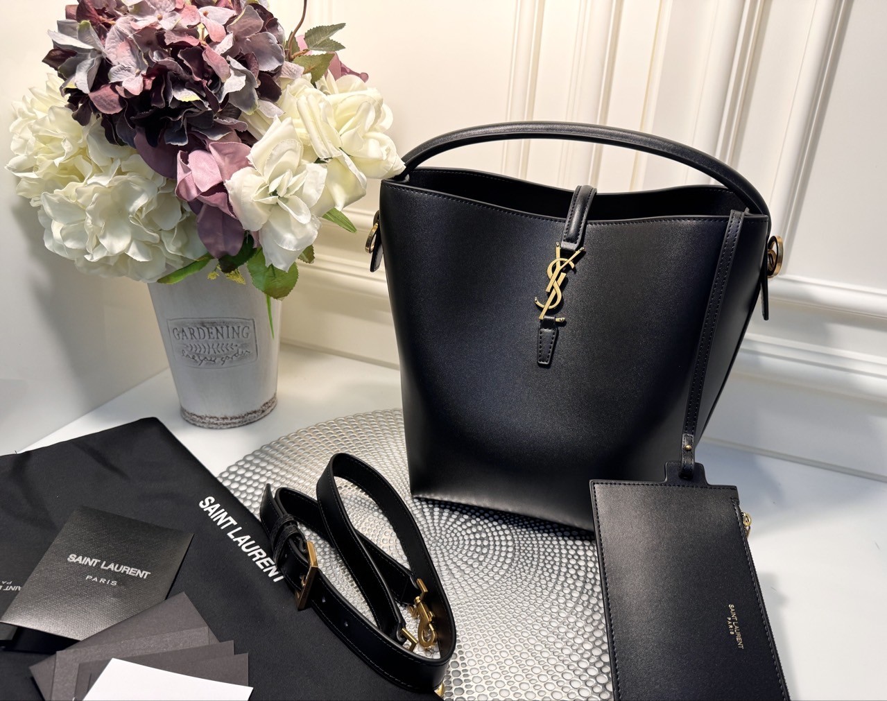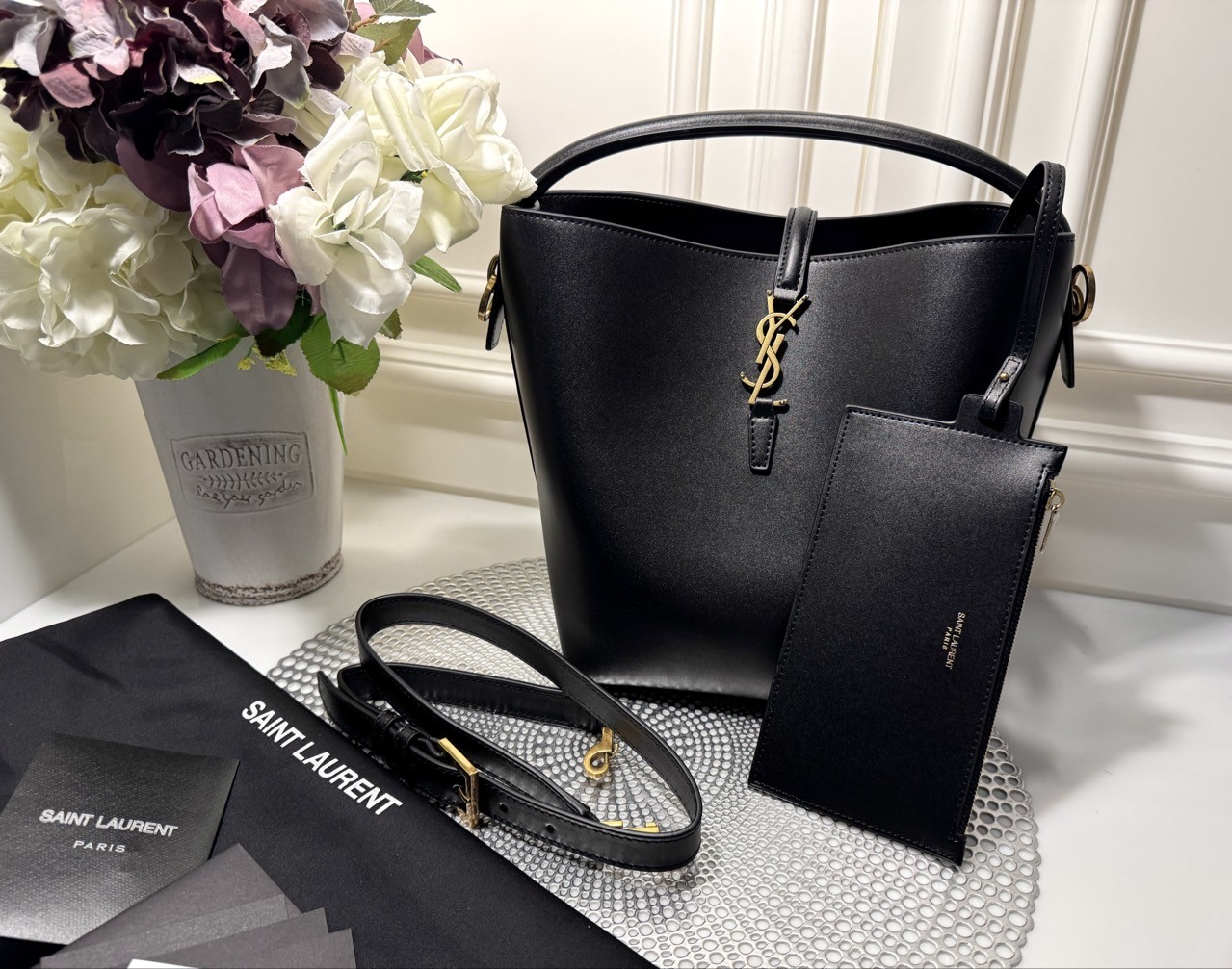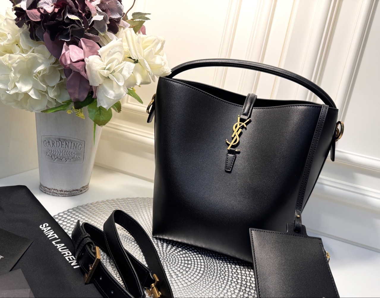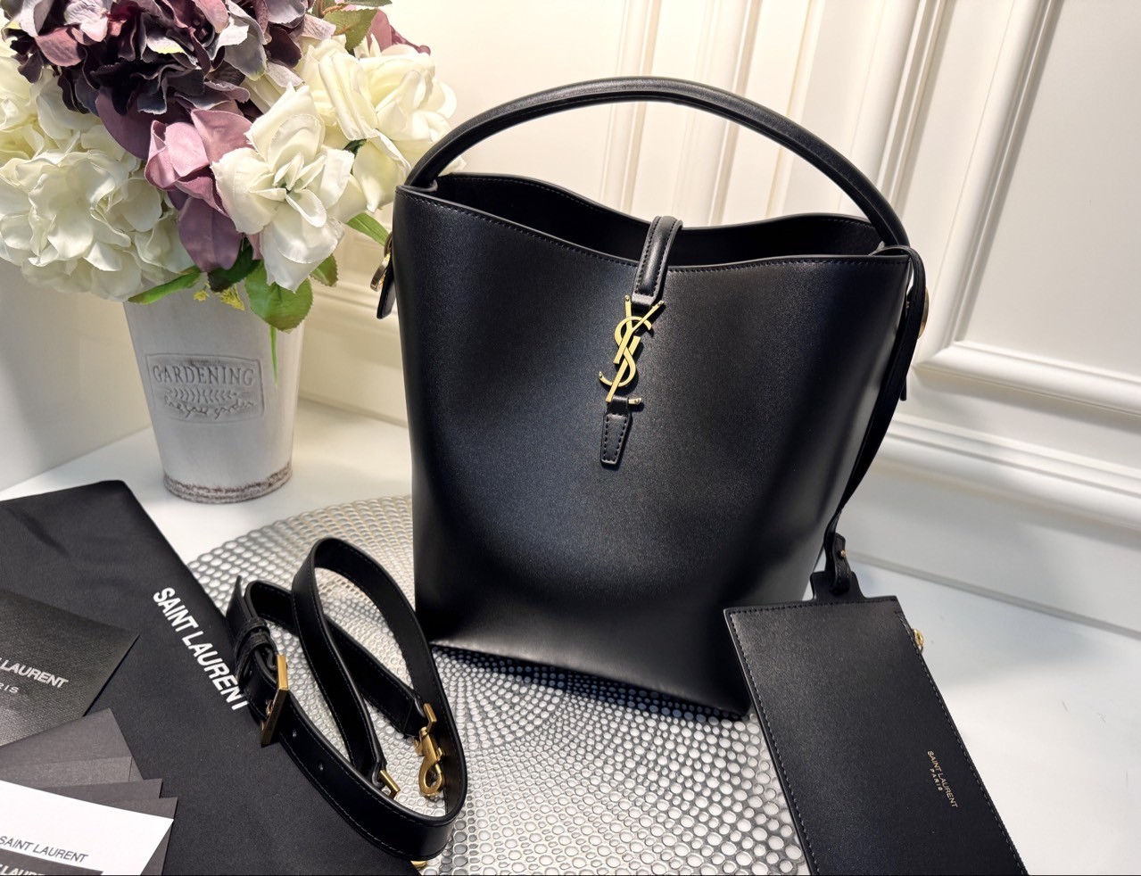 골드 컬러의 입생로랑 로고가 고급스러운 느낌을 주어 데일리 가방으로도 좋고, 격식있는 자리에도 잘 활용할 수 있습니다