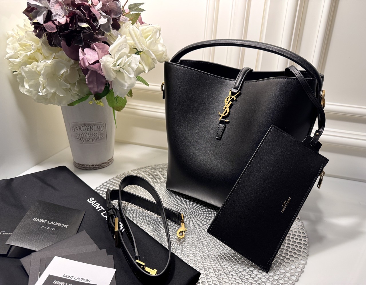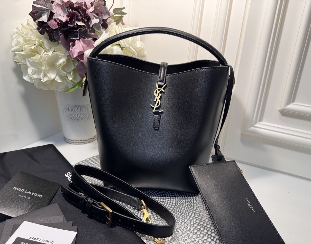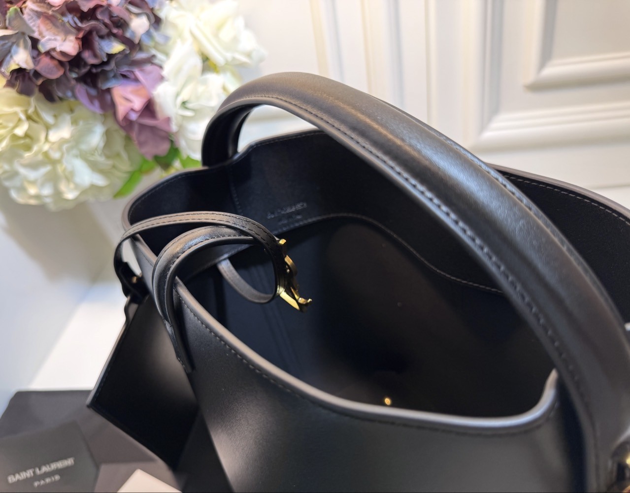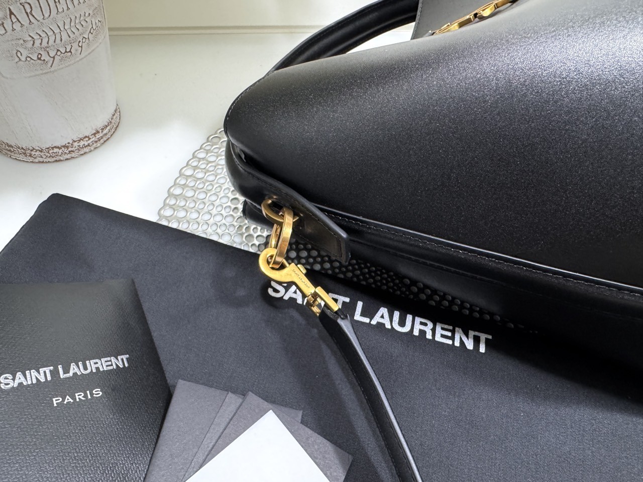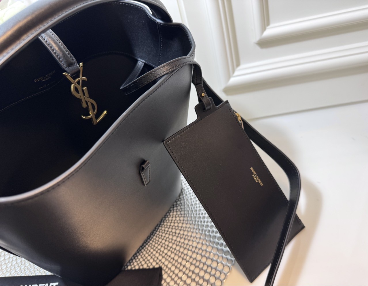 골드 컬러의 입생로랑 로고가 고급스러운 느낌을 주어 데일리 가방으로도 좋고, 격식있는 자리에도 잘 활용할 수 있습니다