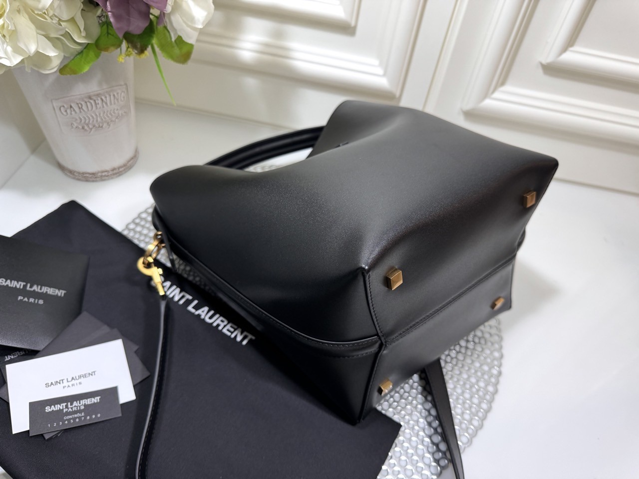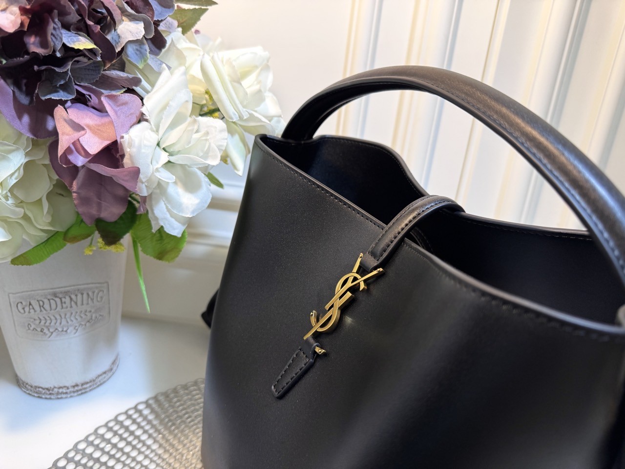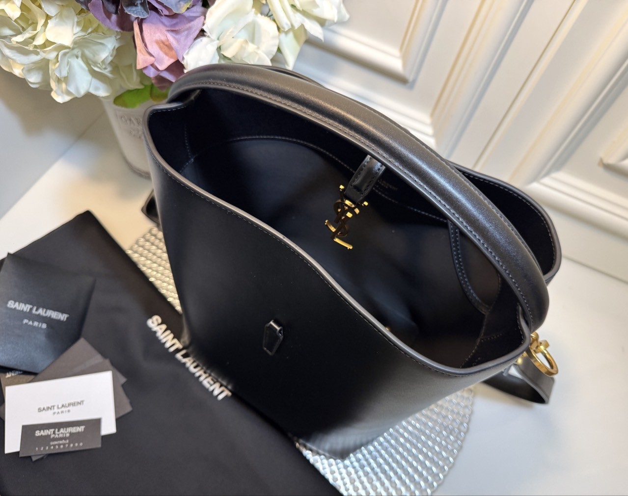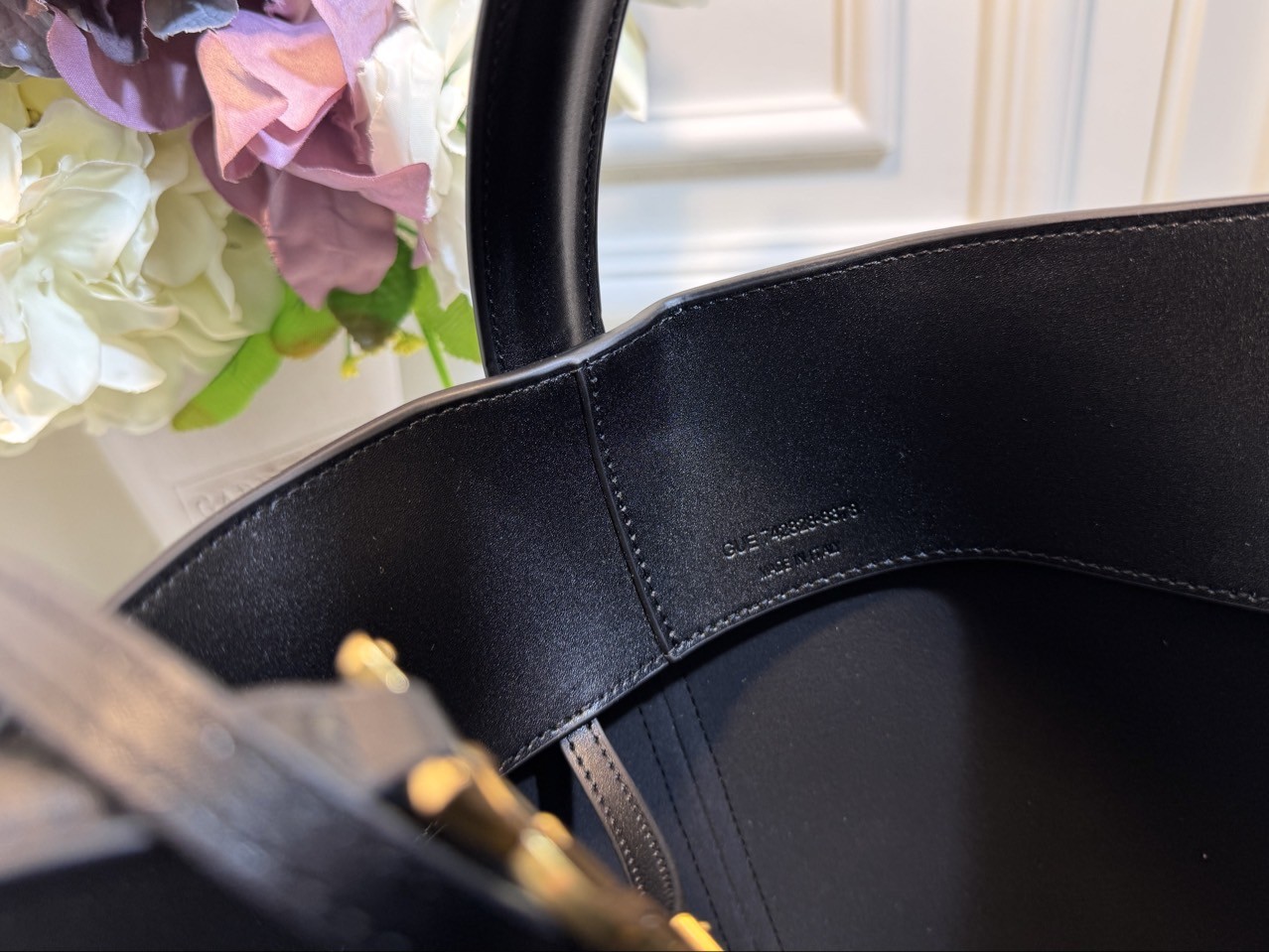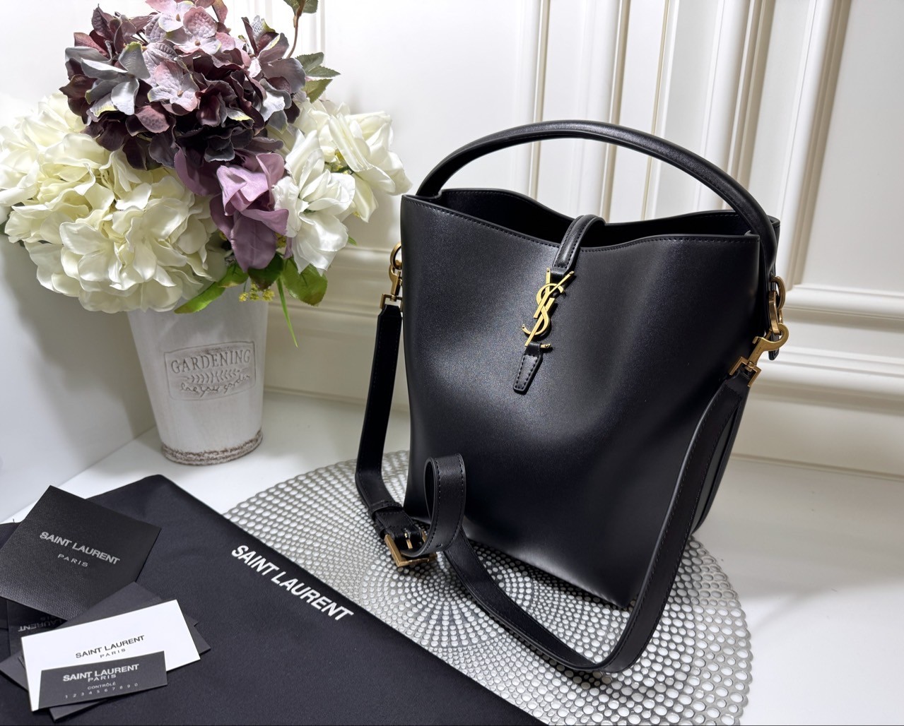 골드 컬러의 입생로랑 로고가 고급스러운 느낌을 주어 데일리 가방으로도 좋고, 격식있는 자리에도 잘 활용할 수 있습니다