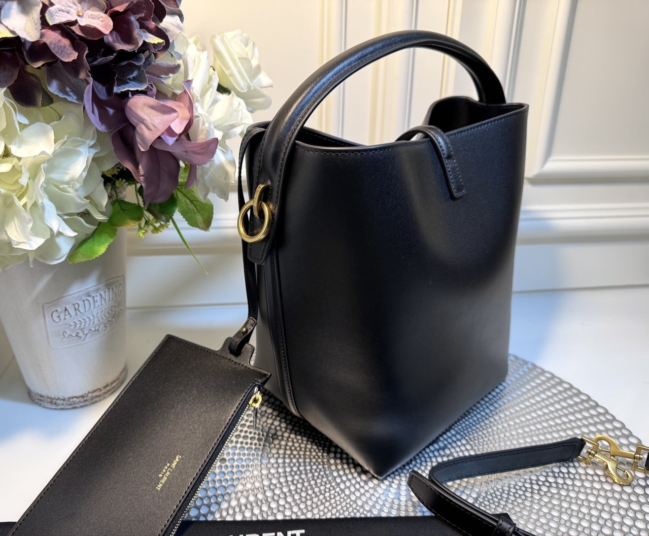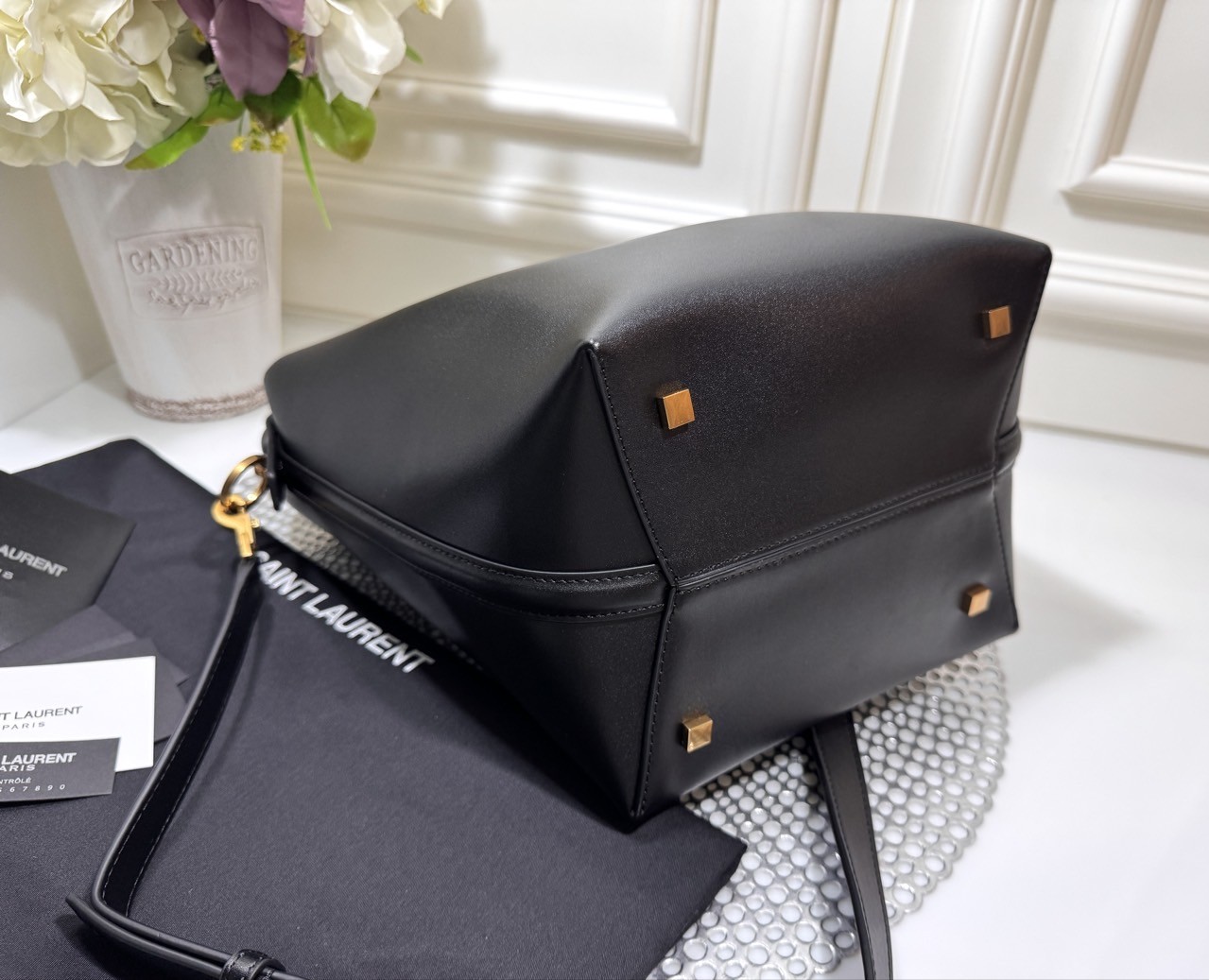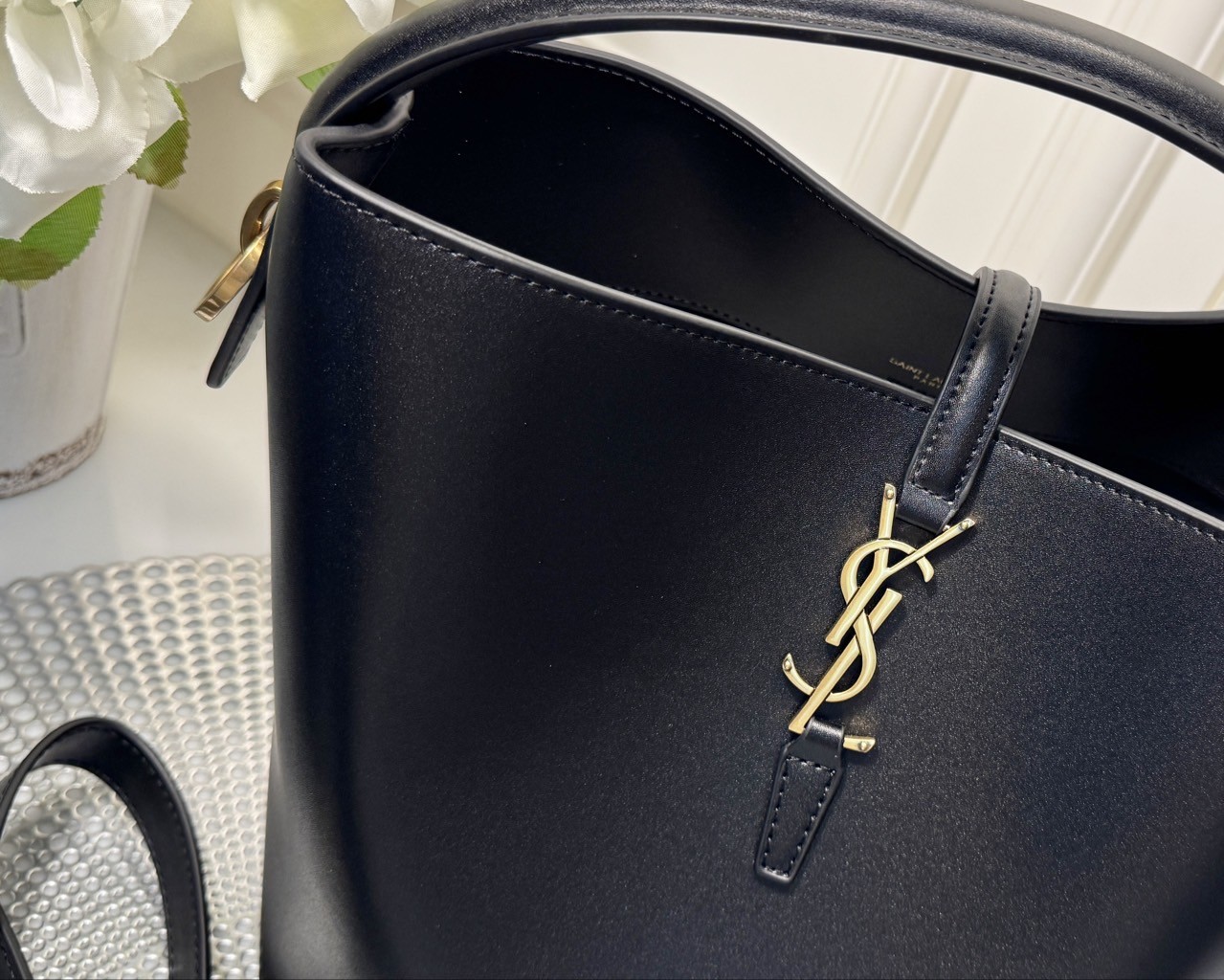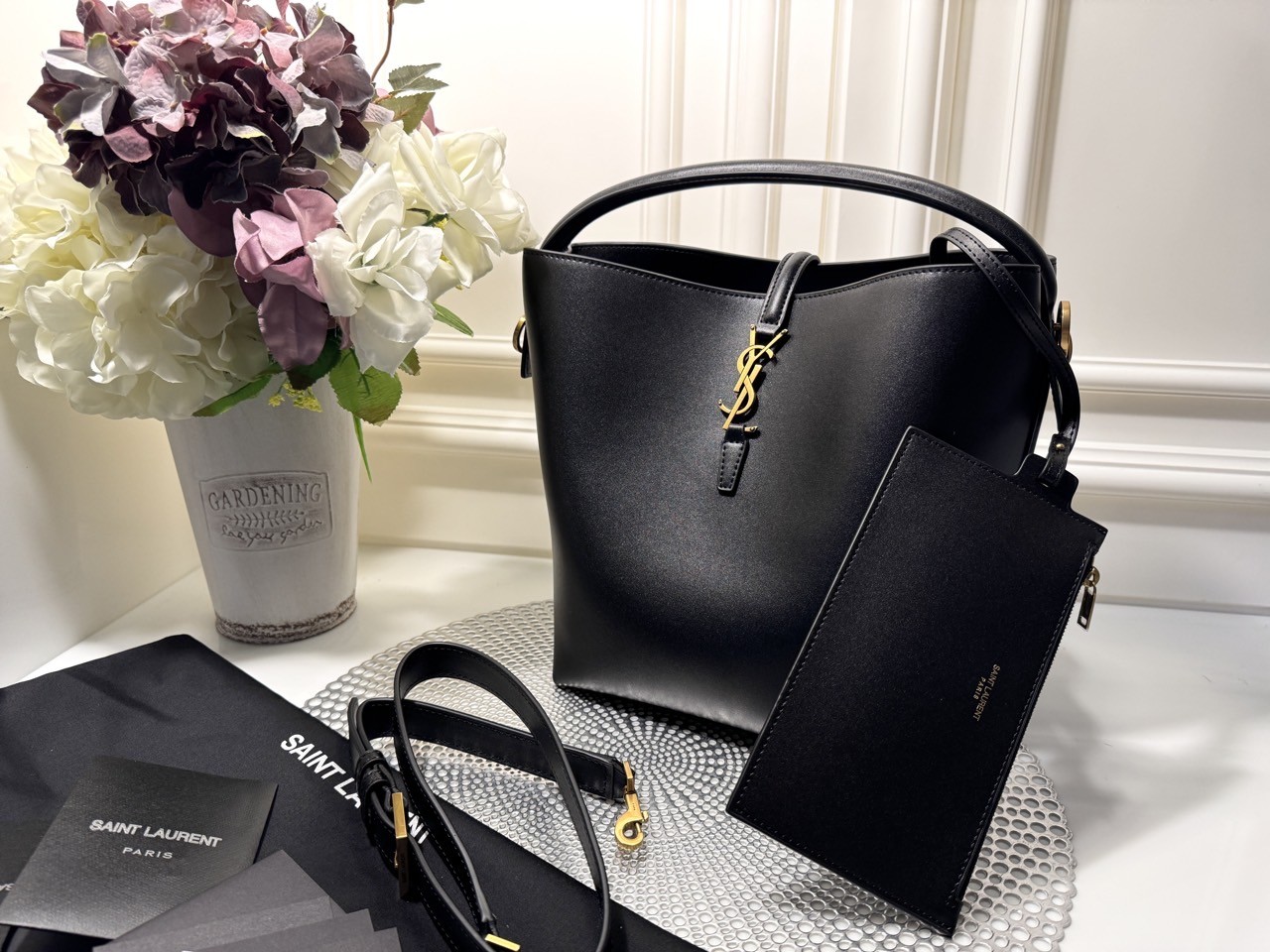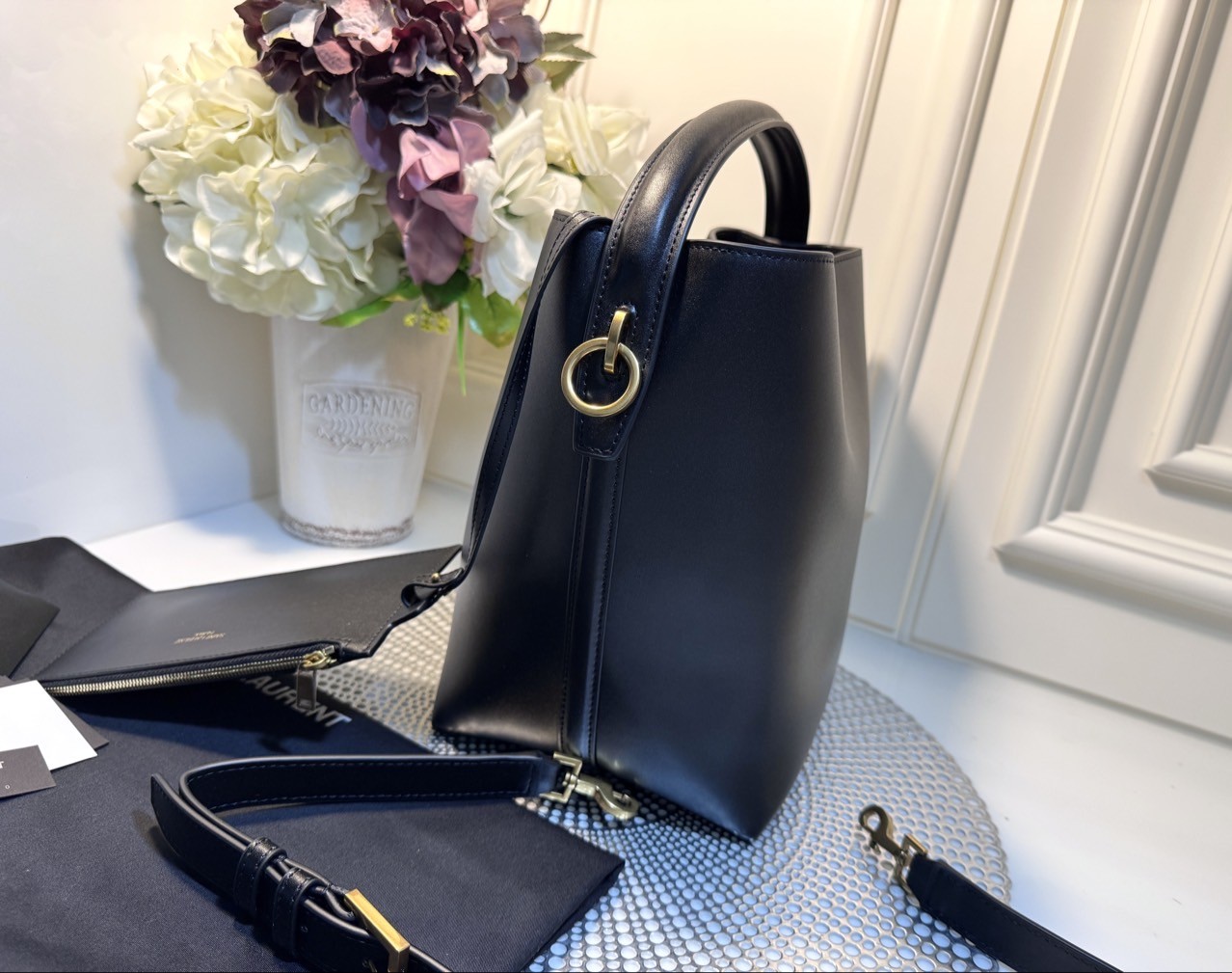 골드 컬러의 입생로랑 로고가 고급스러운 느낌을 주어 데일리 가방으로도 좋고, 격식있는 자리에도 잘 활용할 수 있습니다