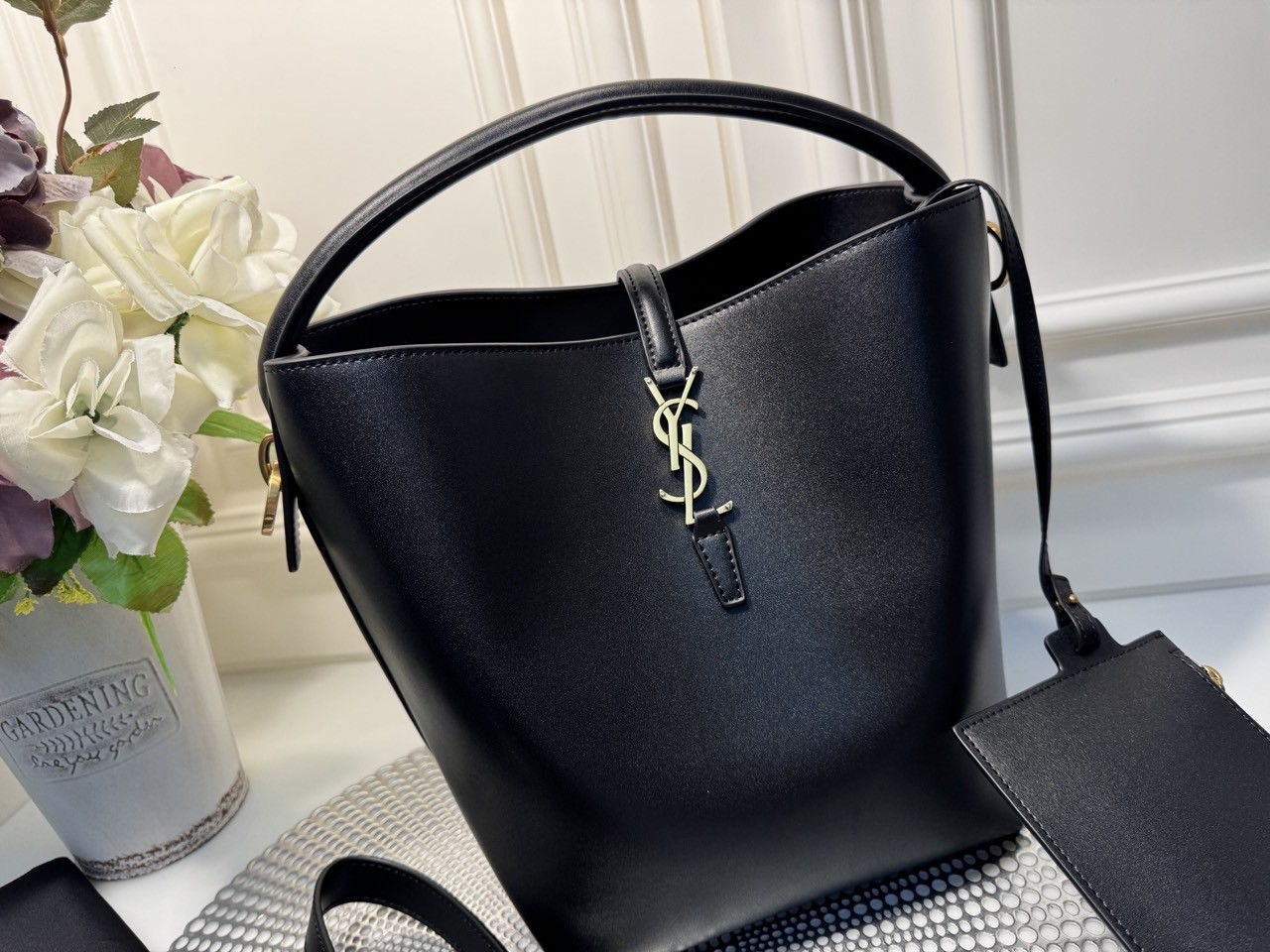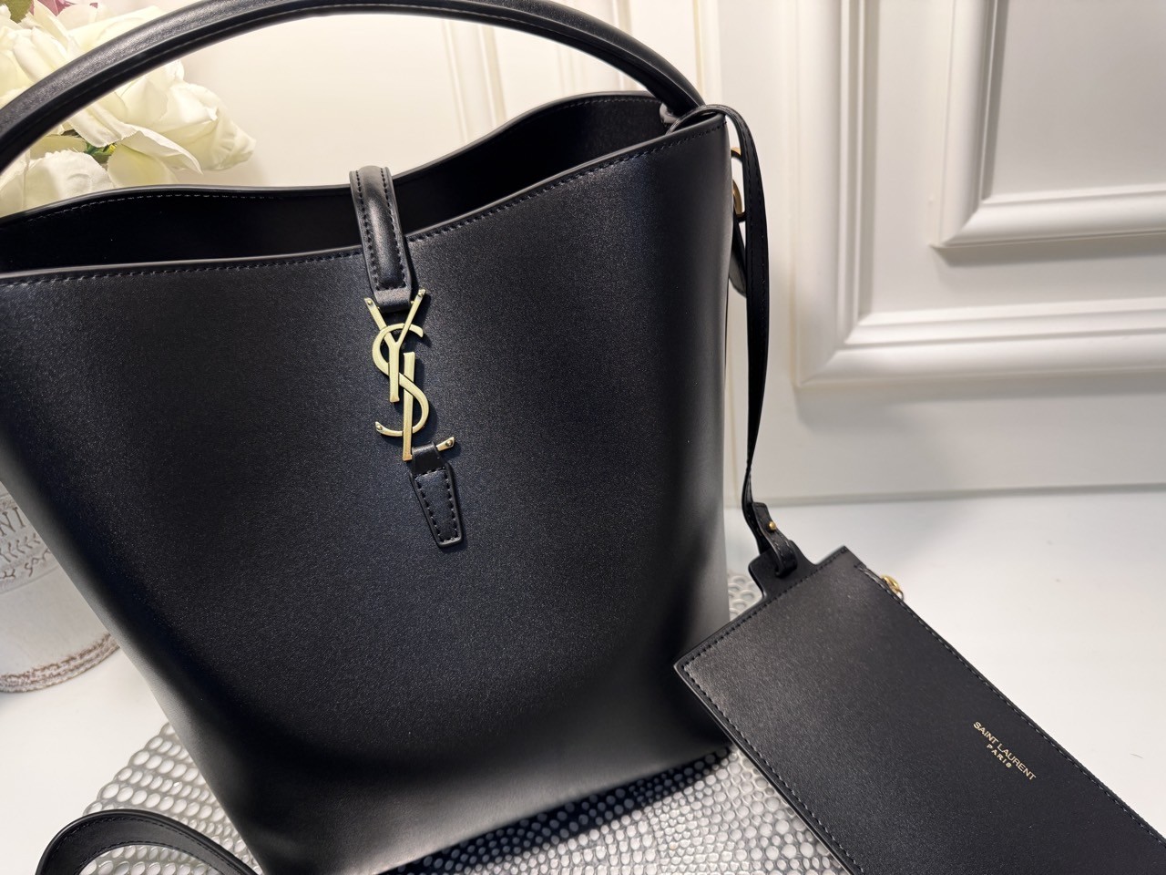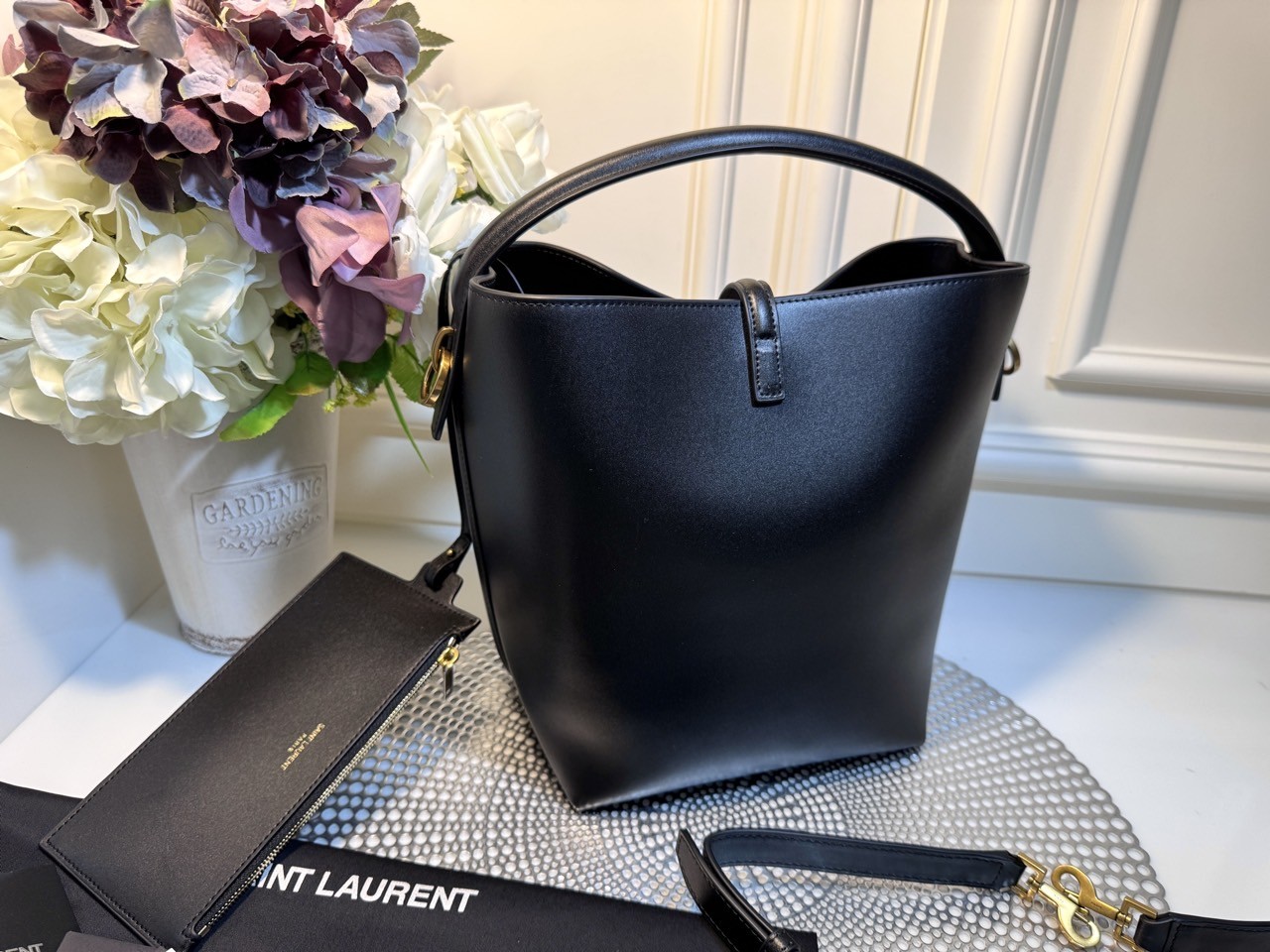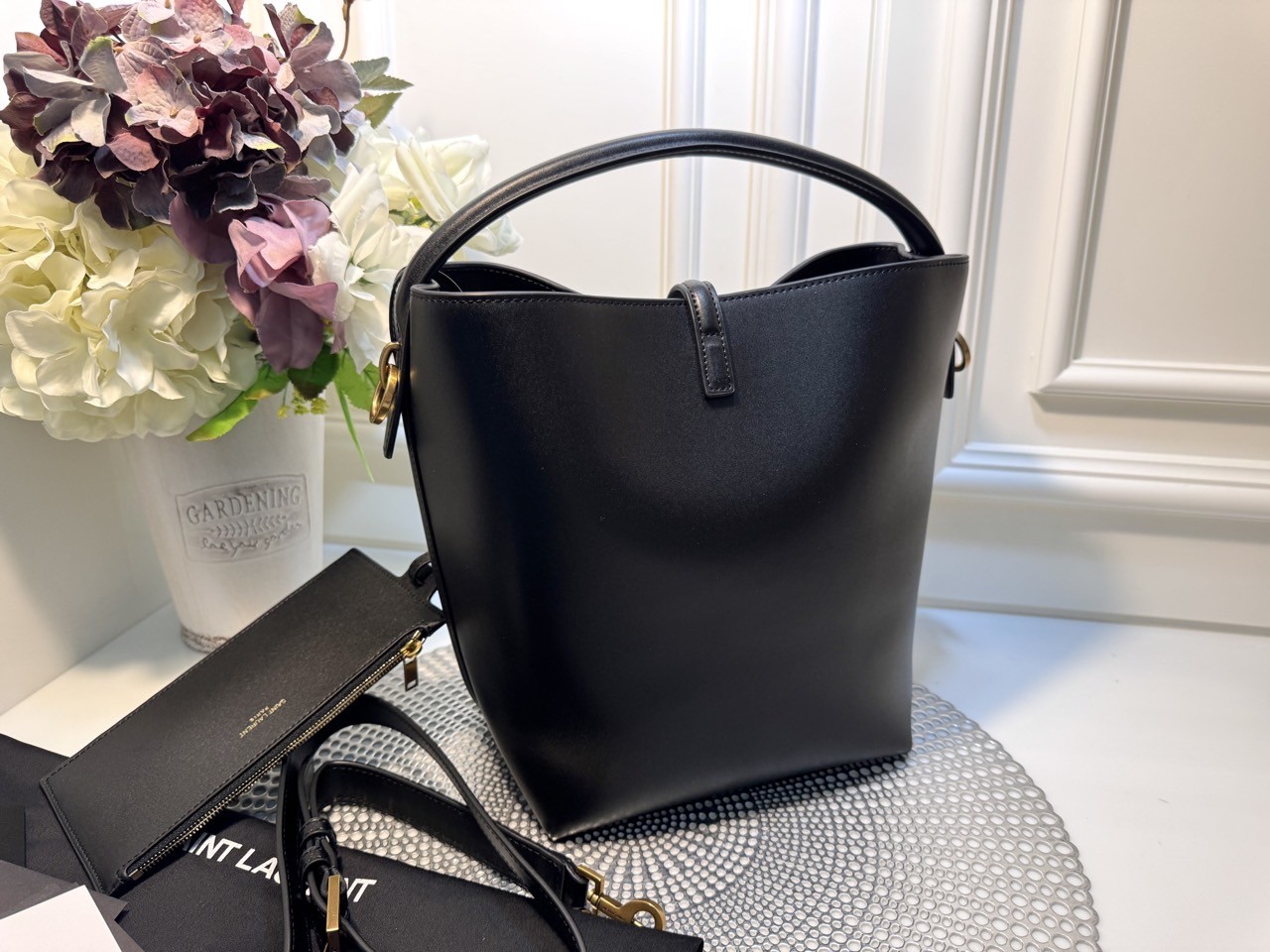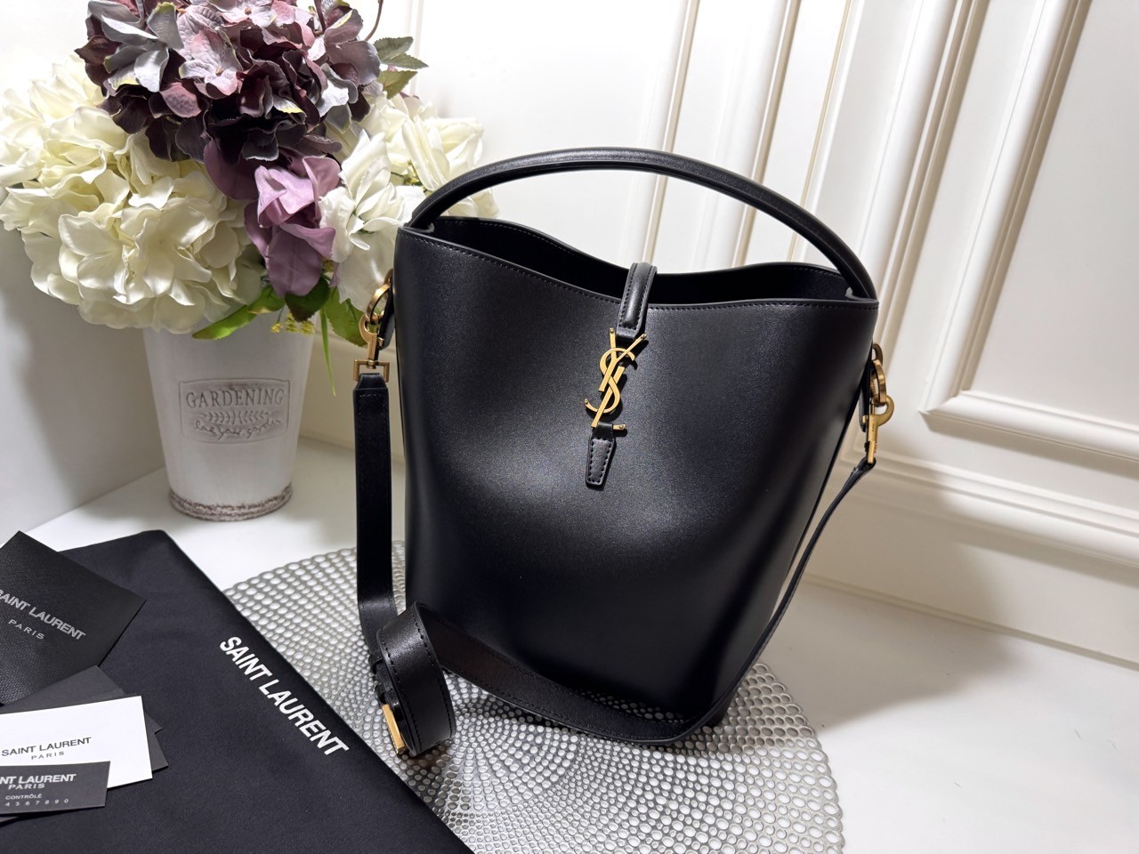 골드 컬러의 입생로랑 로고가 고급스러운 느낌을 주어 데일리 가방으로도 좋고, 격식있는 자리에도 잘 활용할 수 있습니다