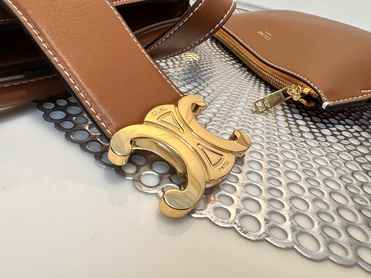심플한 실루엣에 트리옹프 골드 버클이 포인트로 더해져, 세련되면서도 우아한 분위기를 자아냅니다.