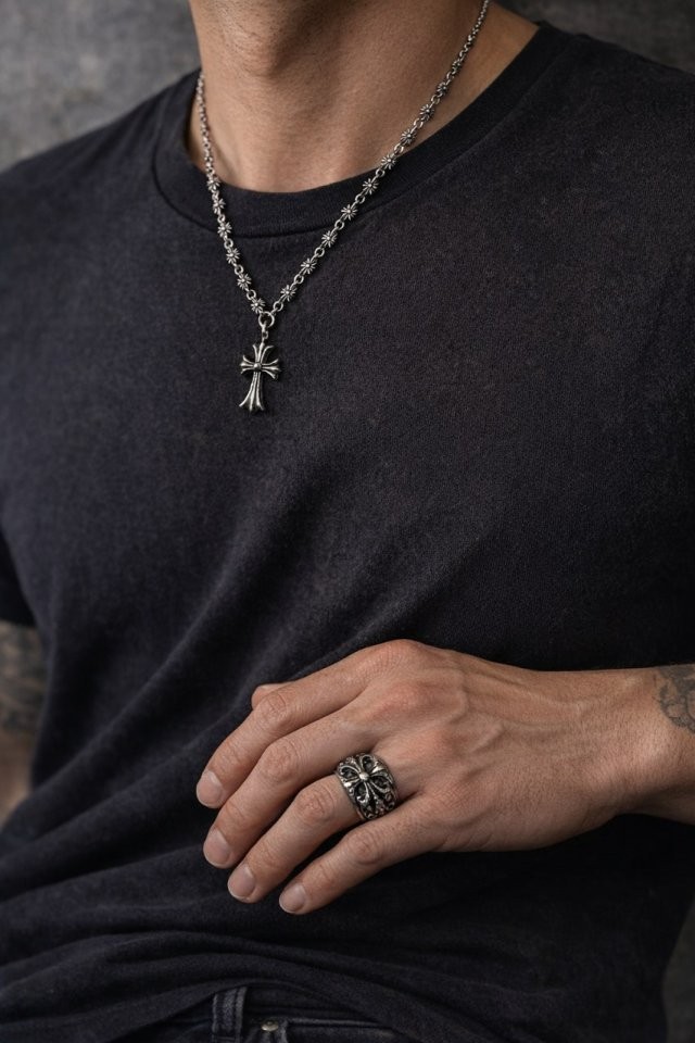 다양한 패턴의 양각 디자인이 독특한 분위기를 연출합니다. 십자가와 스카우트 플라워는 크롬하츠의 상징적인 심볼로, 시대를 초월하는 디자인을 자랑합니다.