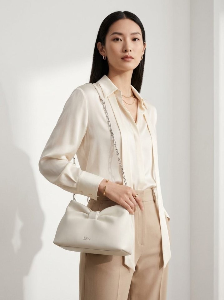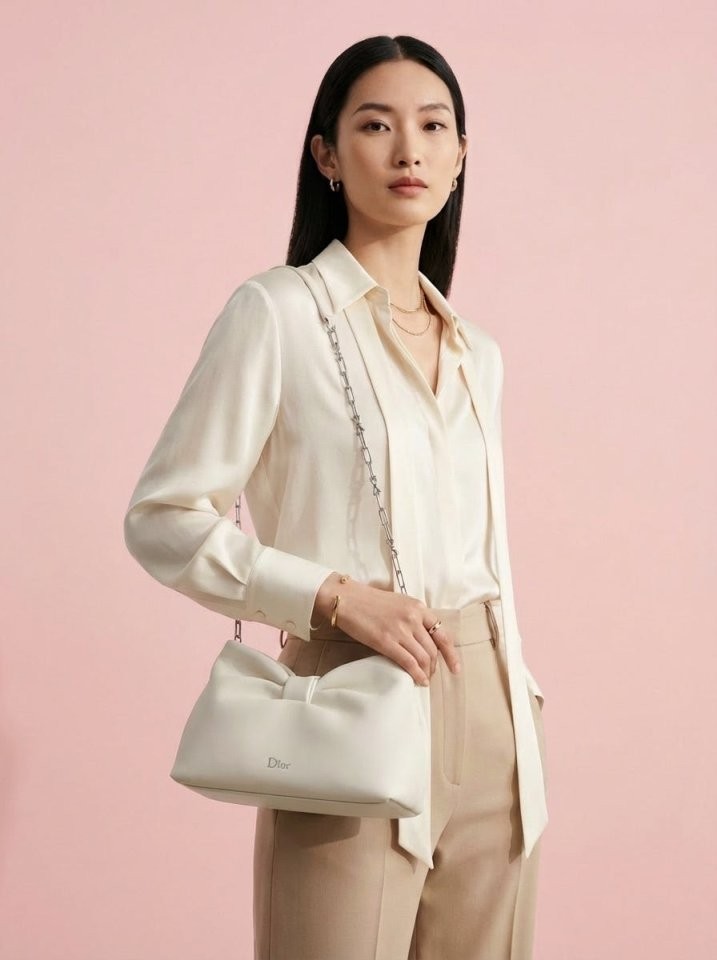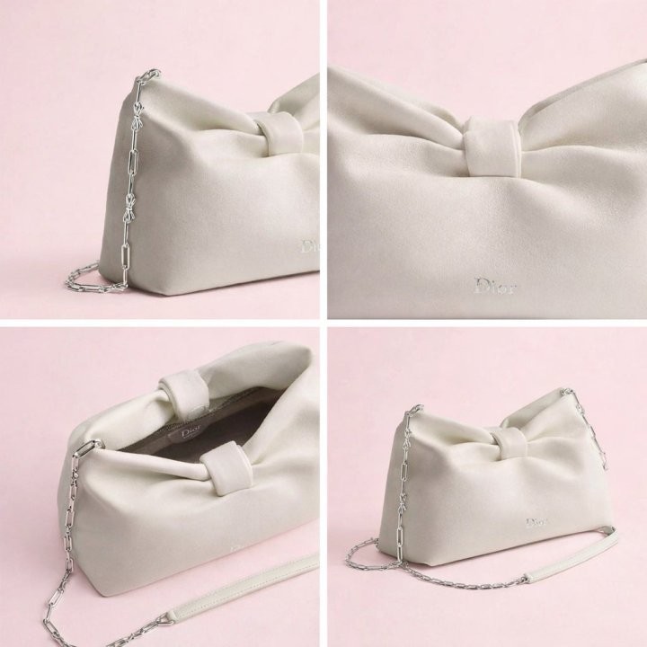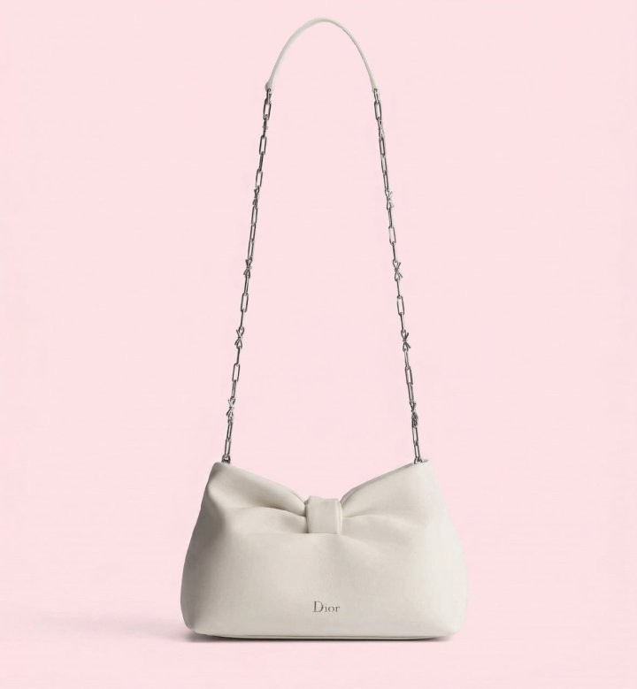 프랑스의 우아함과 아뜰리에의 장인 정신을 보여주는 조나단 앤더슨의 새로운 디올 보우(Dior Bow) 백입니다. 세미 글로스 피니시의 고급스러운 내추럴 그레인 램스킨 소재로 제작되었으며, 유연한 실루엣에 디올 하우스의 소중한 심벌인 보우 장식이 돋보입니다. 숄더백 또는 클러치백으로 연출할 수 있는 스몰 백입니다.