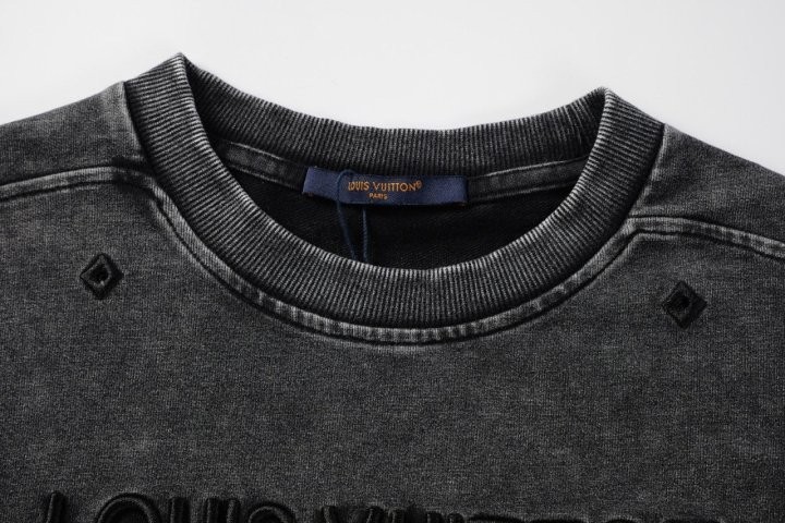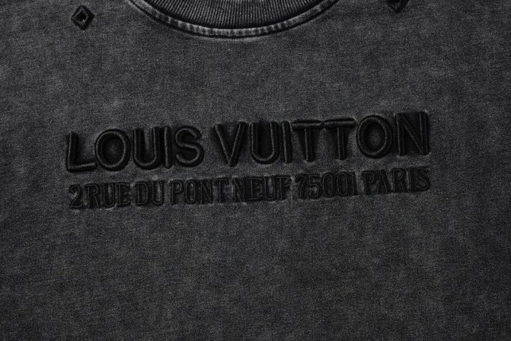 가먼트 다잉 기법으로 구현한 워시드 핑크 색상의 티셔츠. 여유롭고 빈티지한 감성이 돋보이는 아이템. 가슴 부분에 더한 톤온톤의 루이 비통 시그니처 자수. 네크라인 부분에 아일릿을 수놓아 완성한 모노그램 플라워 장식. 칼라에서 소매로 이어지는 독특한 리브드 디테일이 트렌디한 스타일에 편안한 분위기를 더해주는 디자인 입니다.사이즈남성 - M(95~105) L(105~110)여성 - M(55~77) L(77~88)색상 - 블랙