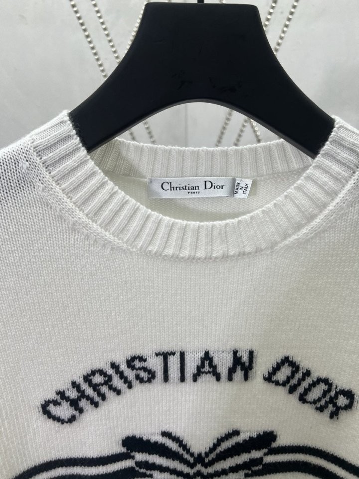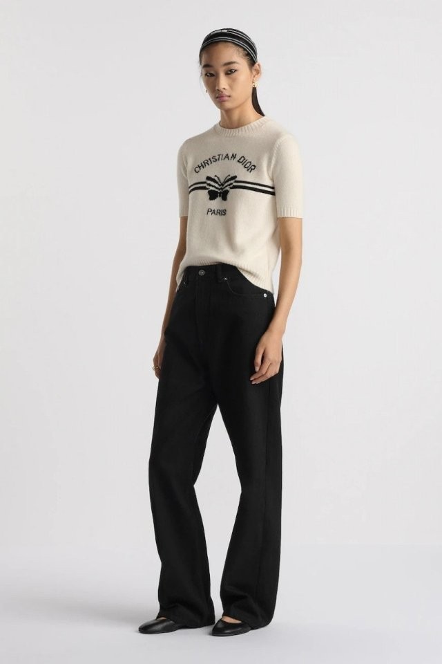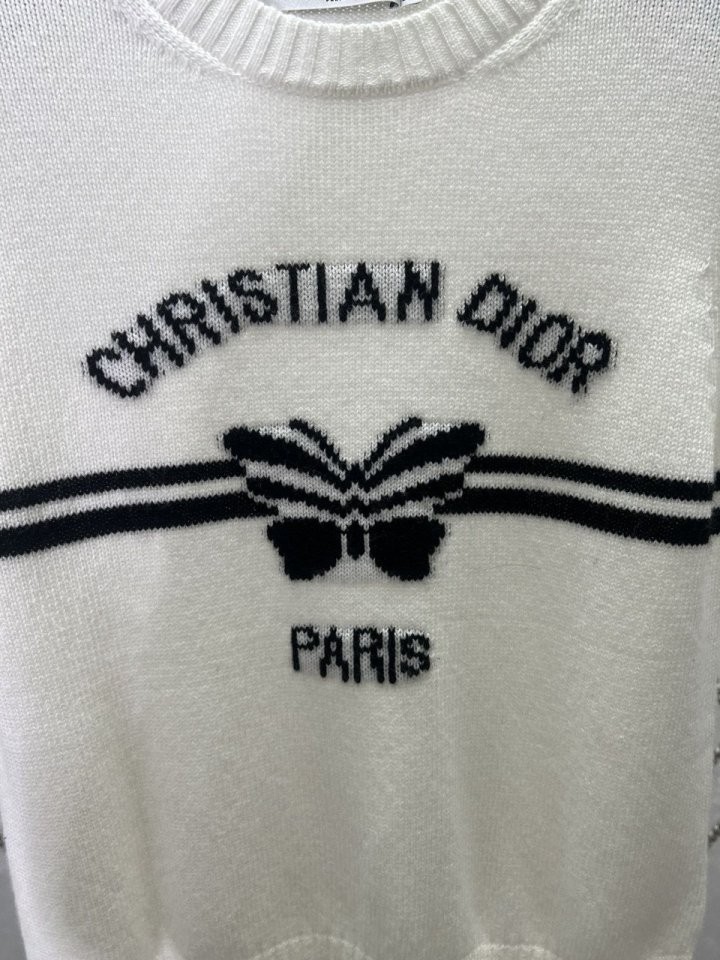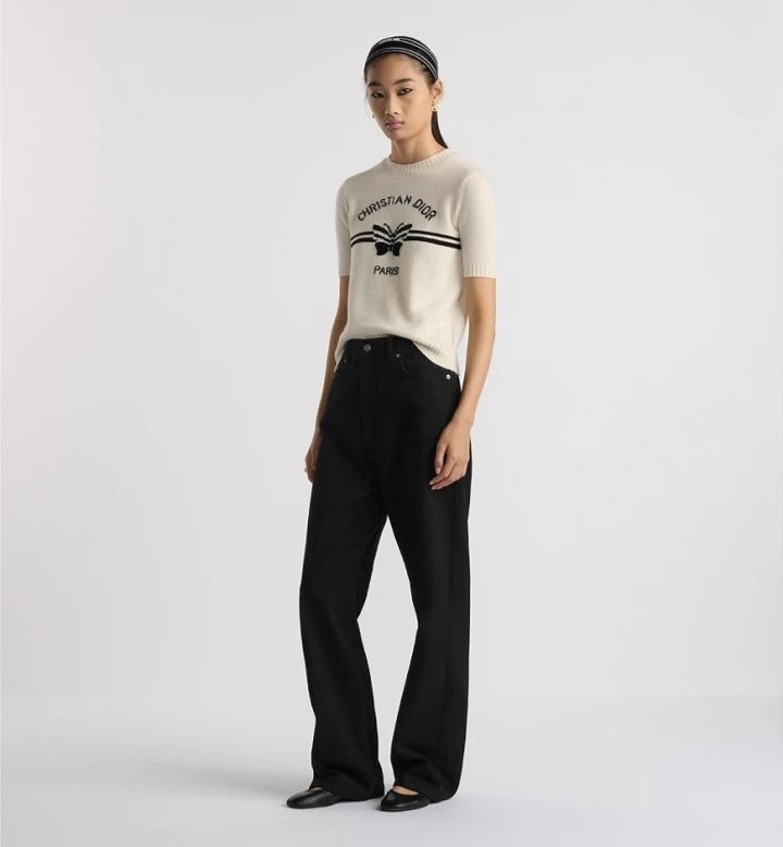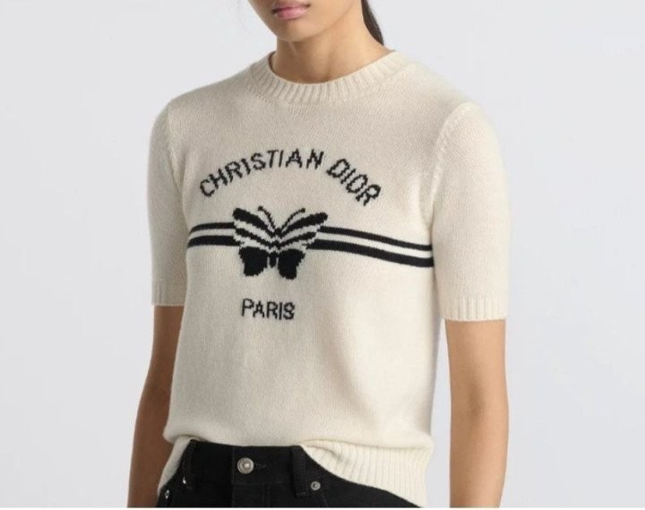 이 스웨터는 모던하고 우아한 스타일을 자랑합니다. 화이트 캐시미어 니트 소재로 제작되었으며, 그래픽적인 매력을 더한 블랙 크리스찬 디*올 파피용 모티프가 돋보입니다. 짧은 소매와 골지 트리밍이 스웨터를 완성하며, 사계절 내내 어떤 룩에도 잘 어울립니다.소재 - 캐시미어사이즈 - S(55) M(66~77)