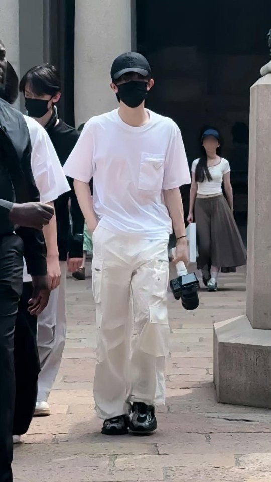 프라다 리나일론 패널드 로고 반팔티 화이트