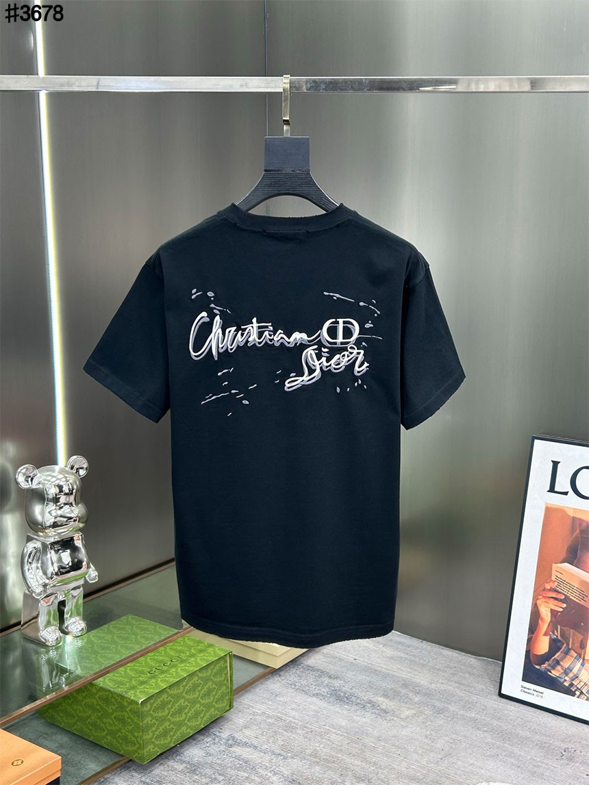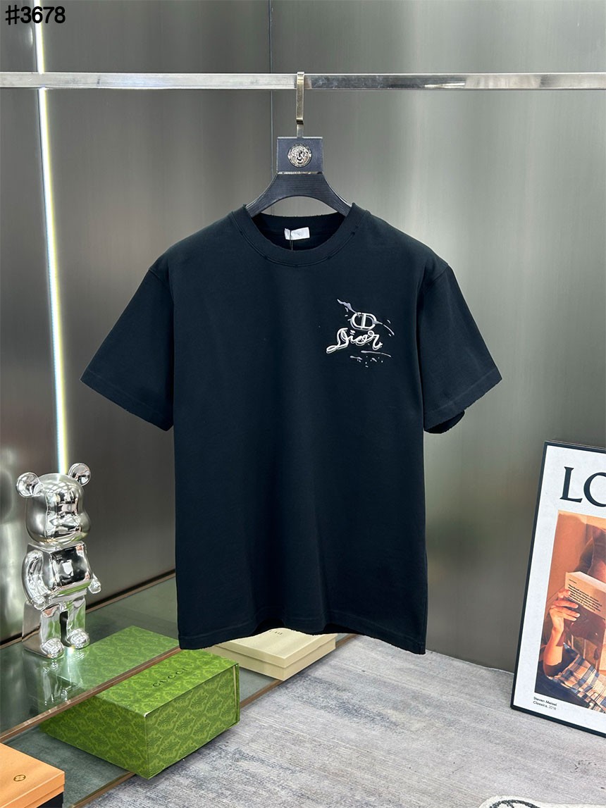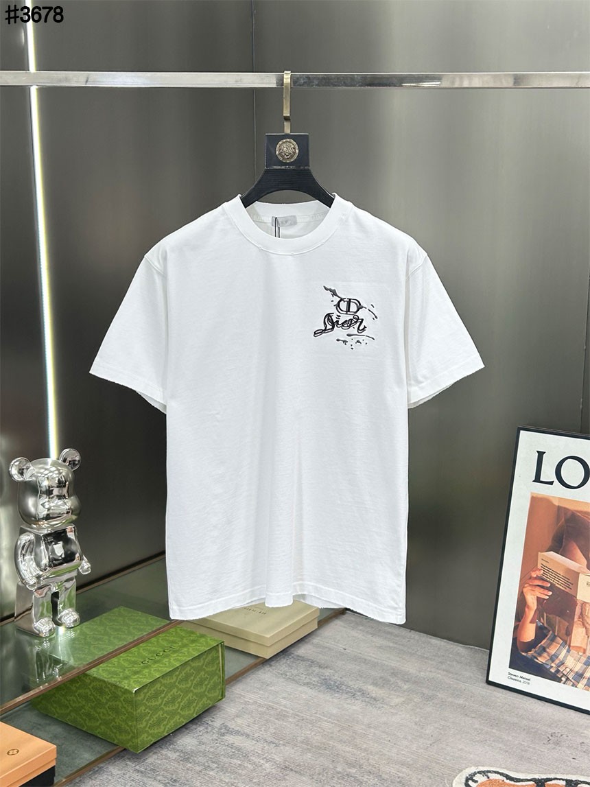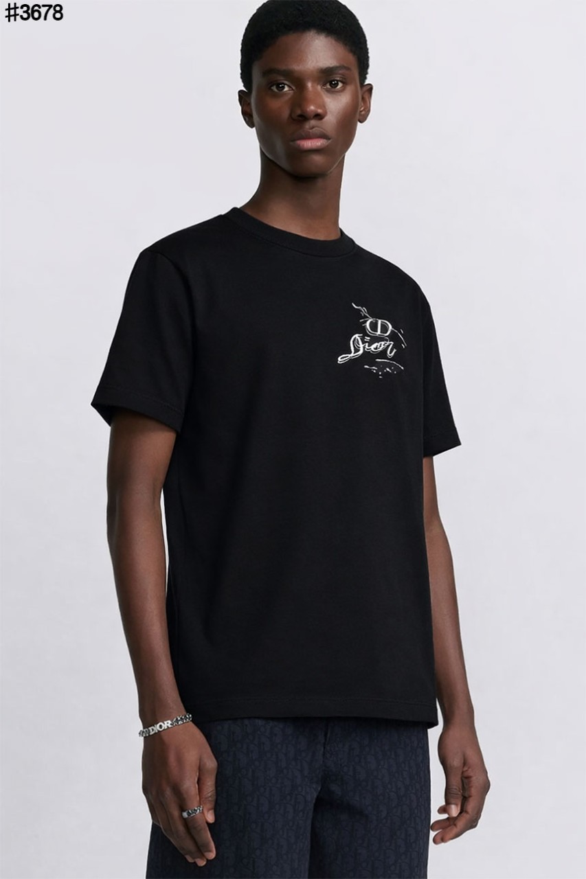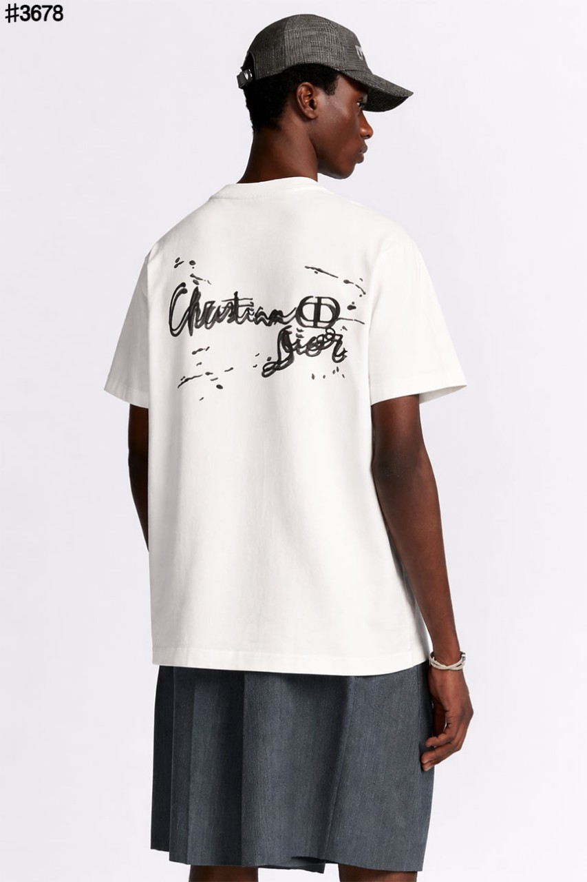 디올 옴므 시그니처 CD 페인팅 자수 로고 빈티지 숏 슬리브 티셔츠와 같은 디올 제품