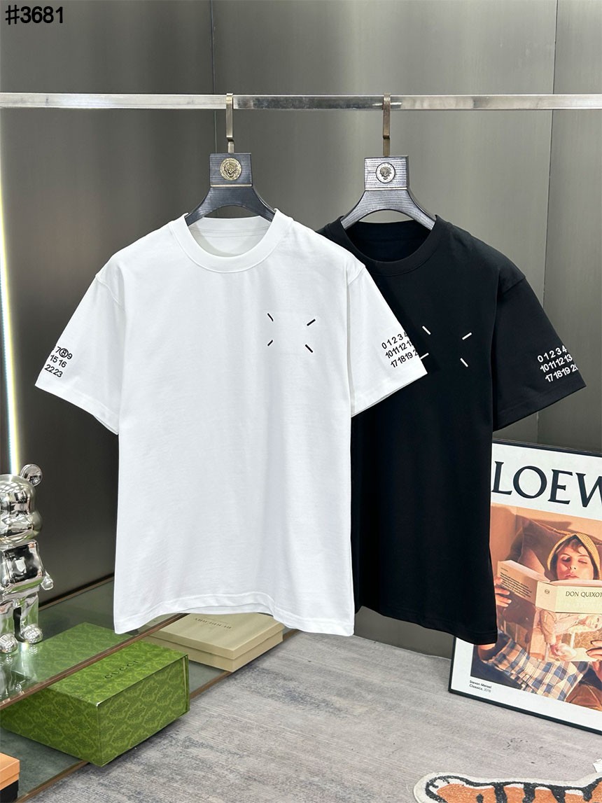 메종마르지엘라 스티치 넘버링 자수 로고 숏 슬리브 티셔츠