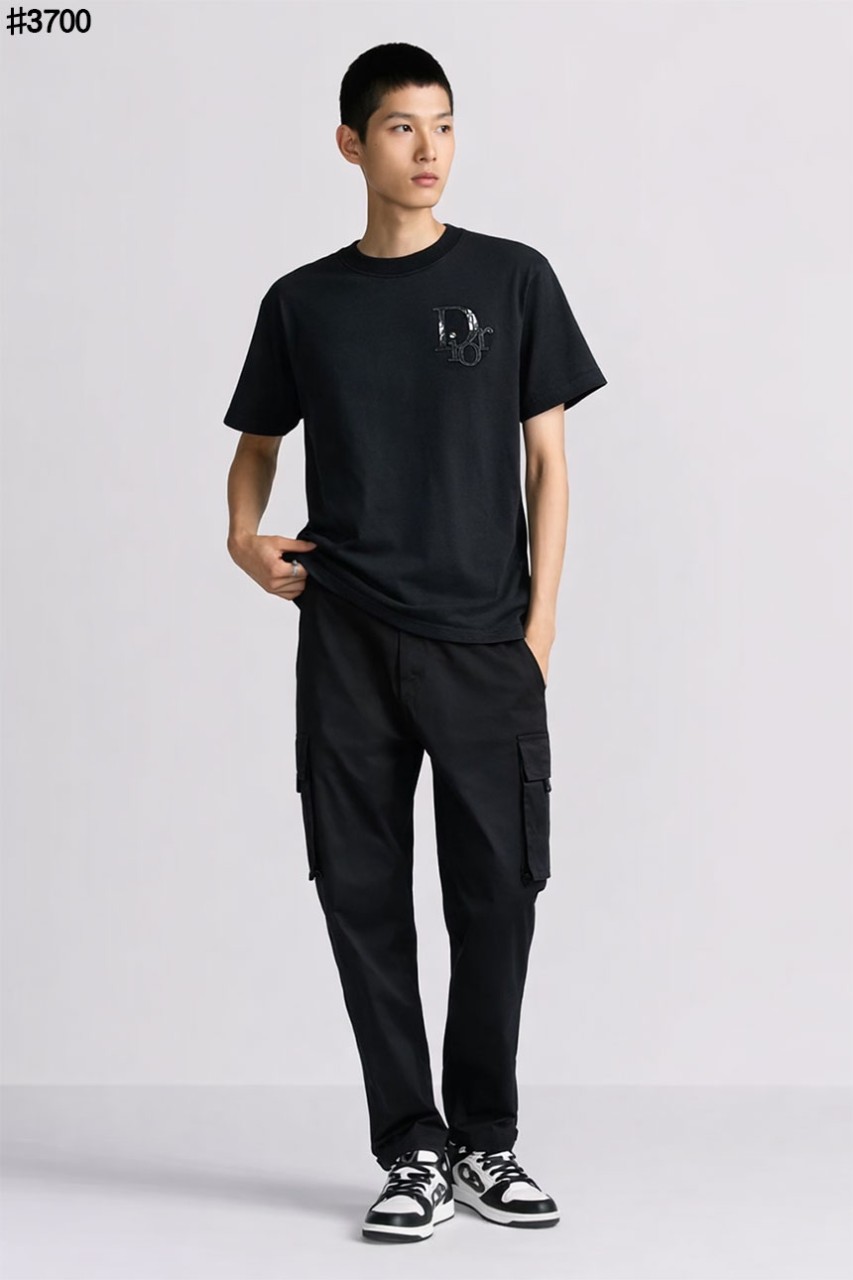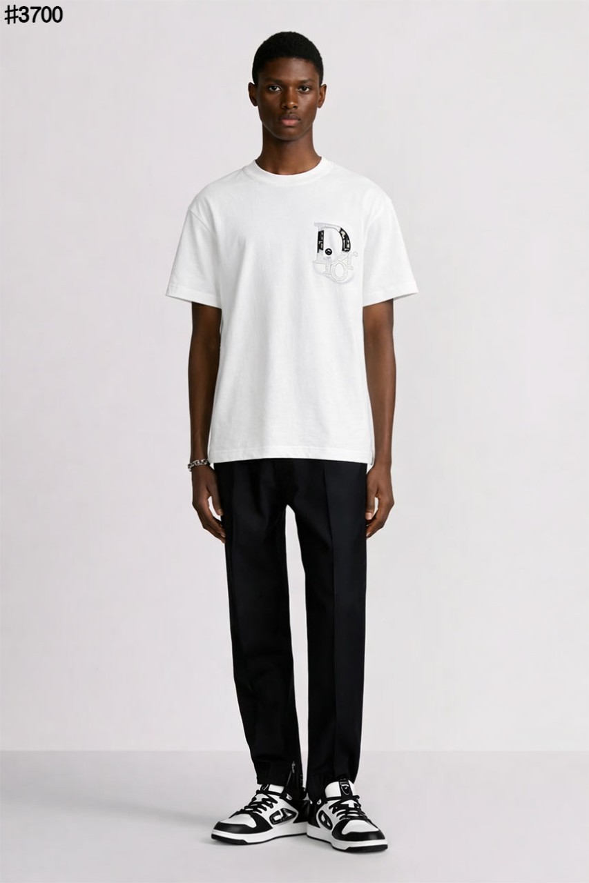 디올 옴므 쿠튀르 오블리크 믹스 자수 로고 숏 슬리브 티셔츠