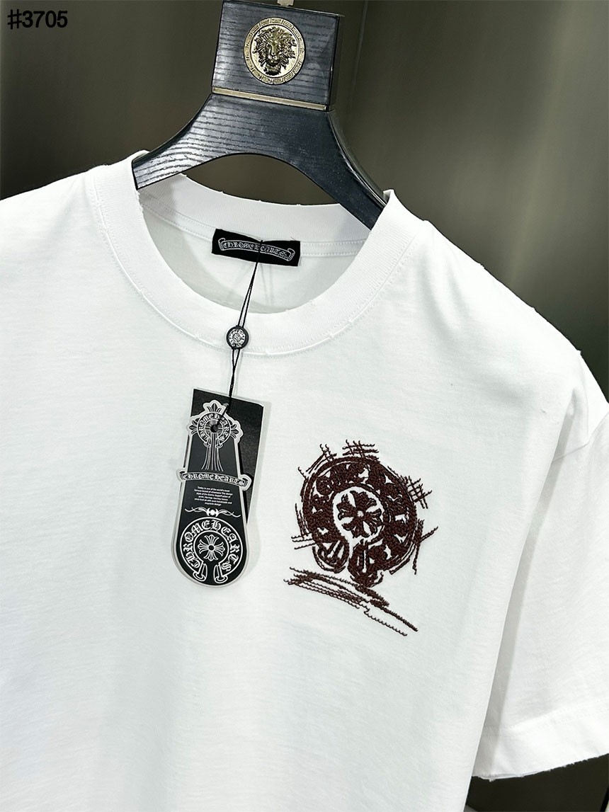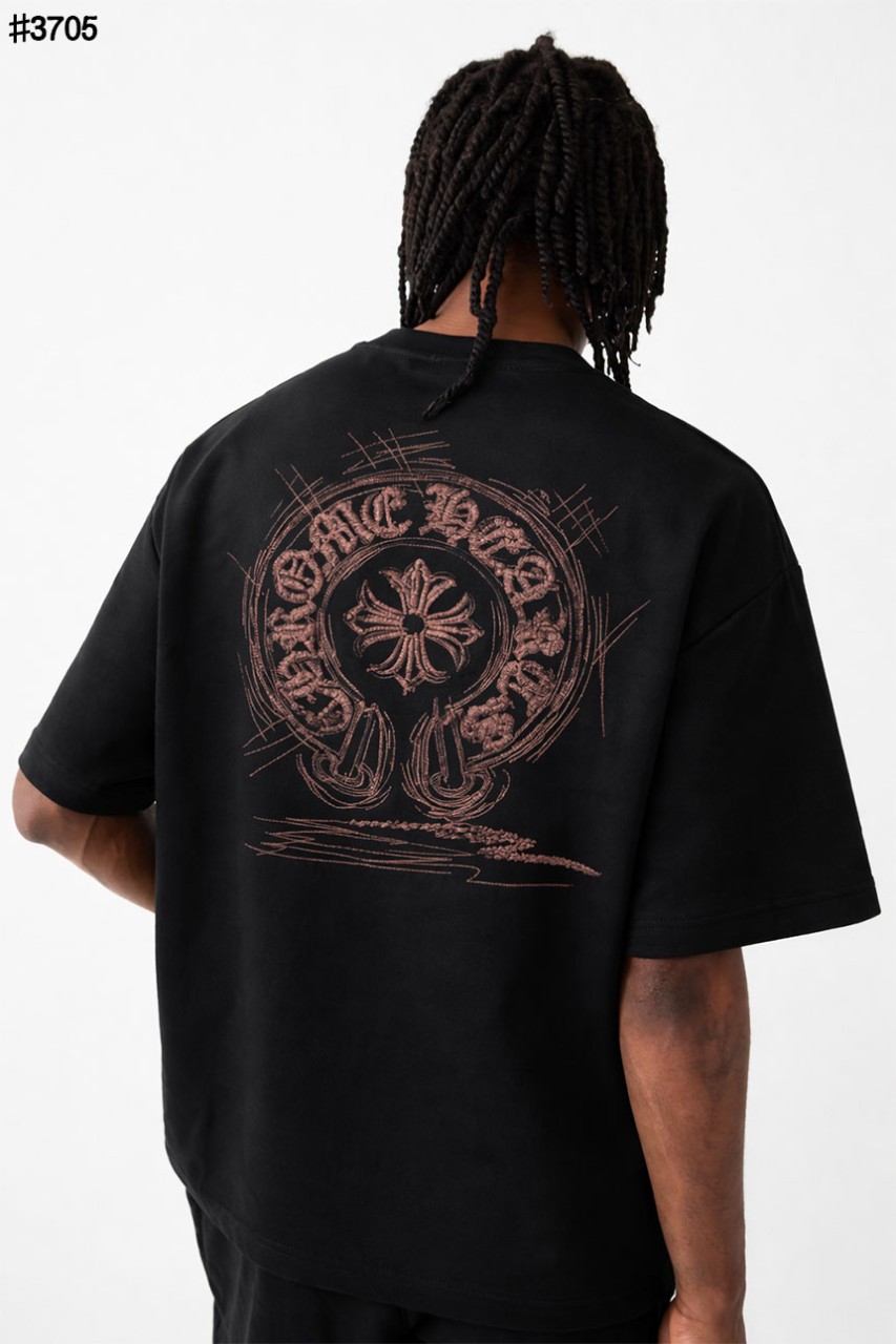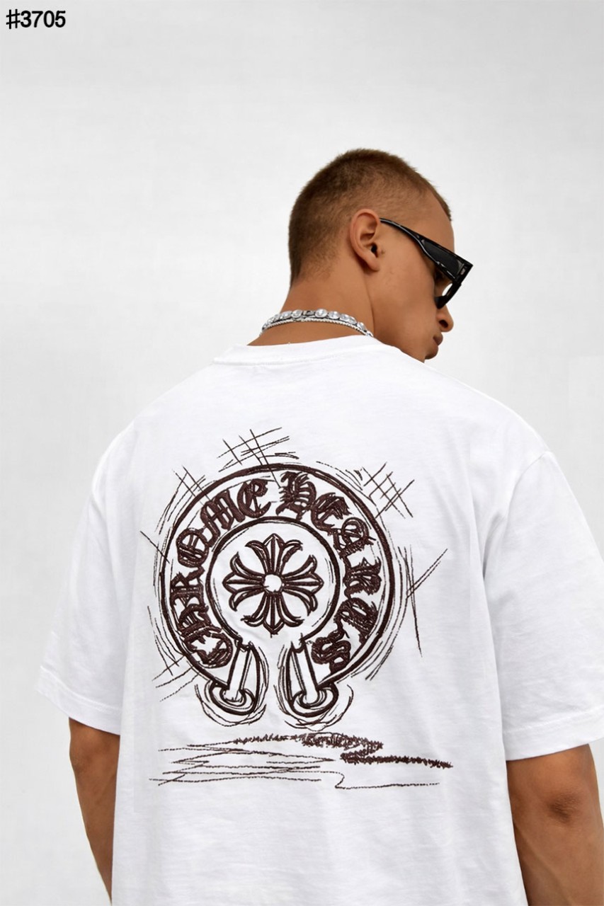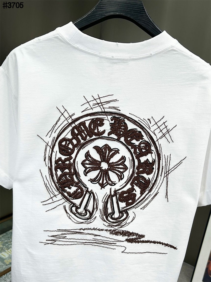 크롬하츠 스크레쳐 홀스슈 빈티지 자수 로고 숏 슬리브 티셔츠