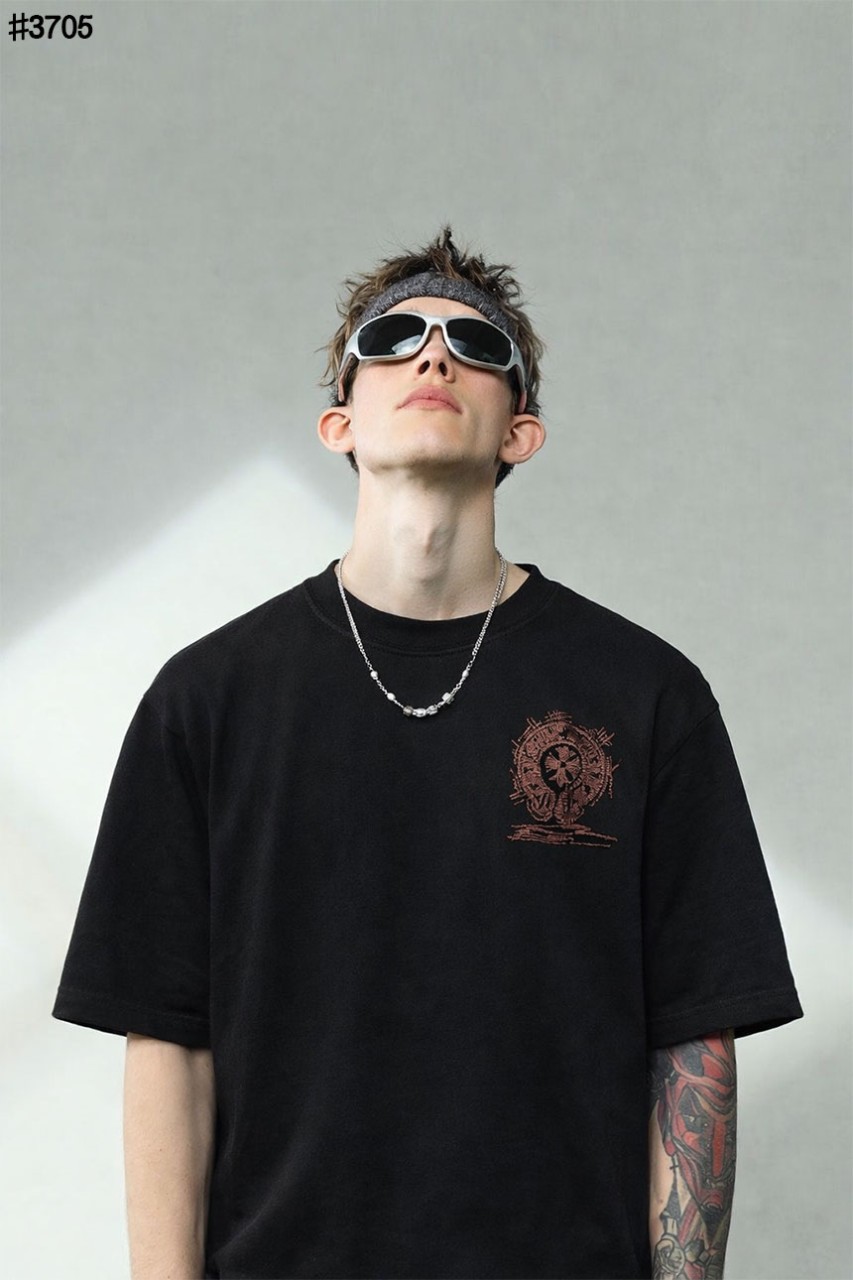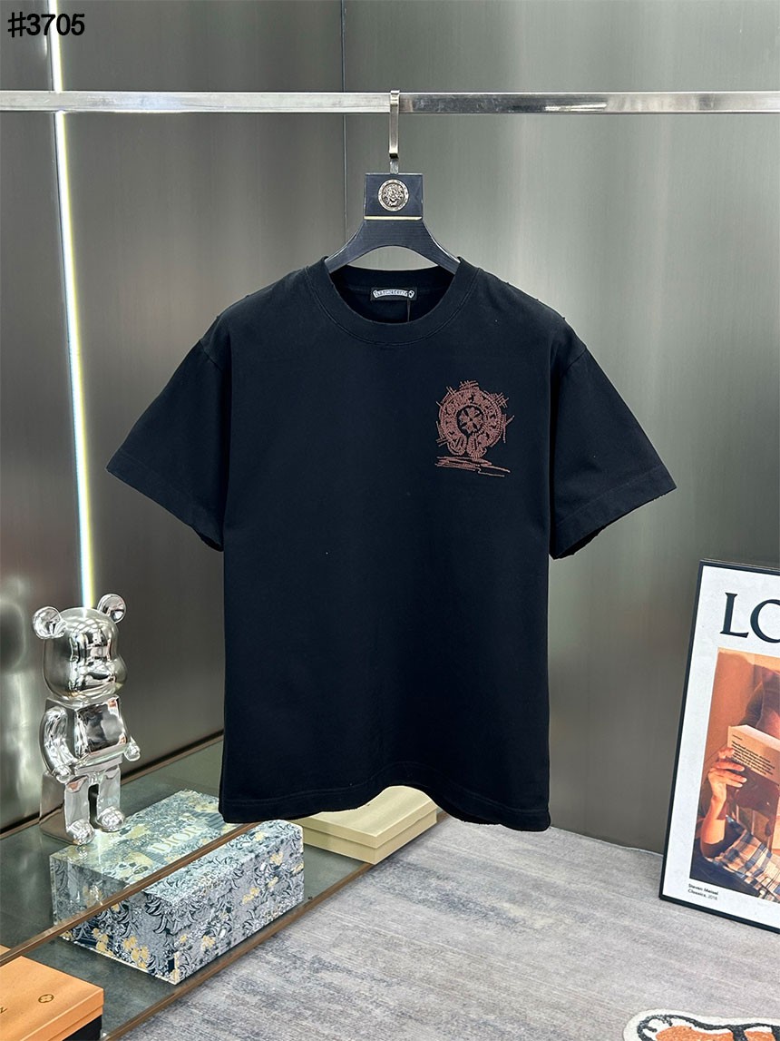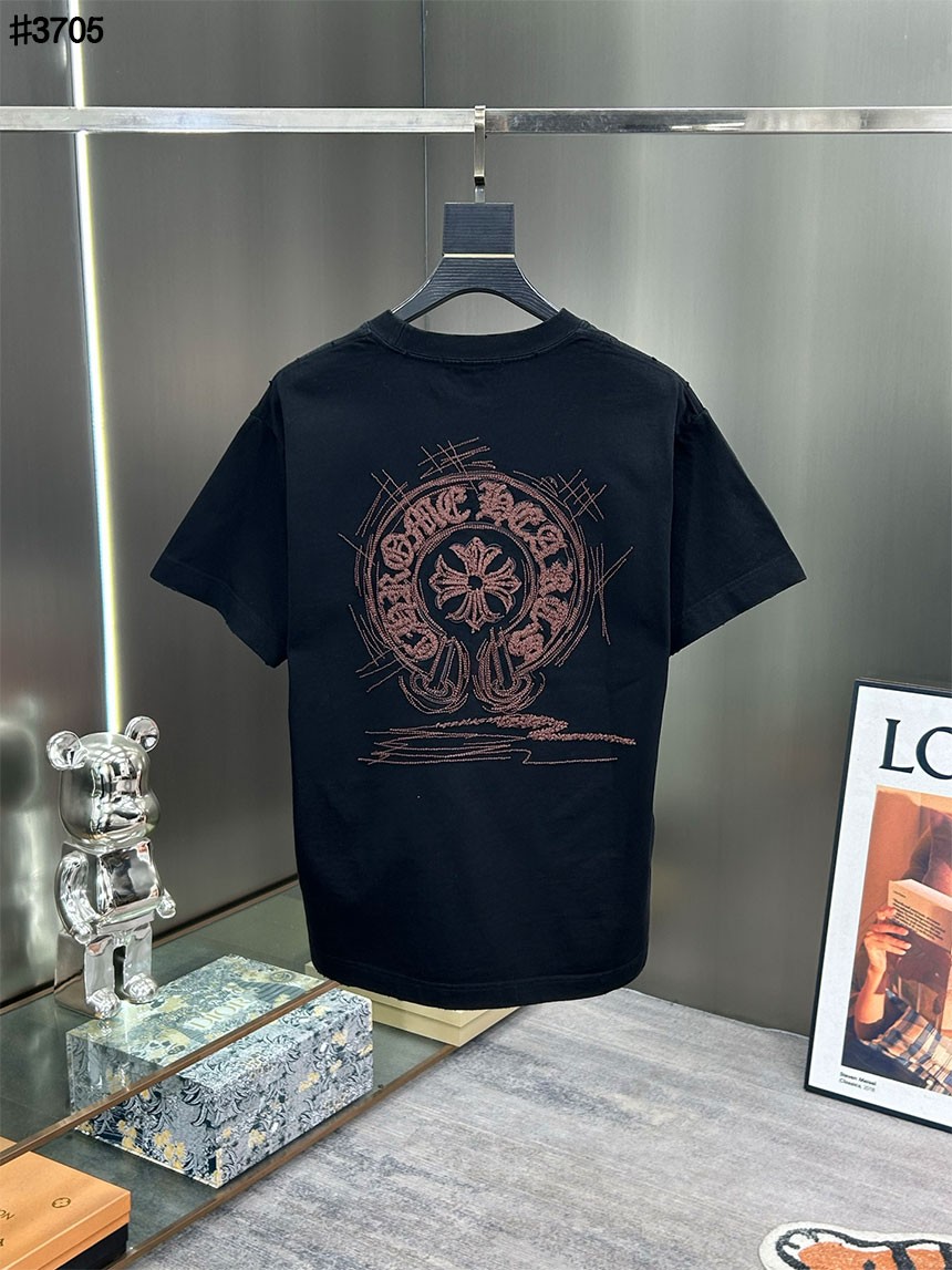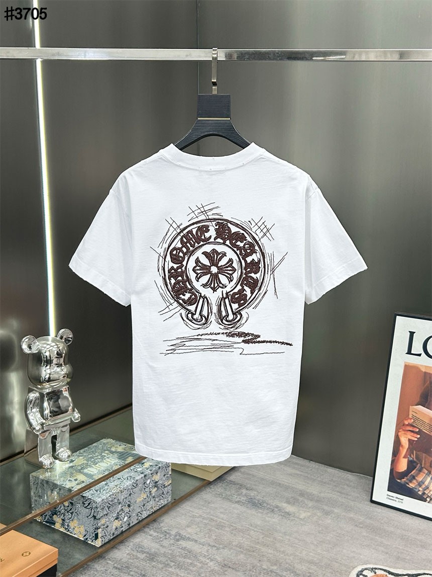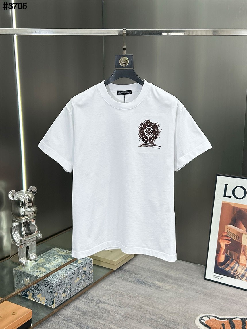 크롬하츠 스크레쳐 홀스슈 빈티지 자수 로고 숏 슬리브 티셔츠