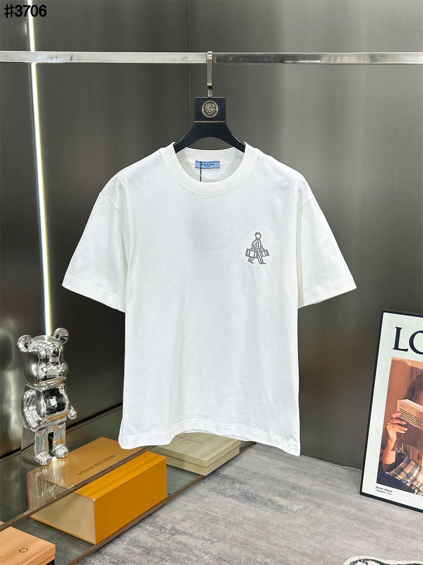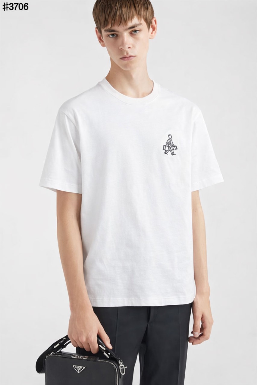 프라다 나일론 포켓 믹스 코튼 숏 슬리브 티셔츠