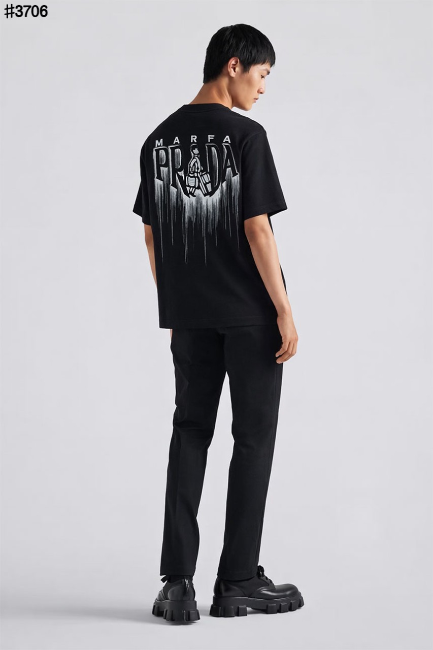 프라다 마르파 씨티 그래픽 자수 로고 숏 슬리브 티셔츠