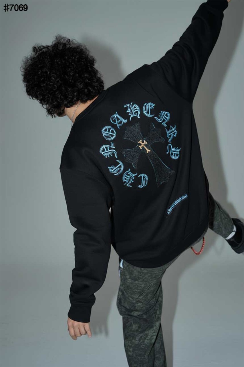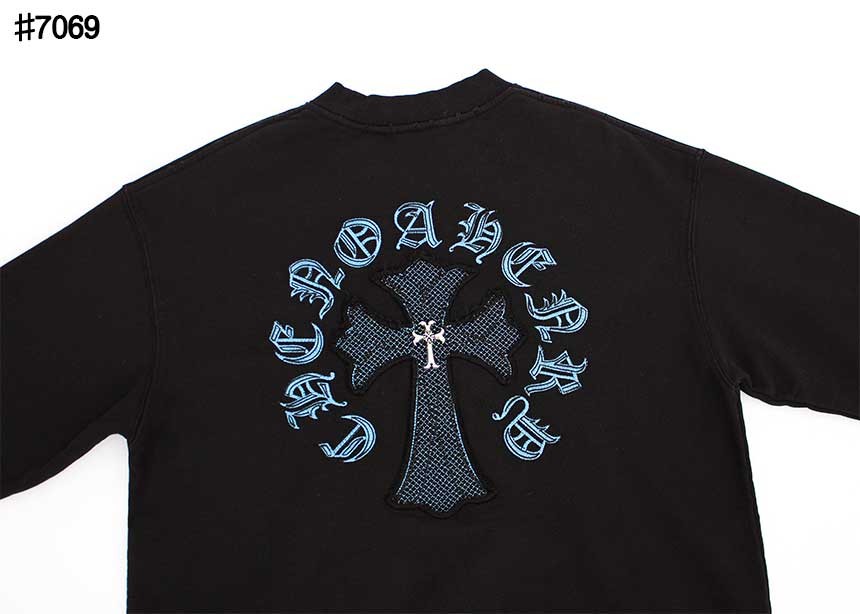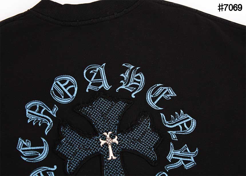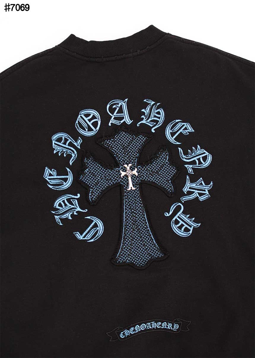 크롬하츠 블루 크로스 스틸 로고 빈티지 맨투맨 티셔츠와 같은 크롬하츠 제품