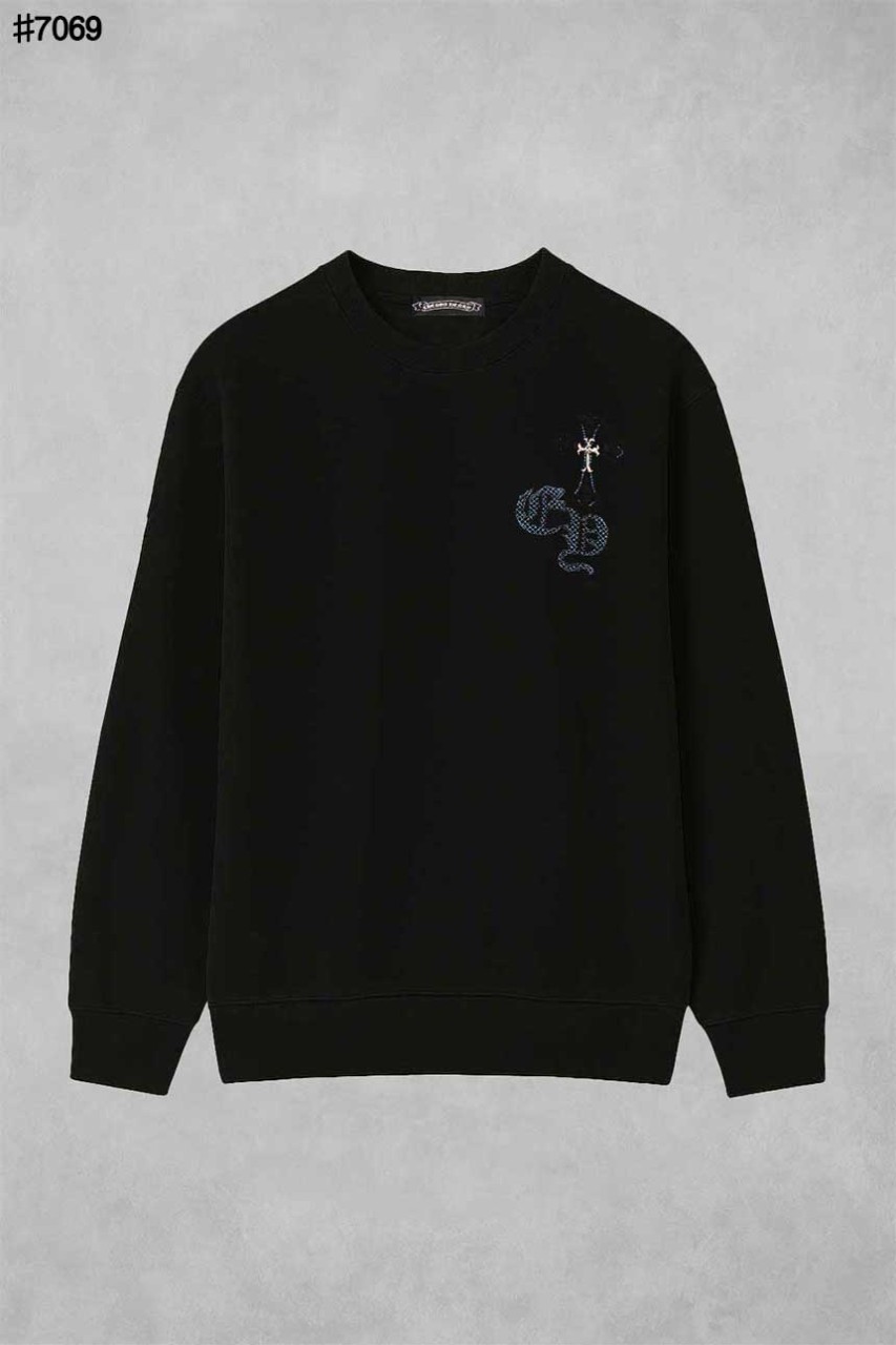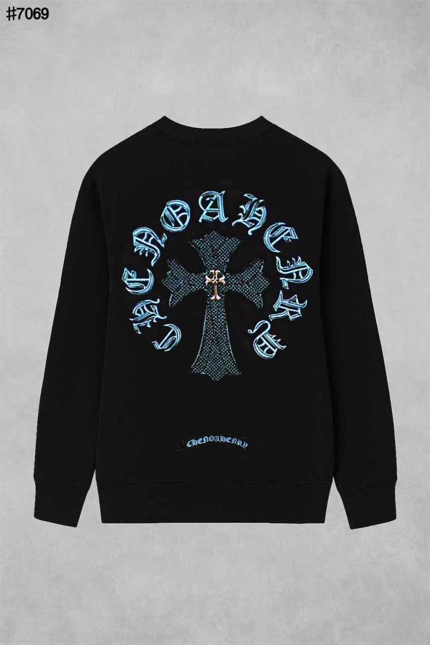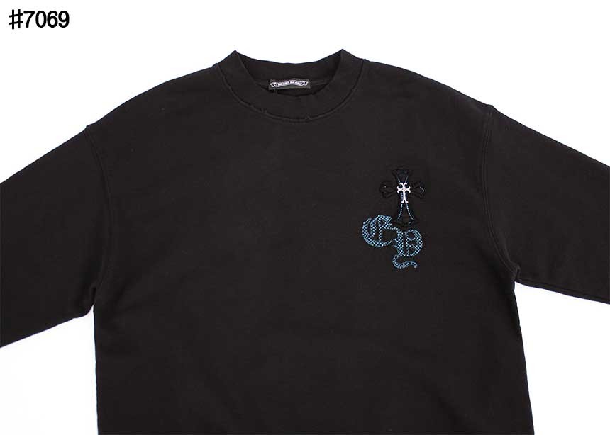크롬하츠 블루 크로스 스틸 로고 빈티지 맨투맨 티셔츠